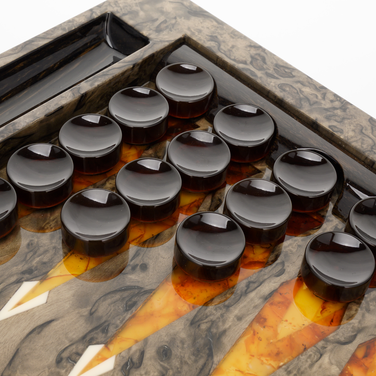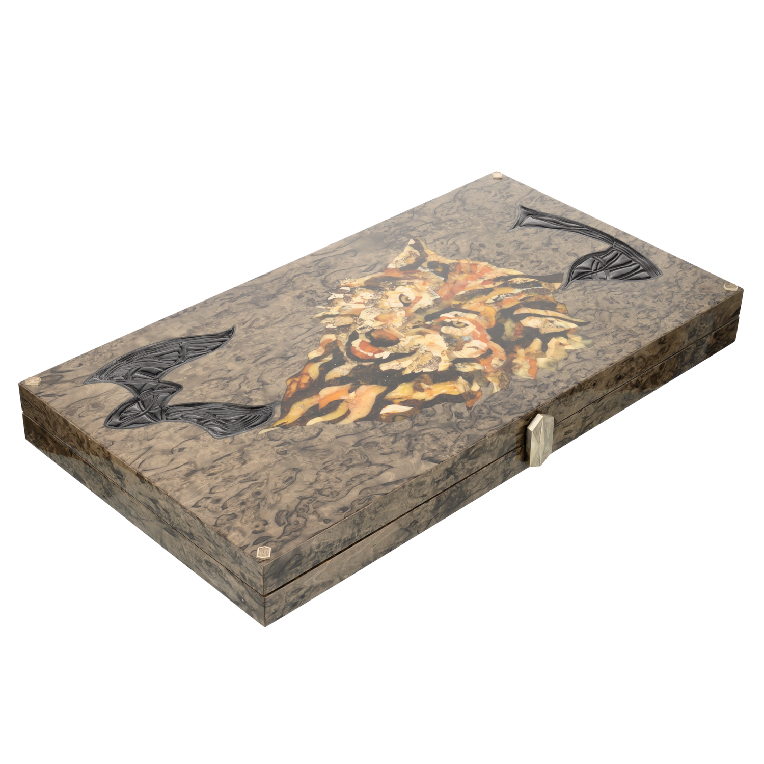 Нарды янтарные "Волк".Материалы: карельская береза, янтарь.