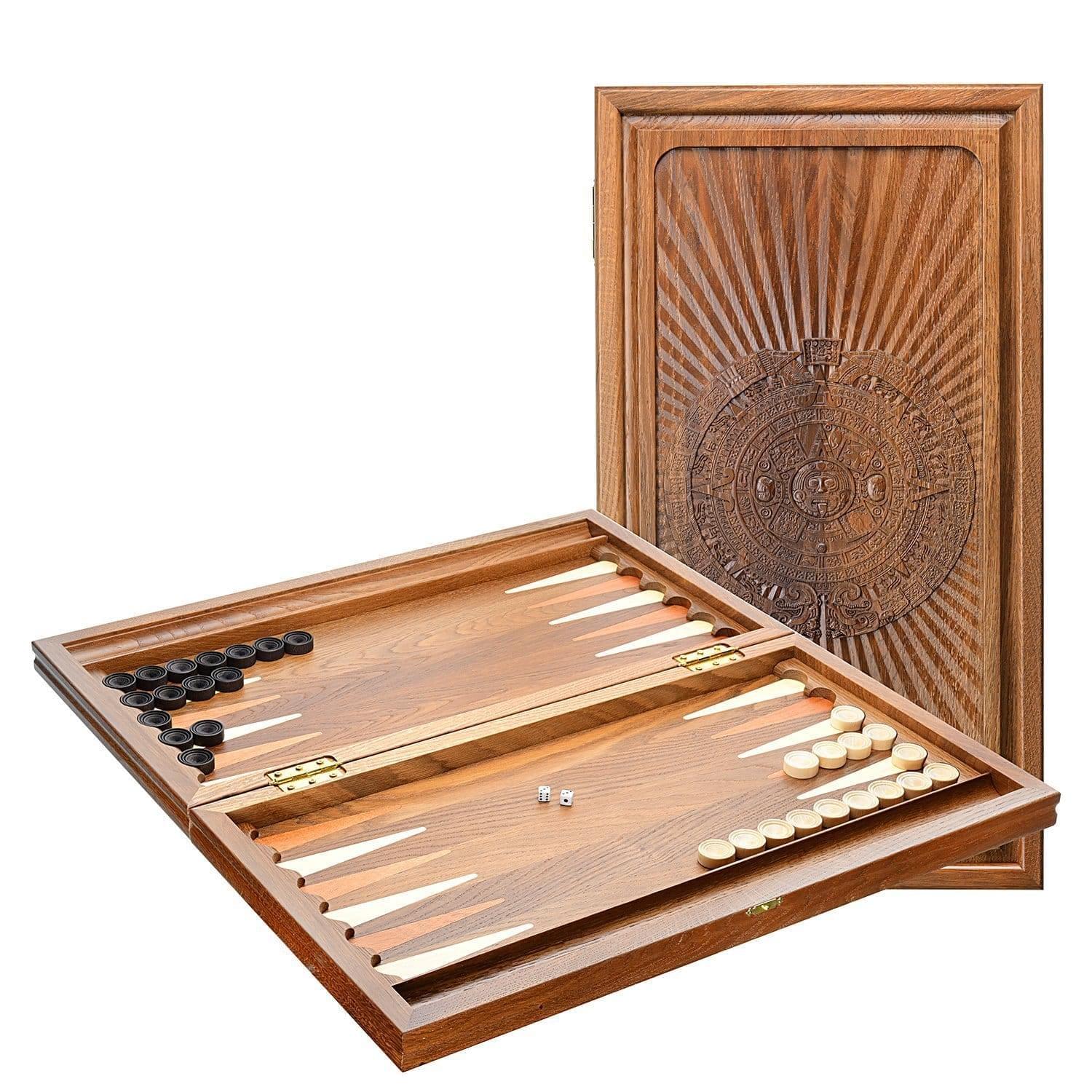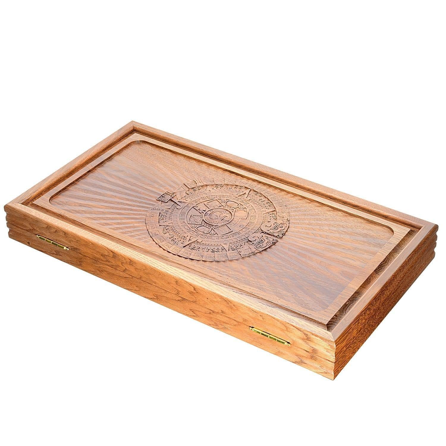 Нарды деревянные резные "Календарь Майя" из массива чёрного дуба