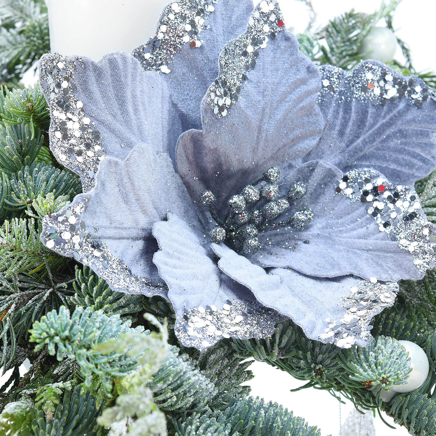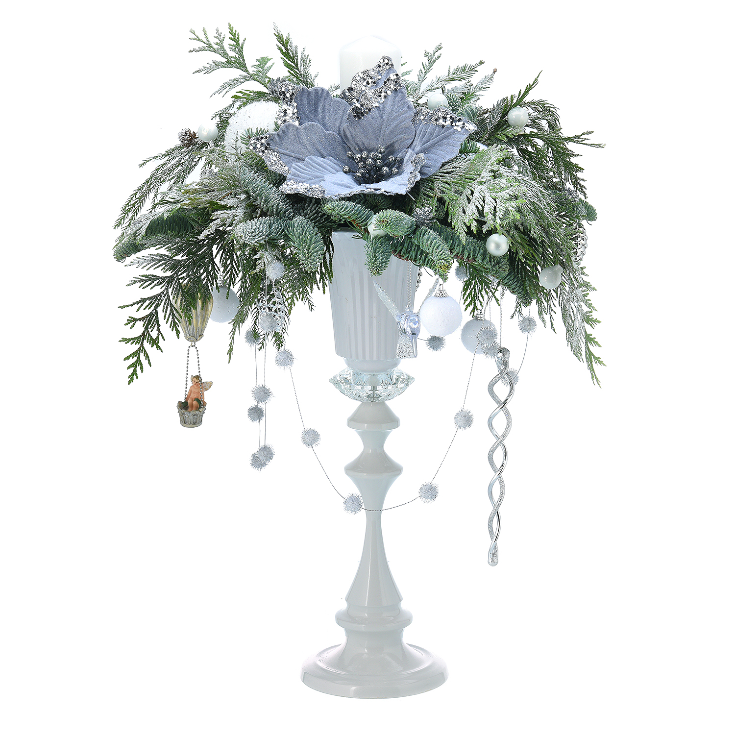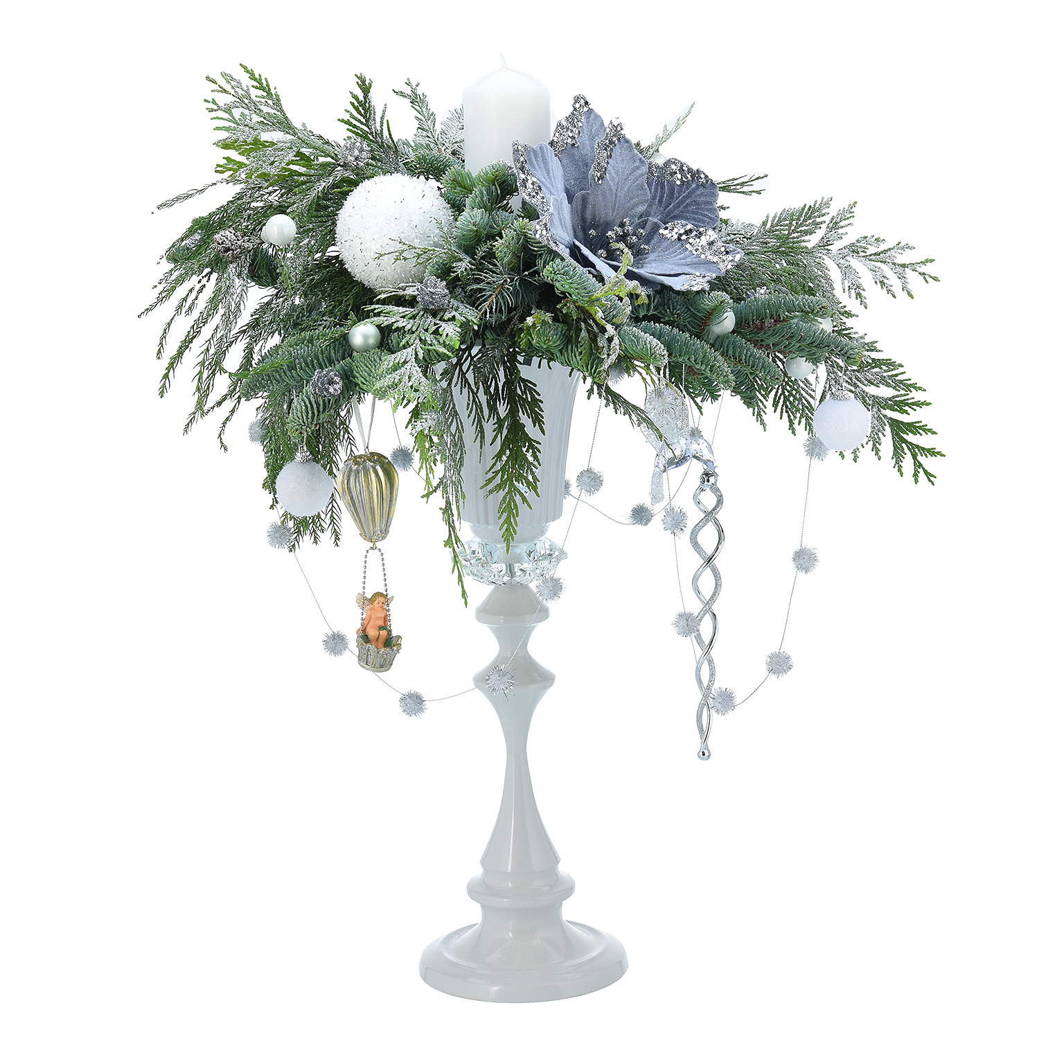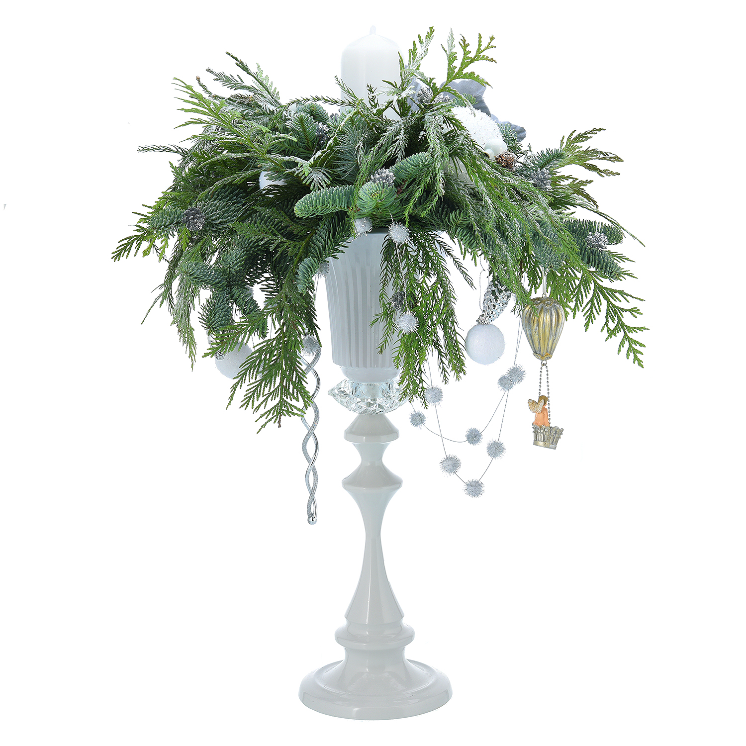 Новогодняя композиция из натуральной хвои "Белый канделябр"