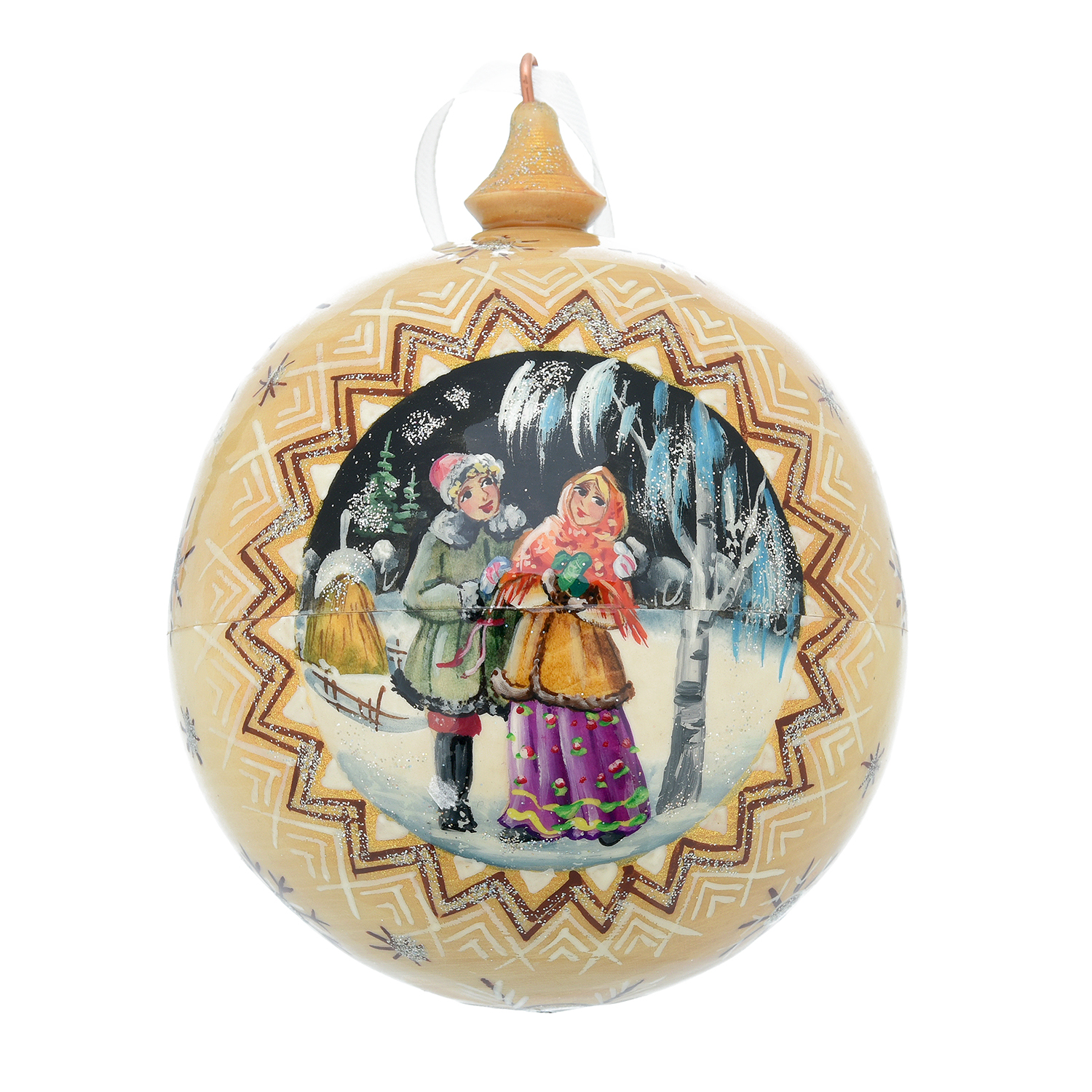 Русские подарки и сувениры → Сувениры → Новогодние украшения → Новогодний елочный шар с росписью "Зимний сюжет"