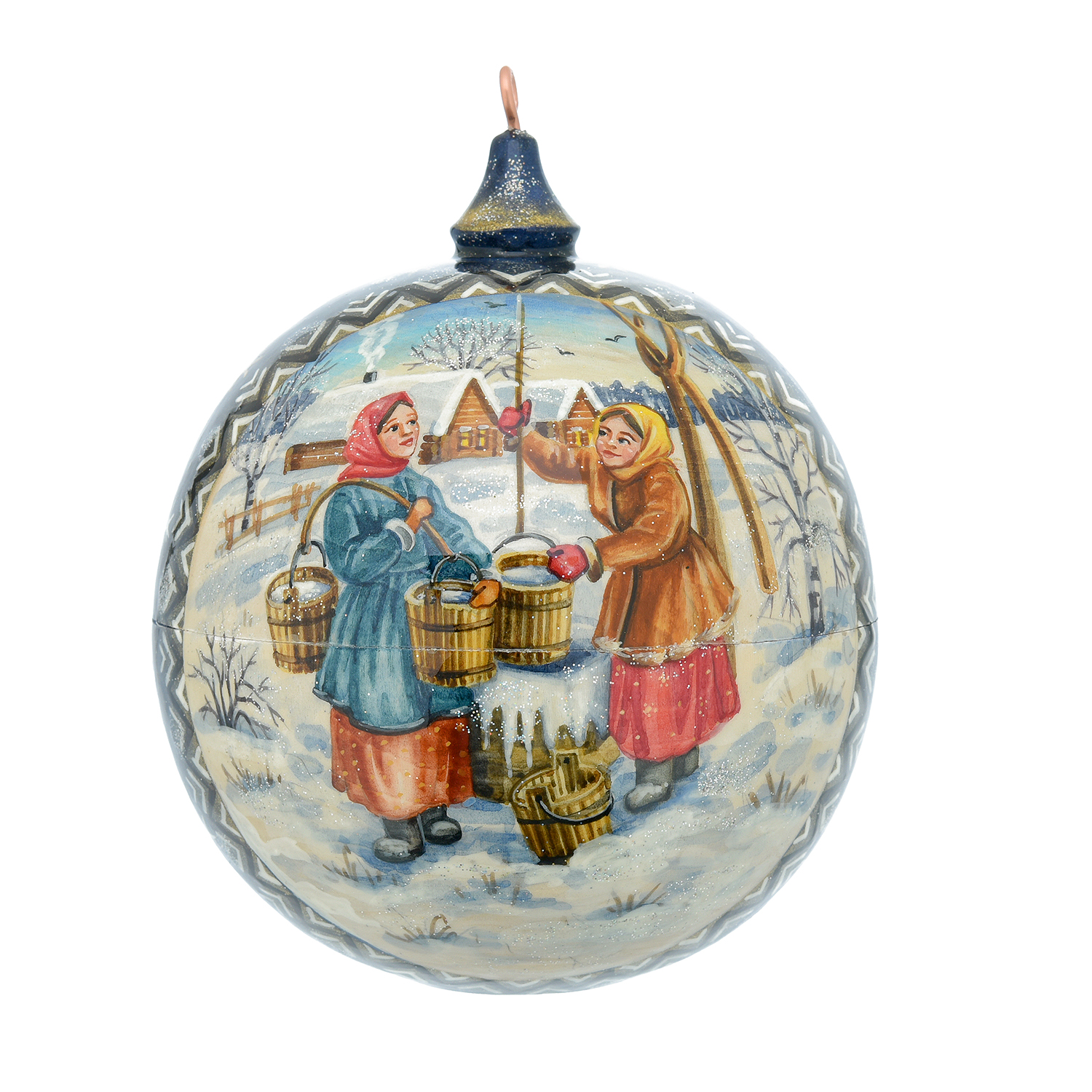 Русские подарки и сувениры → Сувениры → Новогодние украшения → Новогодний елочный шар с росписью "Зима. По воду"