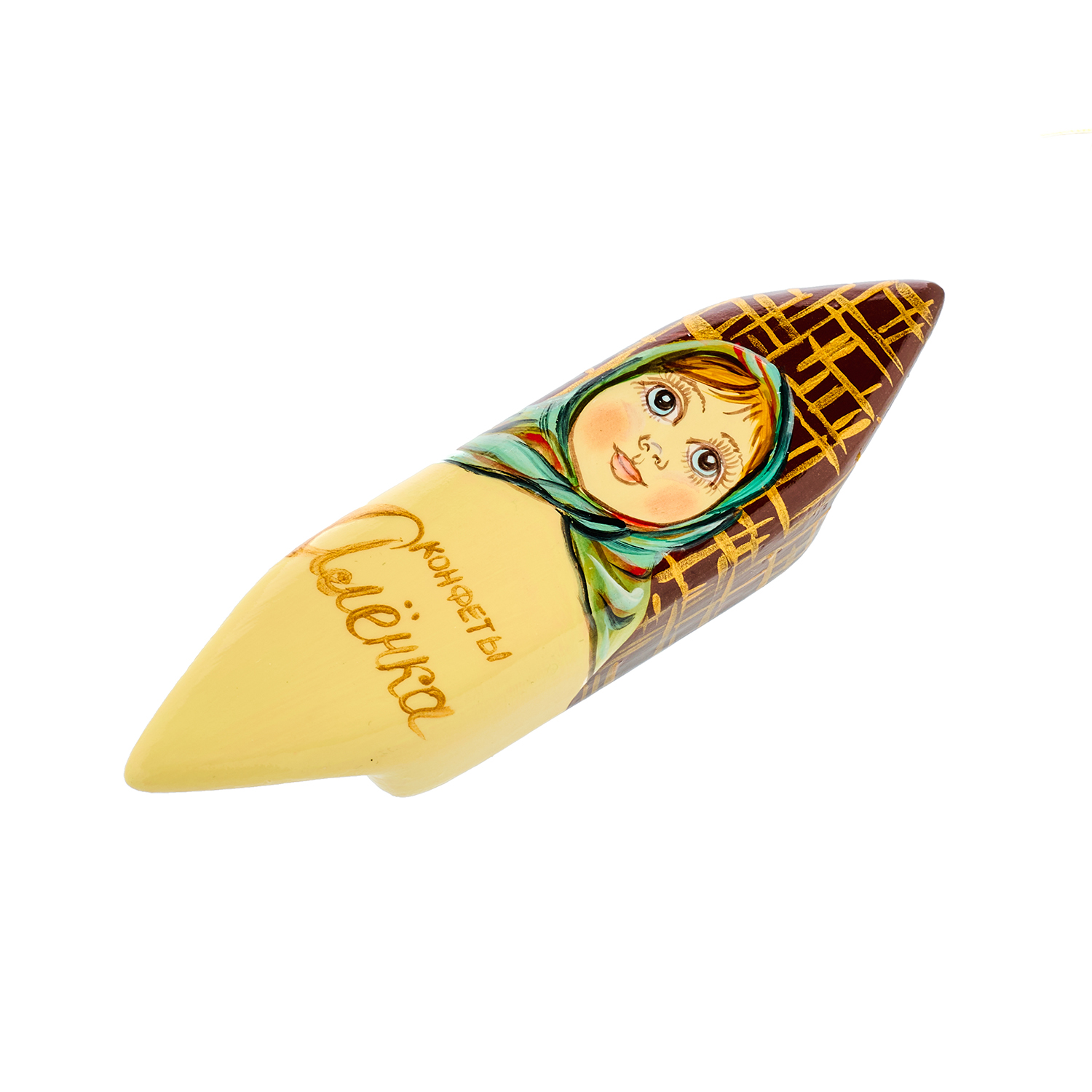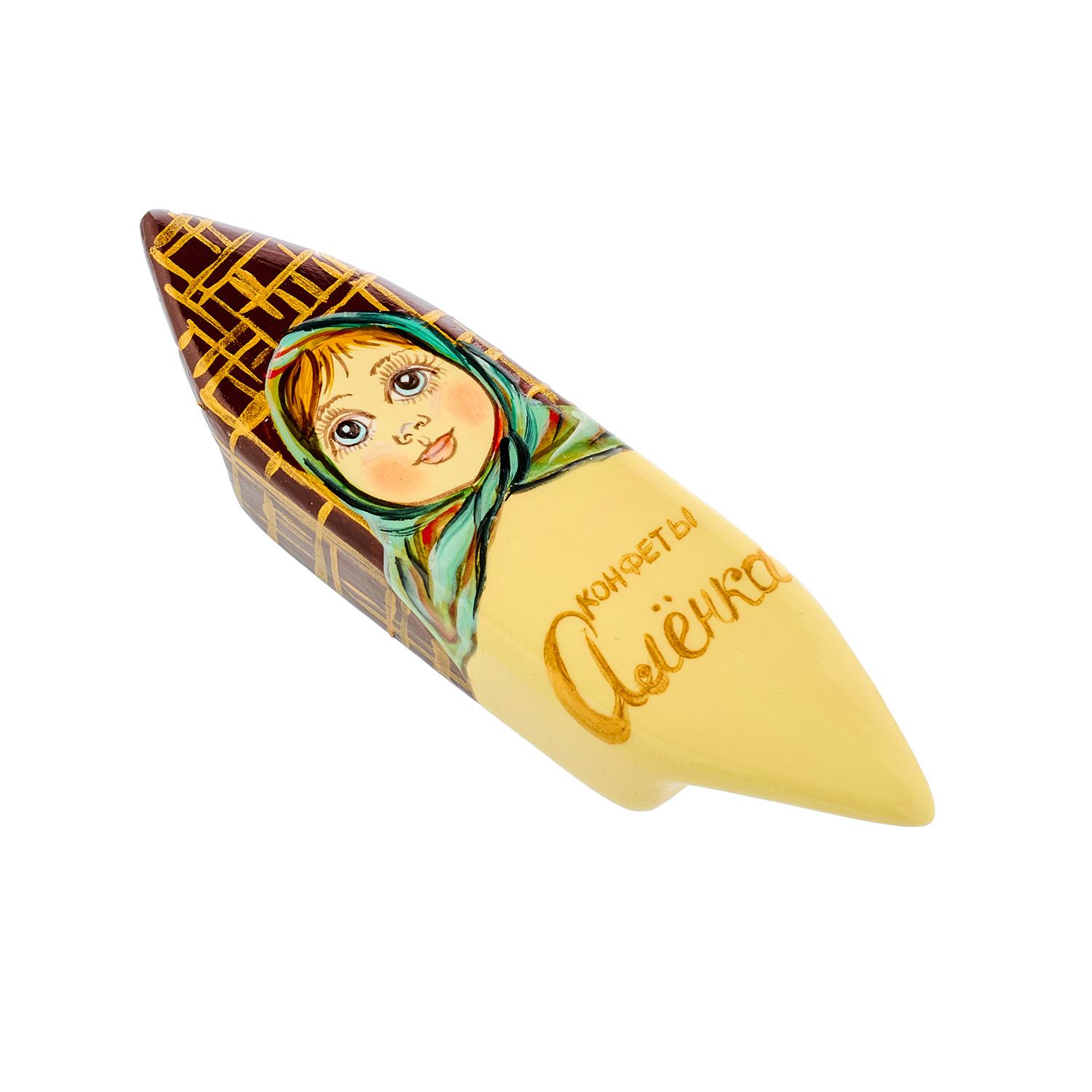 Елочное украшение "Конфета Аленка".Материалы: фарфор, краски, лак.