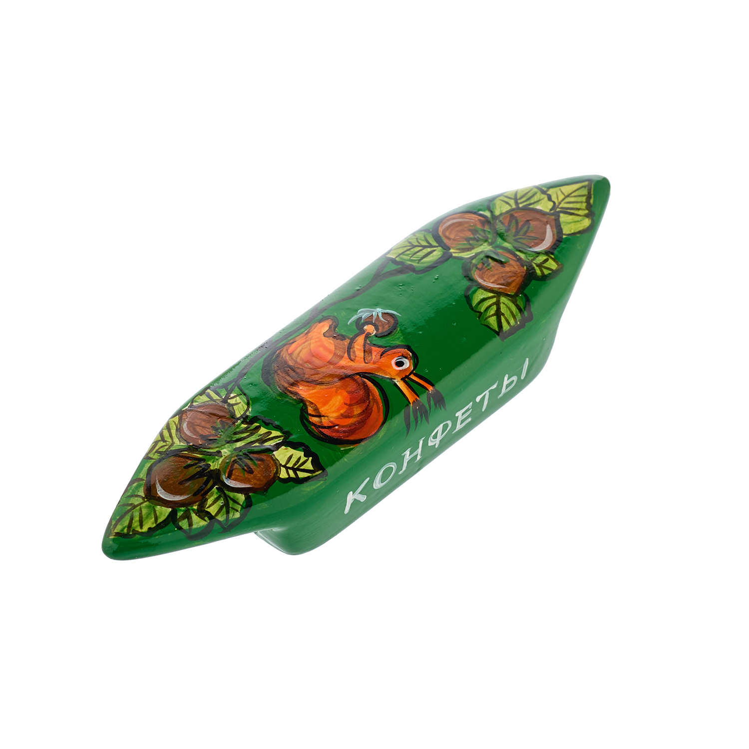 Елочное украшение "Конфета Белочка".Материалы: фарфор, краски, лак.