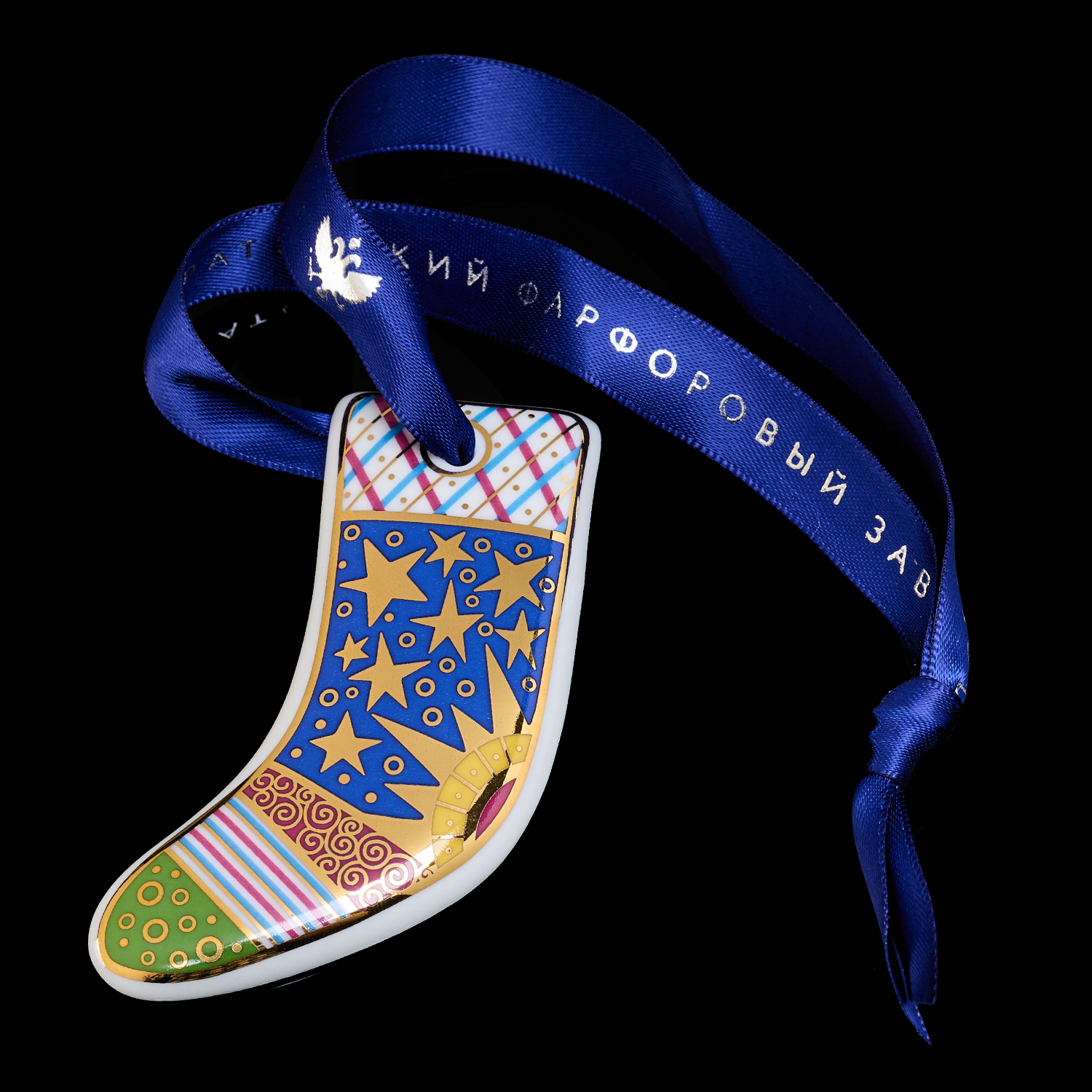 Елочная игрушка "Носочек Колядки". ИФЗ.Материал: фарфор.
