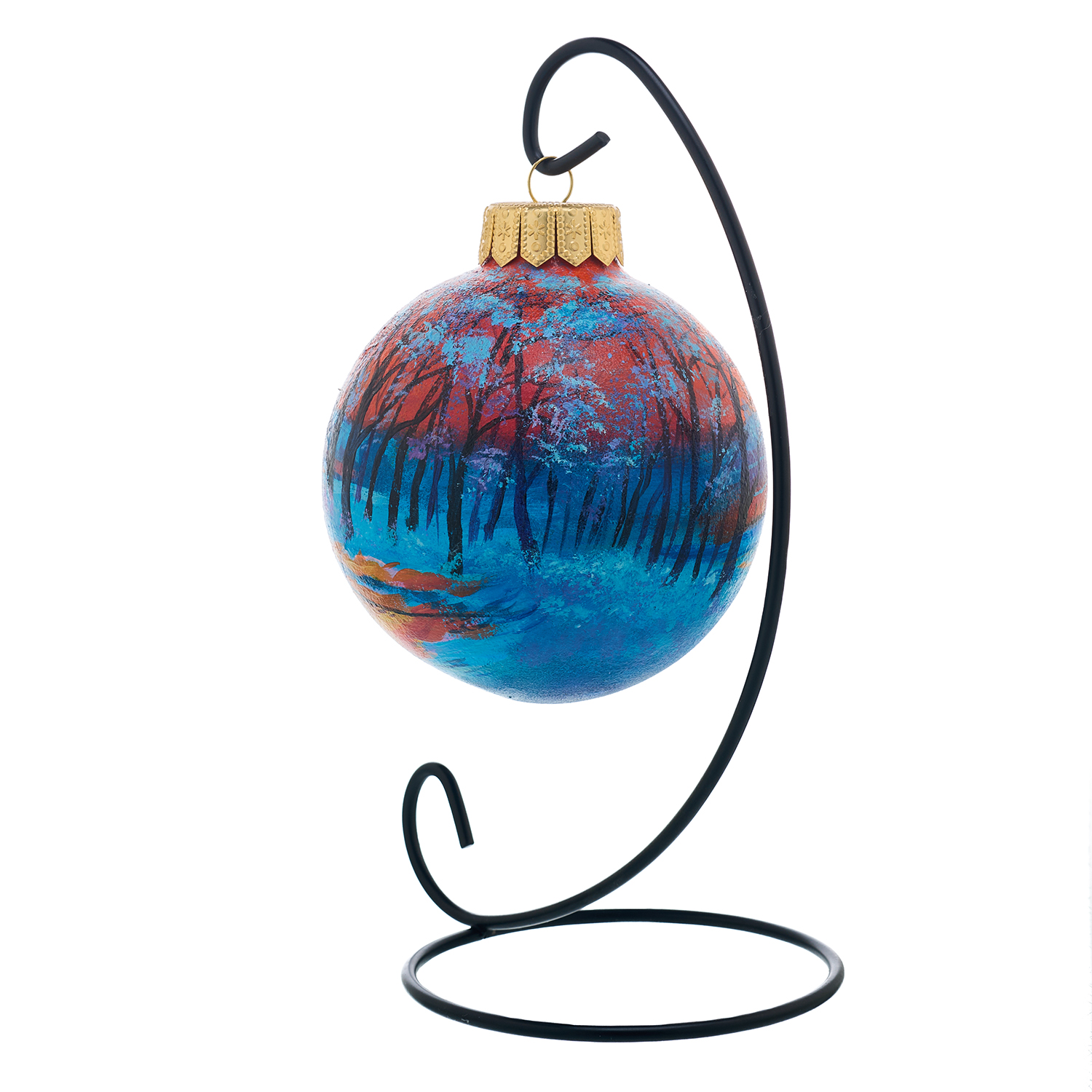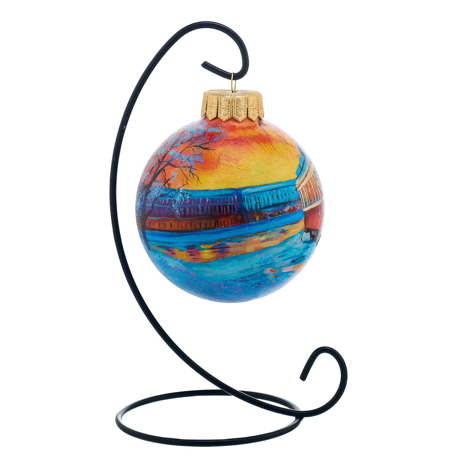 Елочный шар с ручной росписью "Трамвай".Материалы: стекло, краски, лак.