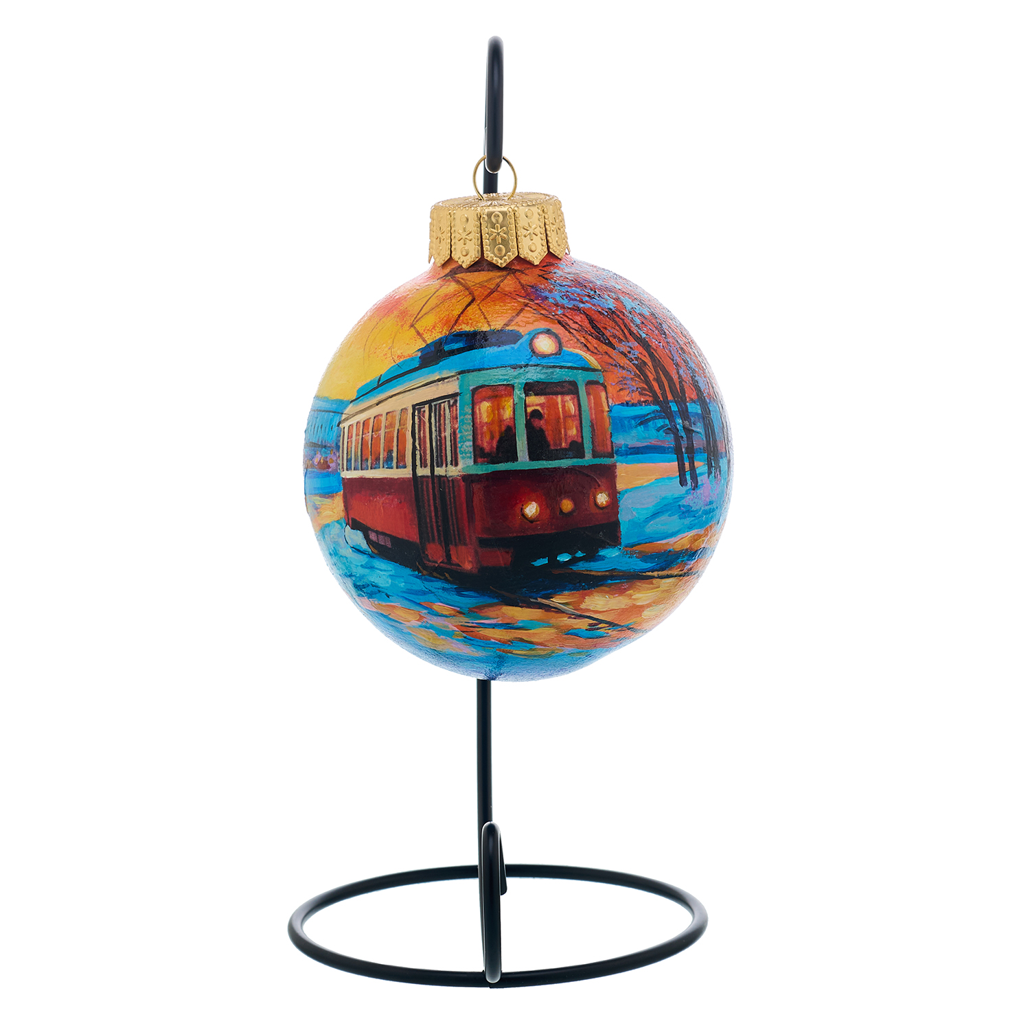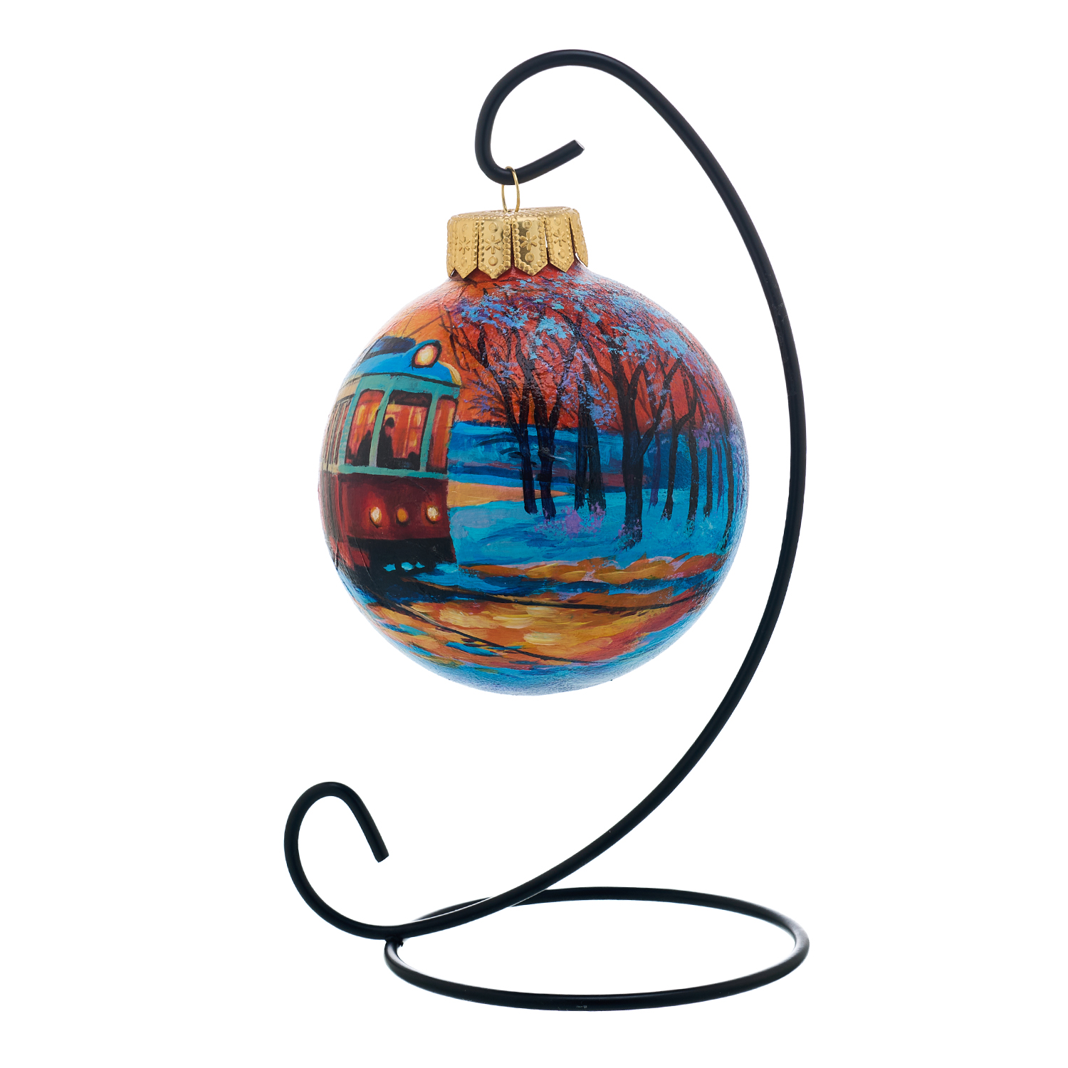 Елочный шар с ручной росписью "Трамвай"