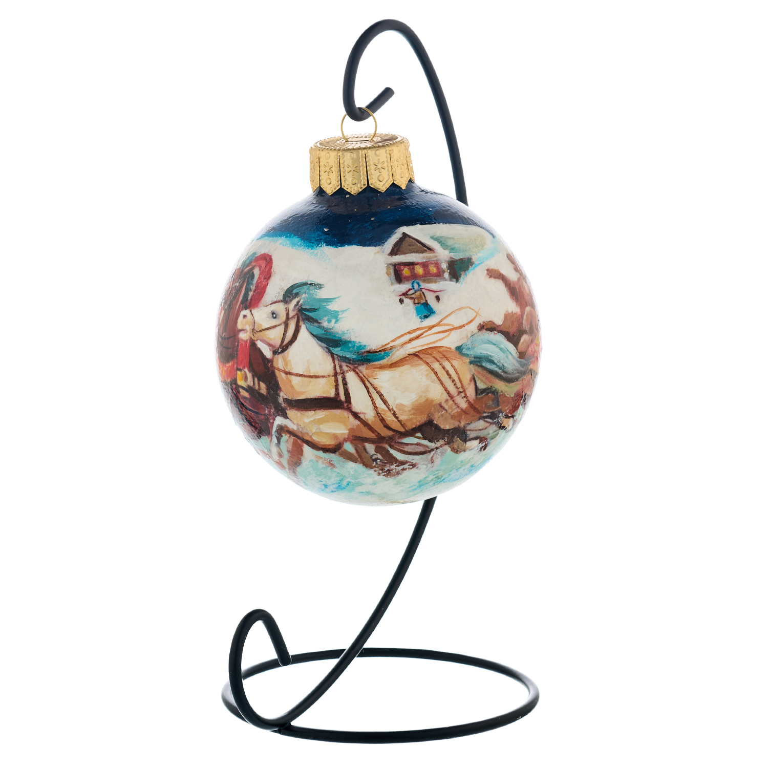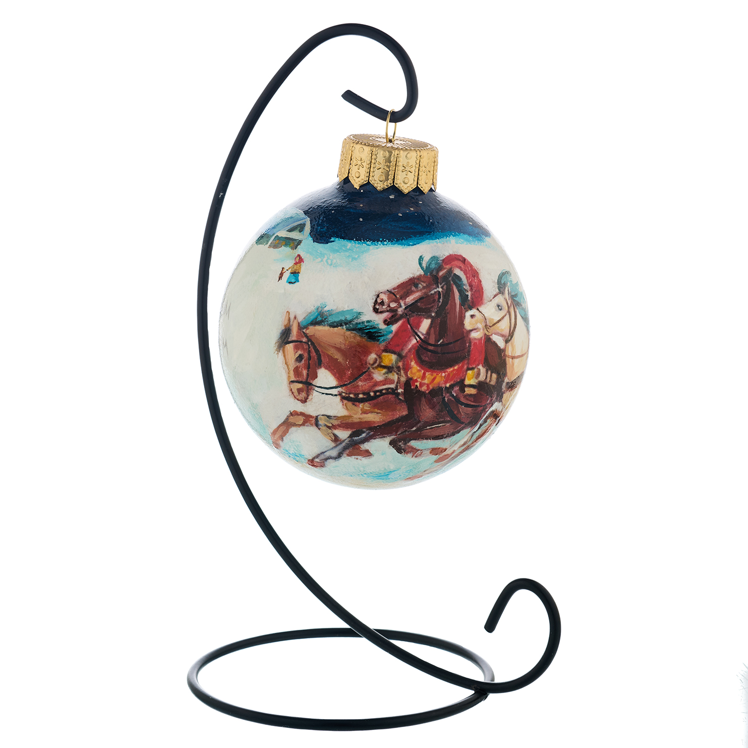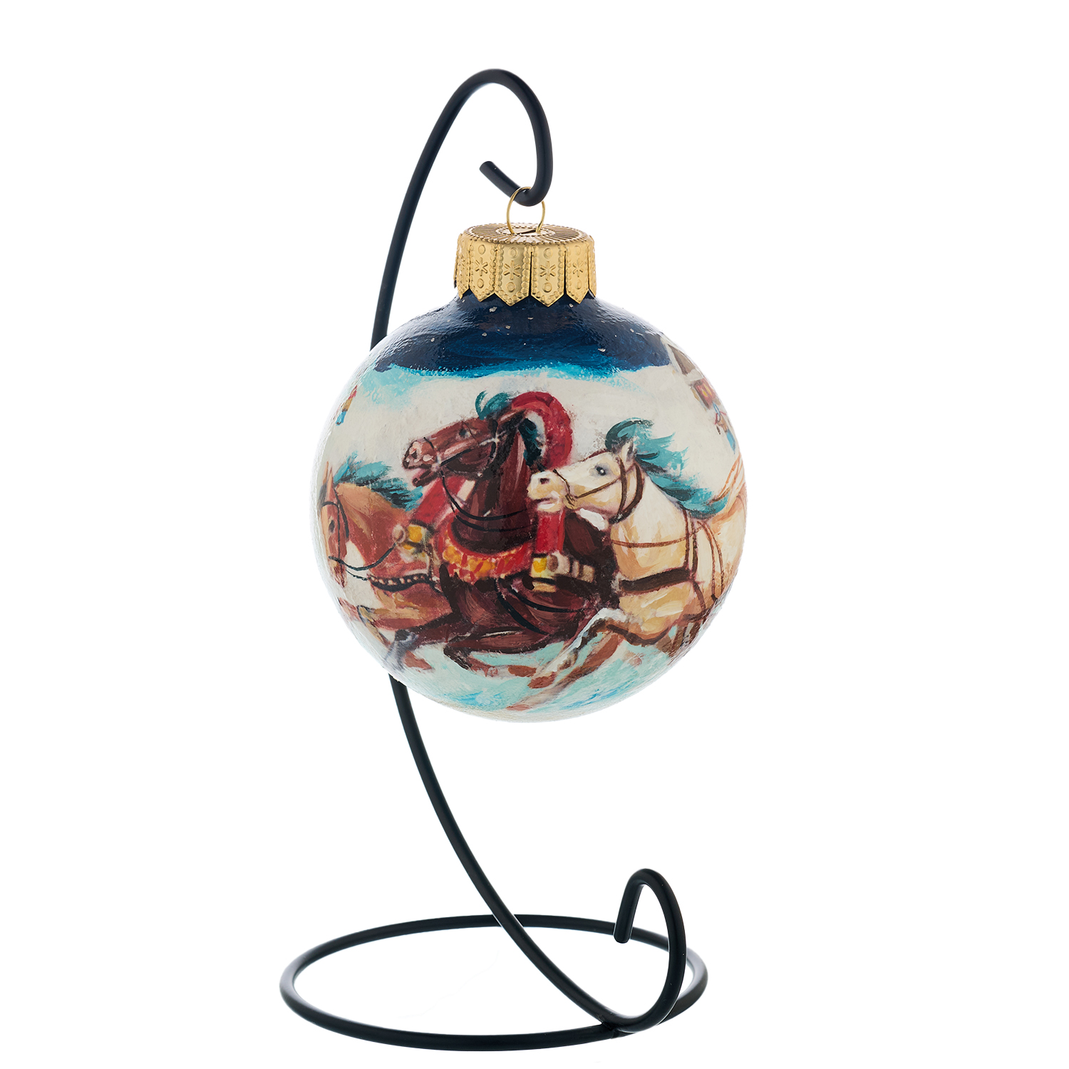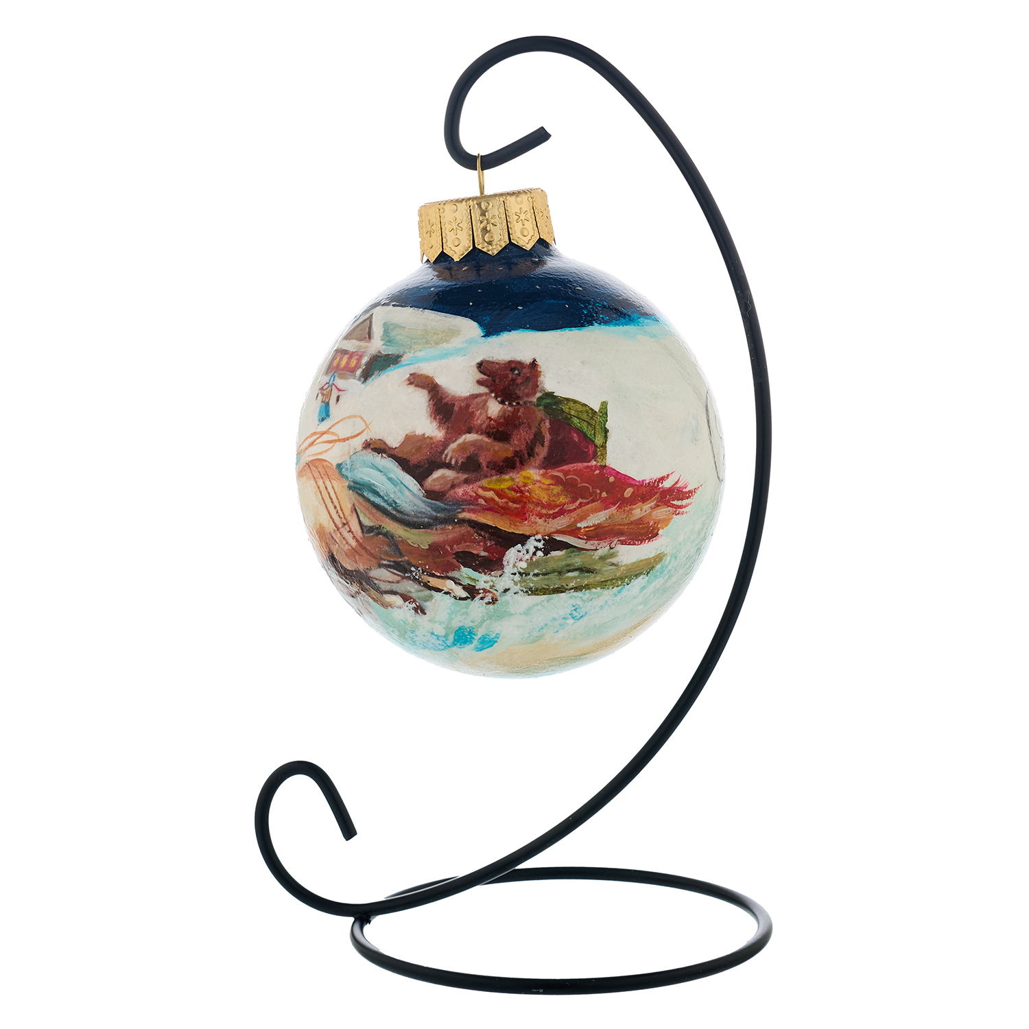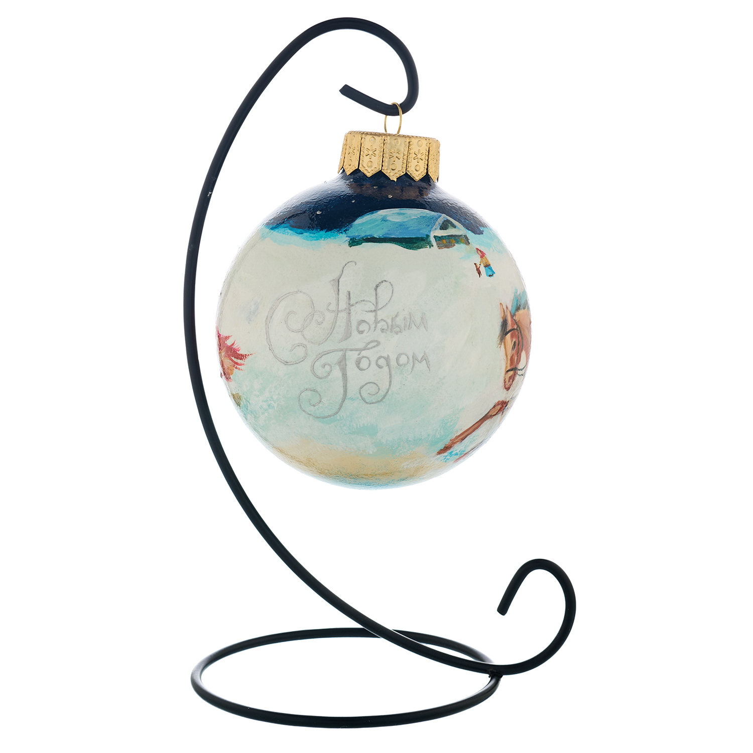 Русские подарки и сувениры → Сувениры → Новогодние украшения → Елочный шар с ручной росписью "Зима. Тройка. Медведь"