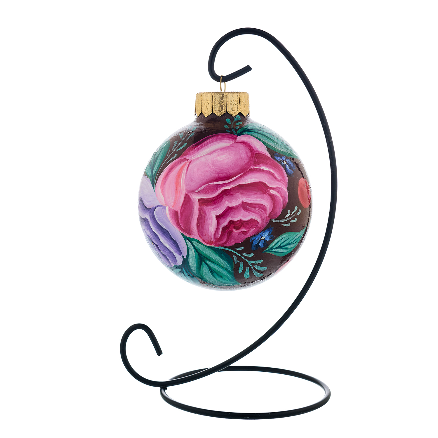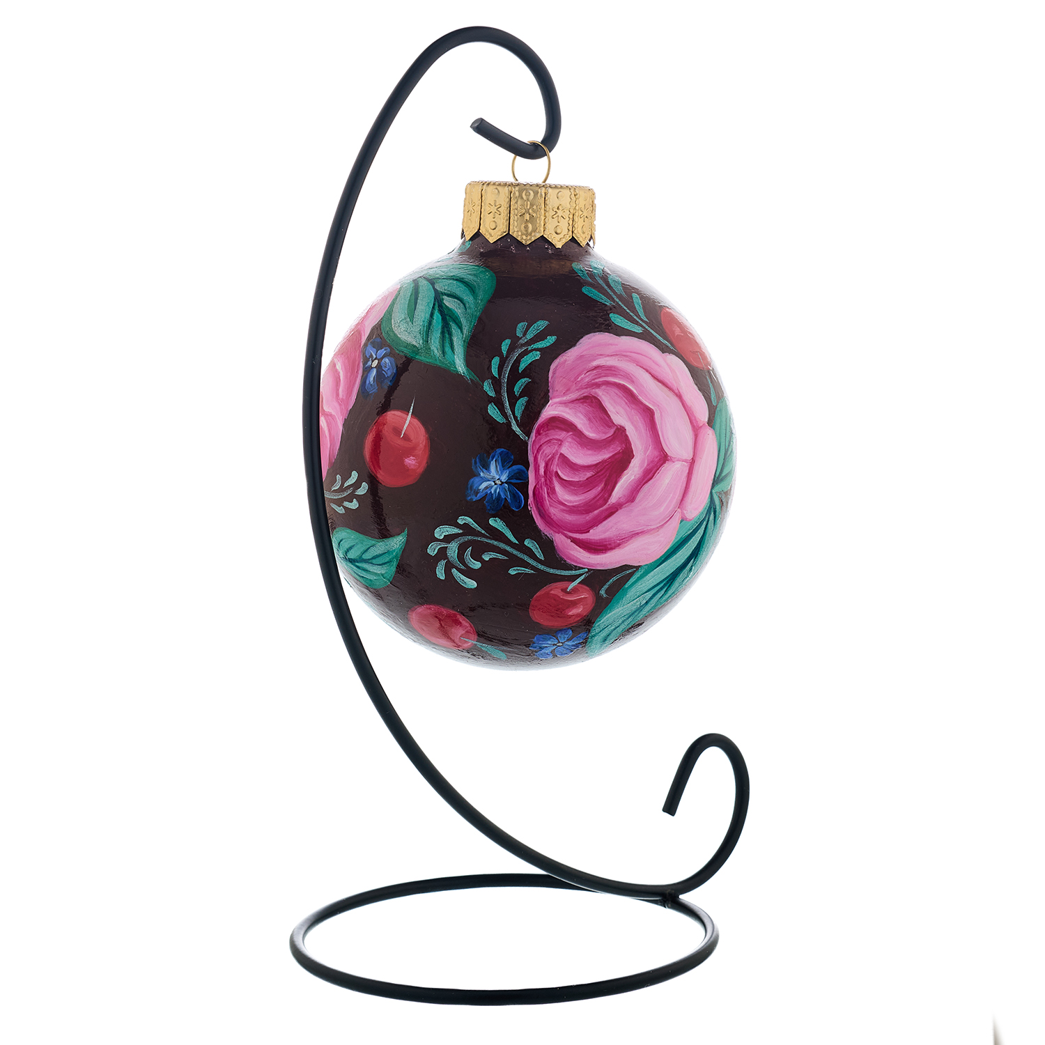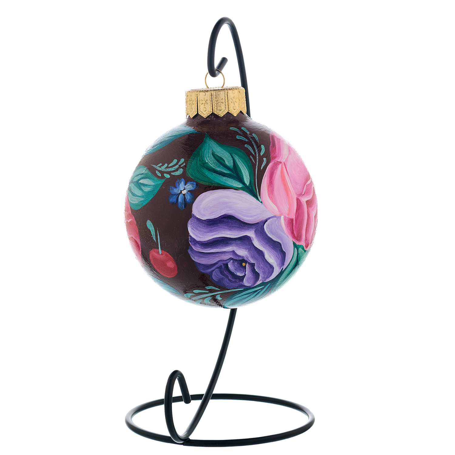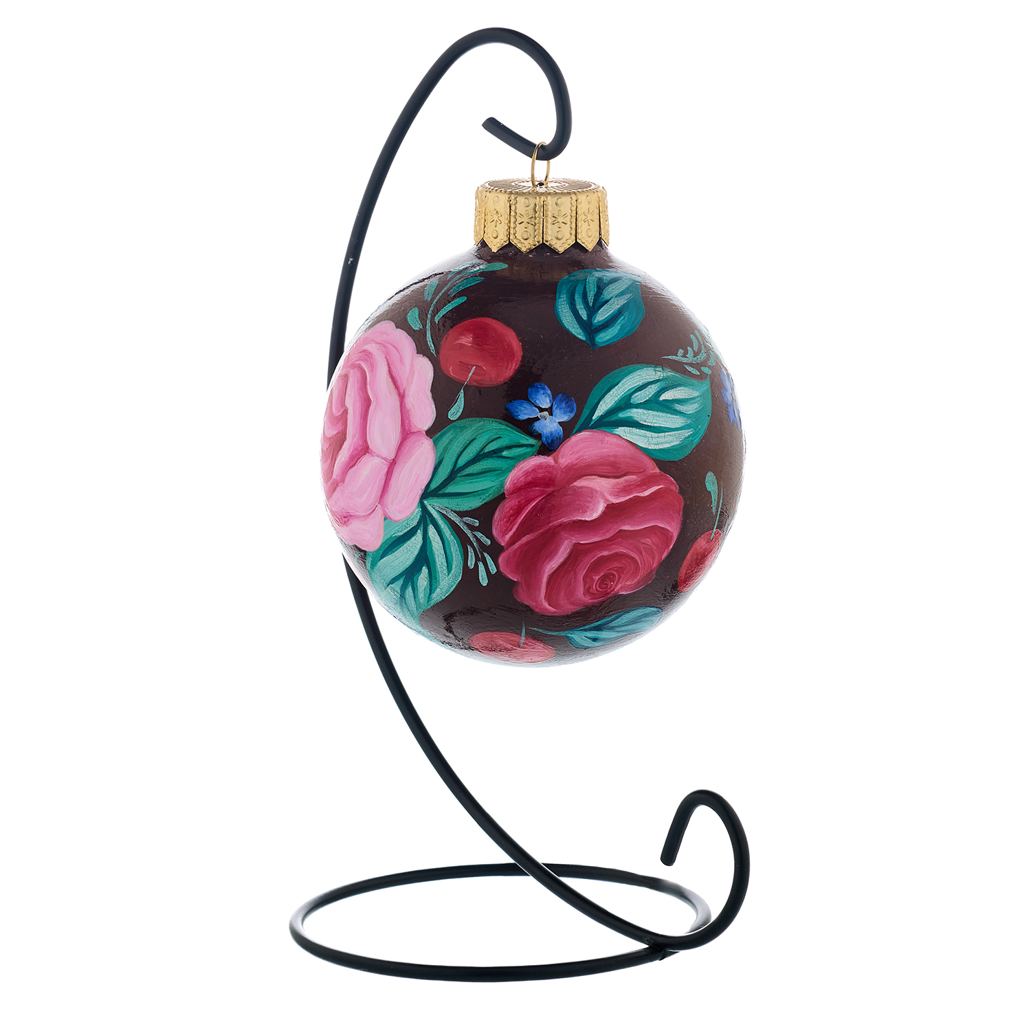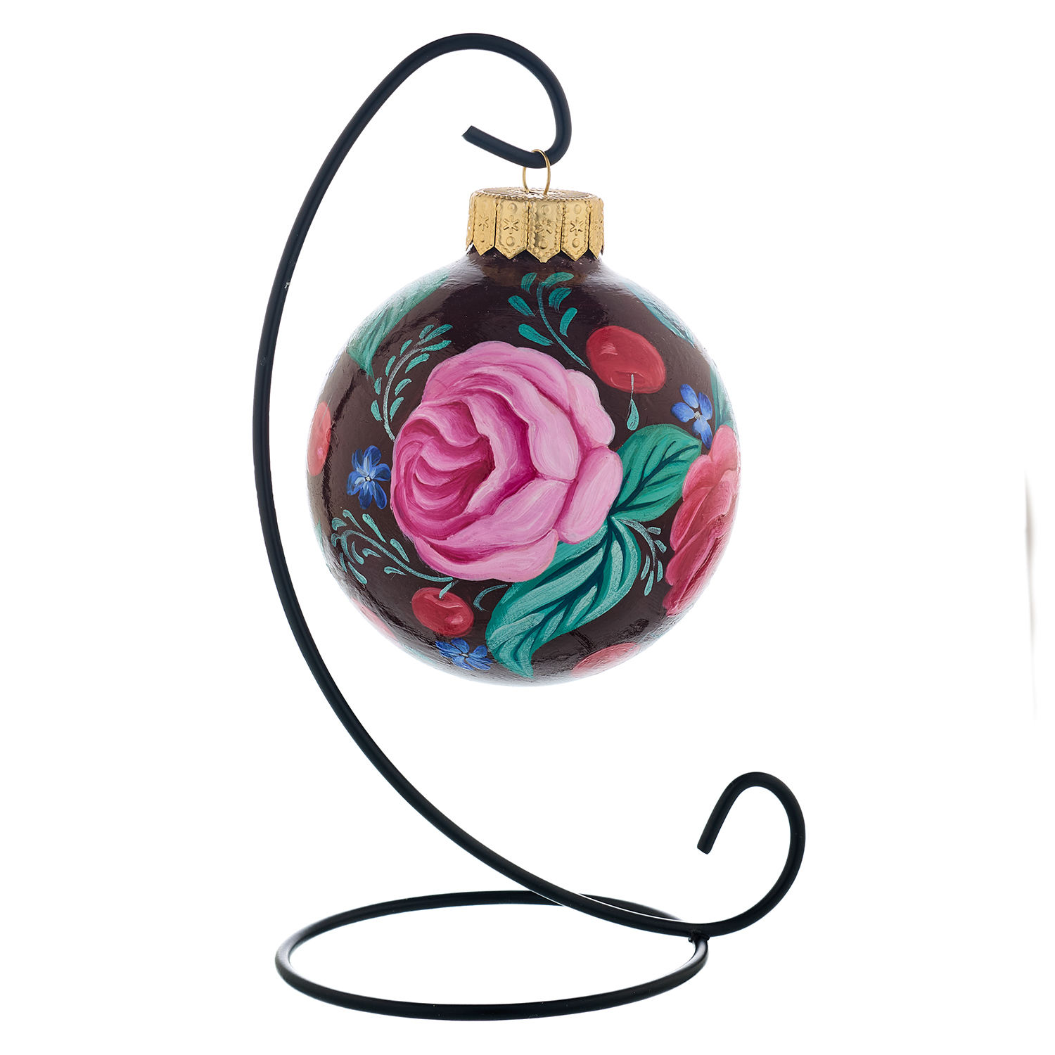 Елочный шар с ручной росписью "Жостово. Цветы".Материалы: стекло, краски, лак.