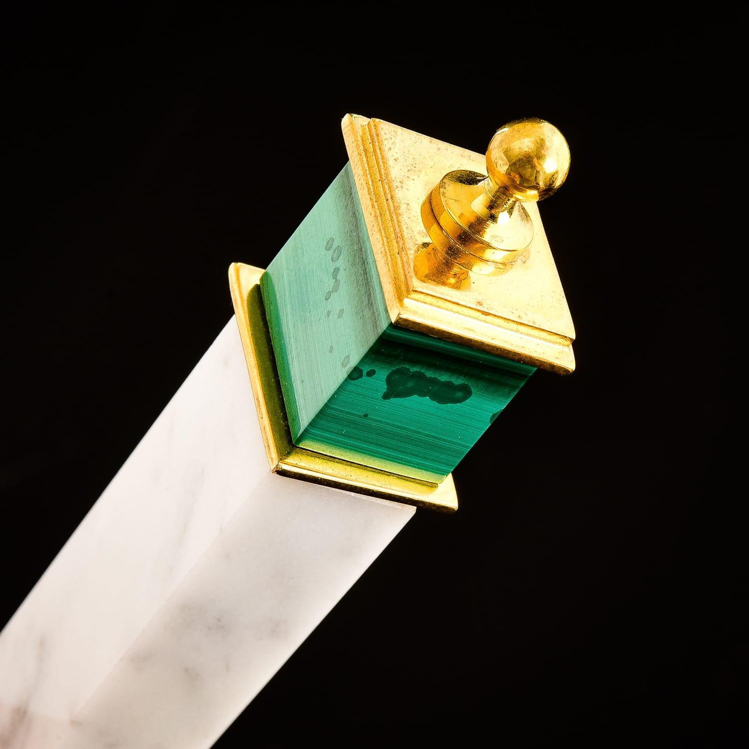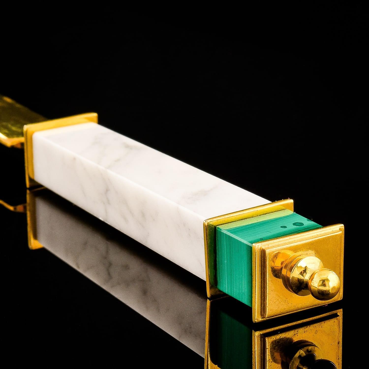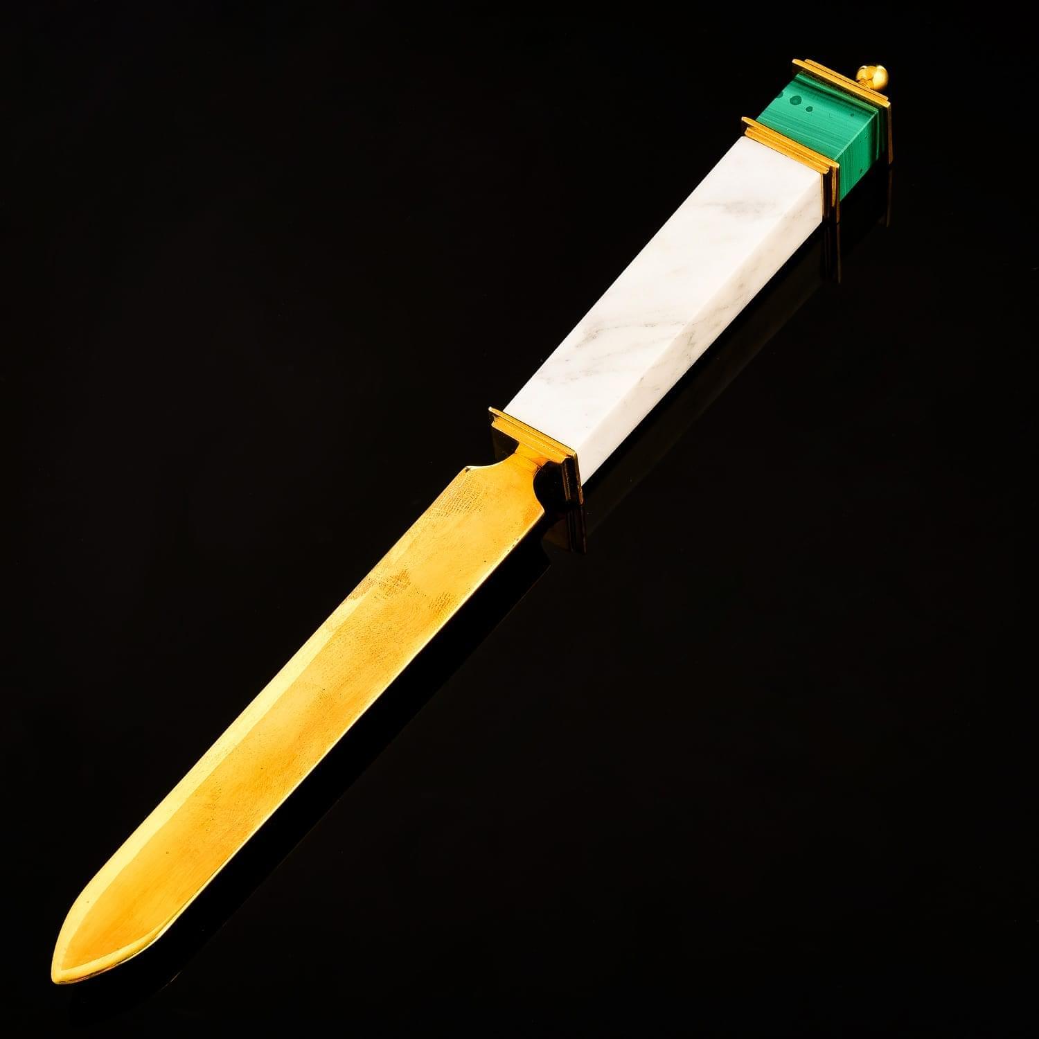 Нож для бумаг из малахита, мрамора и позолоченной стали "Монарх"