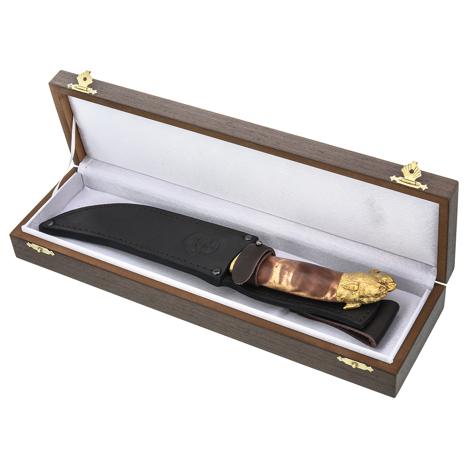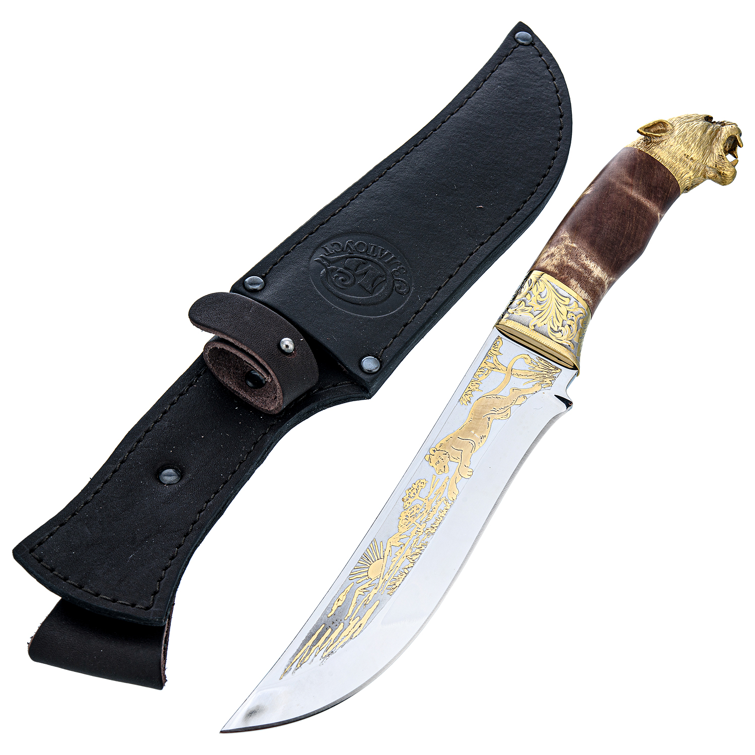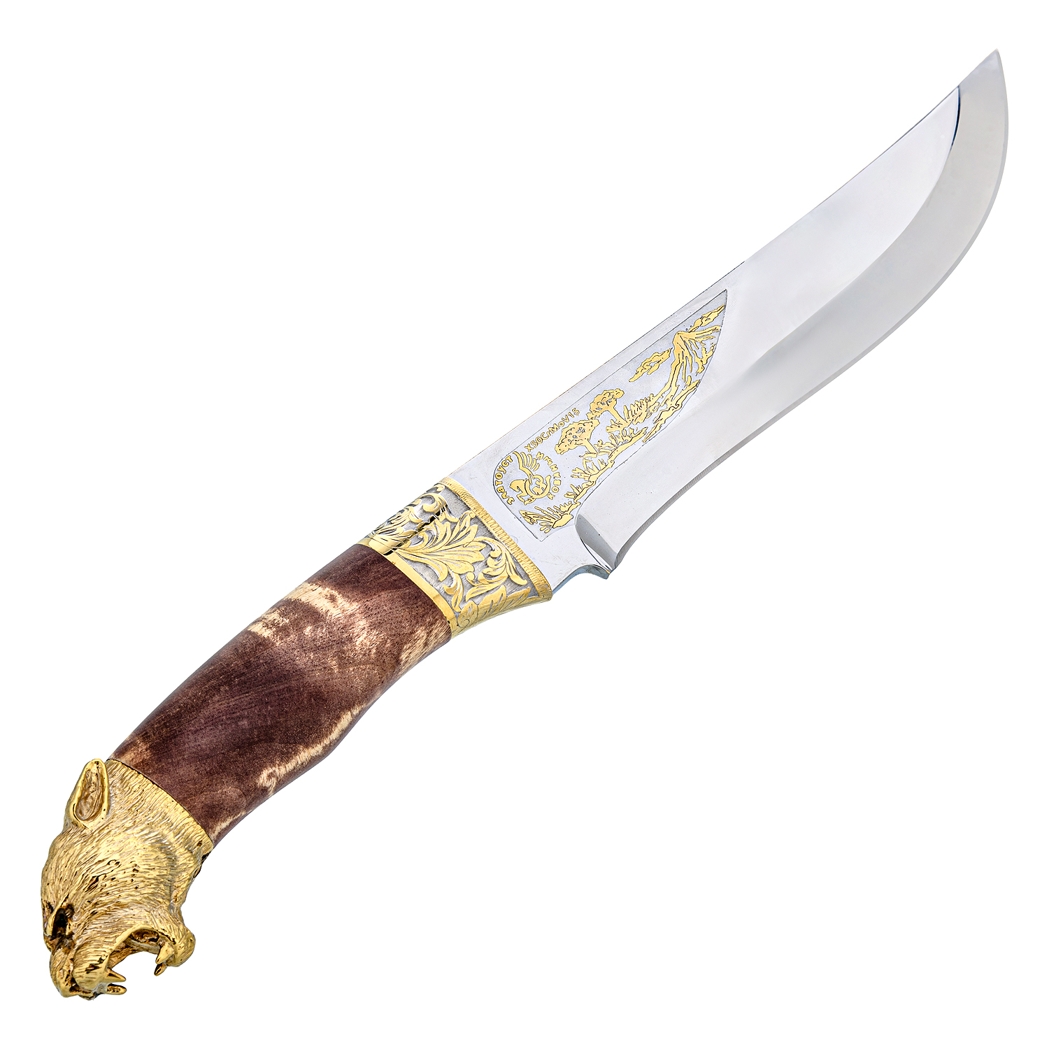 Нож сувенирный "Пантера". Златоуст.Материал: латунь, никель, золото 999,*, ЭИ-107 (40Х10С2М), дерево.