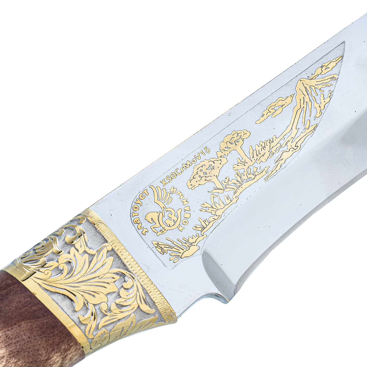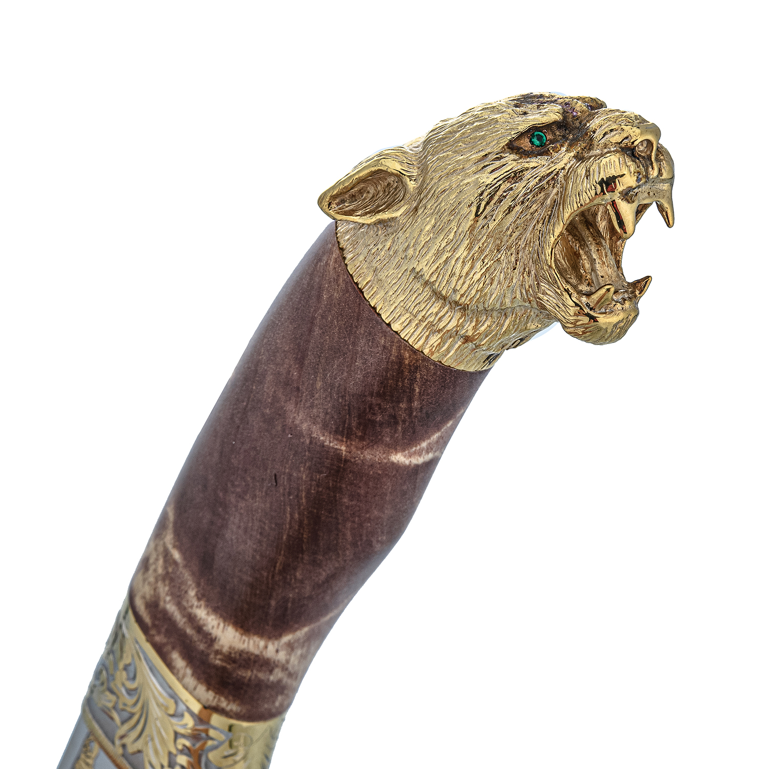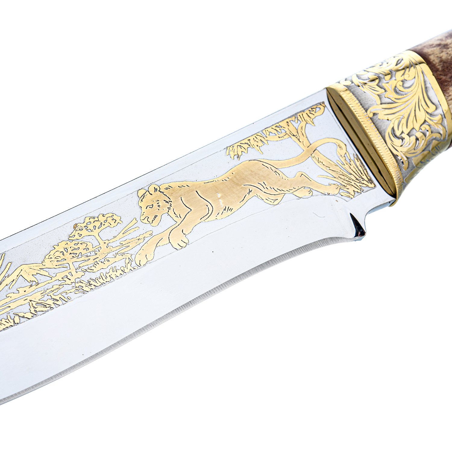 Нож сувенирный "Пантера". Златоуст.Материал: латунь, никель, золото 999,*, ЭИ-107 (40Х10С2М), дерево.