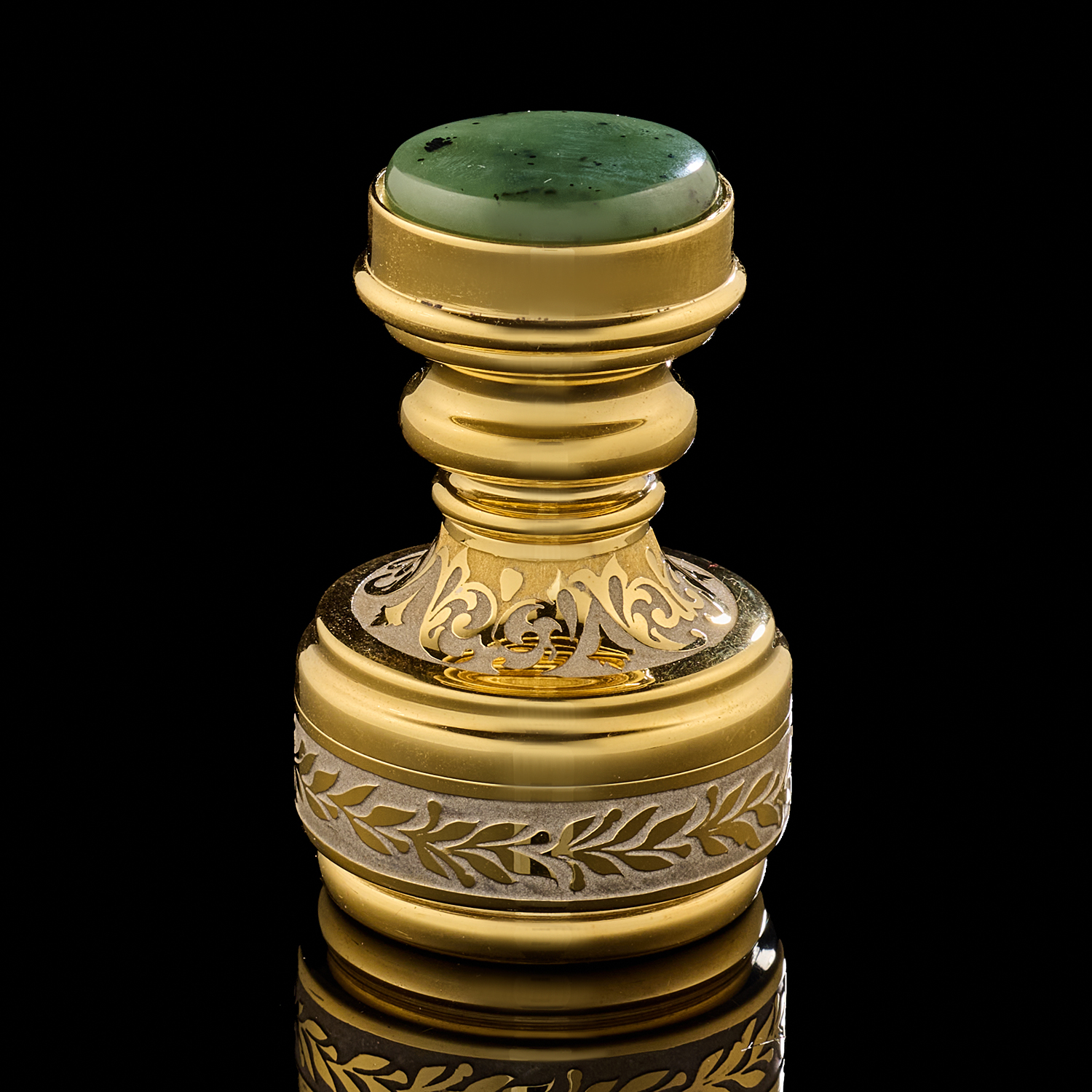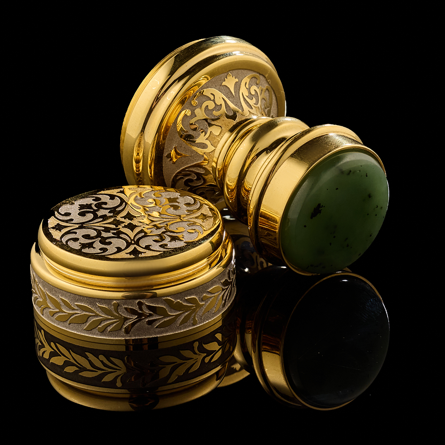 Оснастка под печать "Нефрит". Златоуст.Материалы: латунь, никель, золото 999,9*, нефрит.