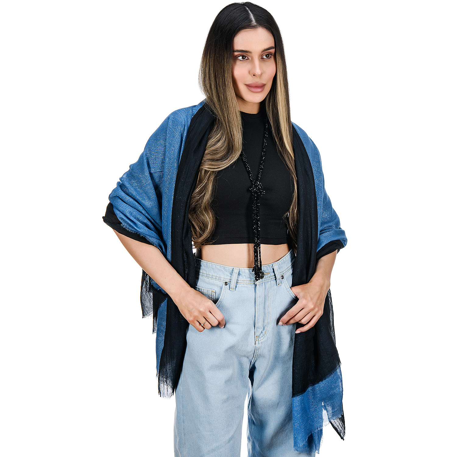 Набор парных палантинов с бусами-жгутом "Дуэт". Черно-синий