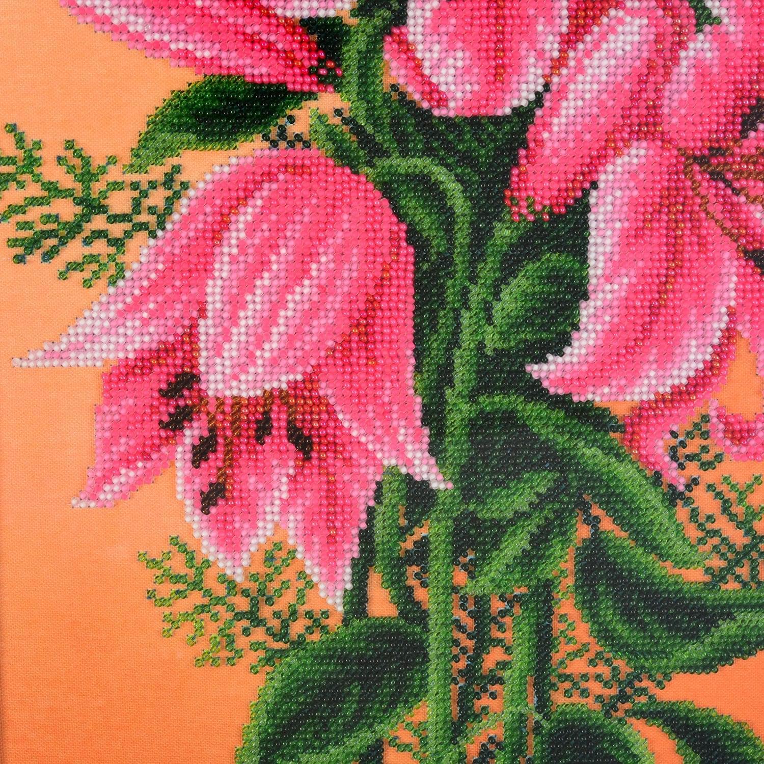 Панно с вышивкой бисером "Лилии" 28 х 64 см
