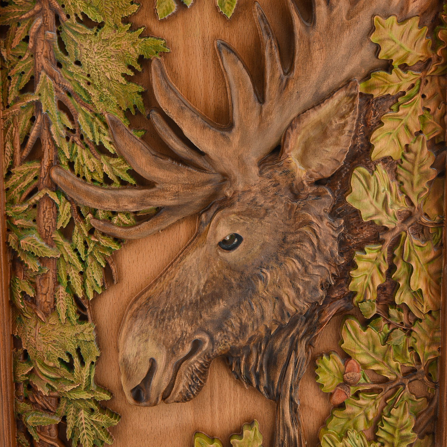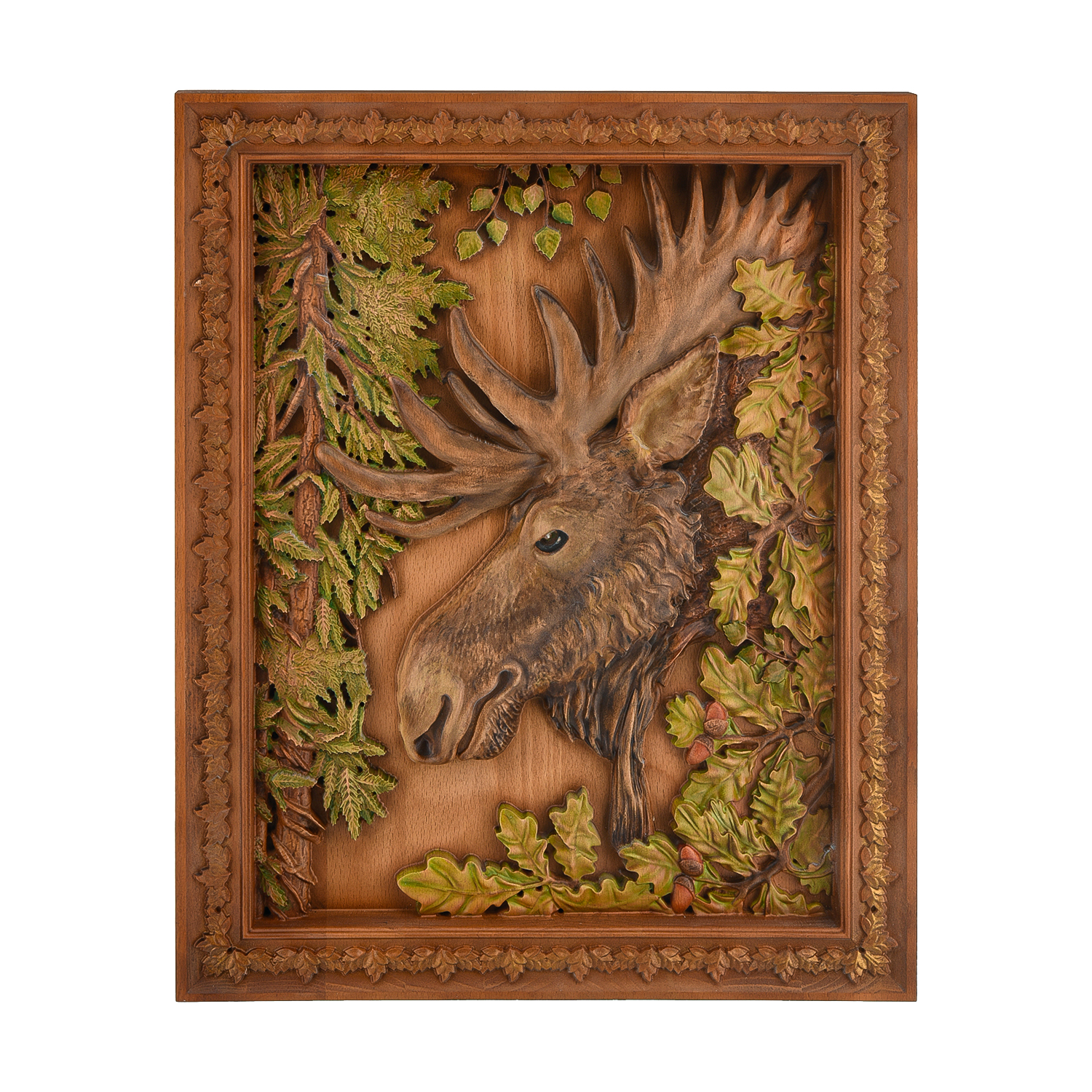 Русские подарки и сувениры → Интерьерные изделия → Панно → Панно из натурального дерева "Лось" 50х39 см