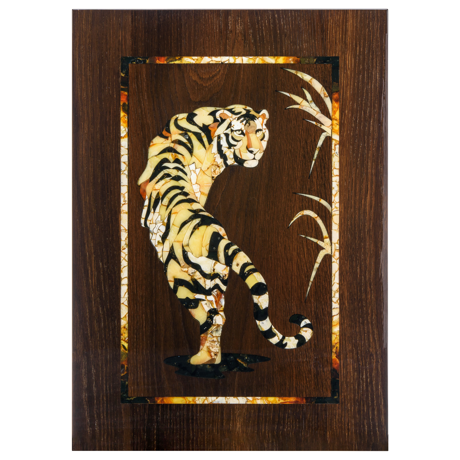 Панно янтарное "Крадущийся тигр" 45х65 см
