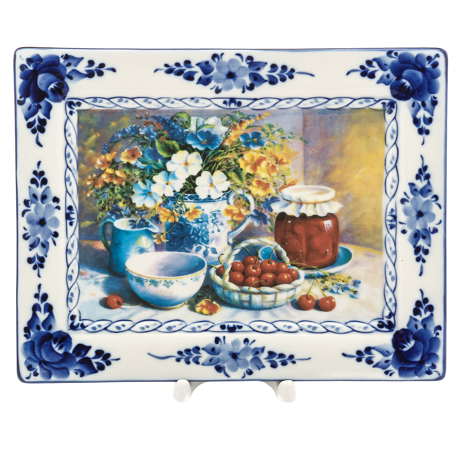 006444 Гжель Плакетка "ПЕЙЗАЖ В РАМКЕ", деколь №10