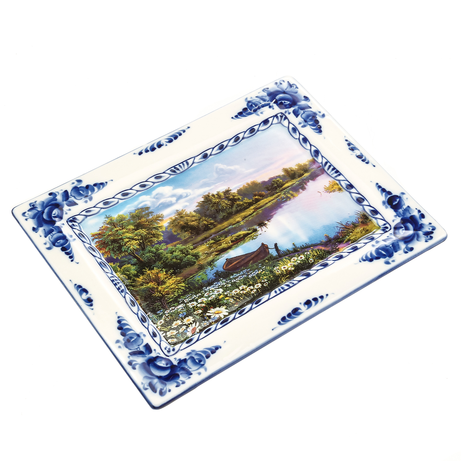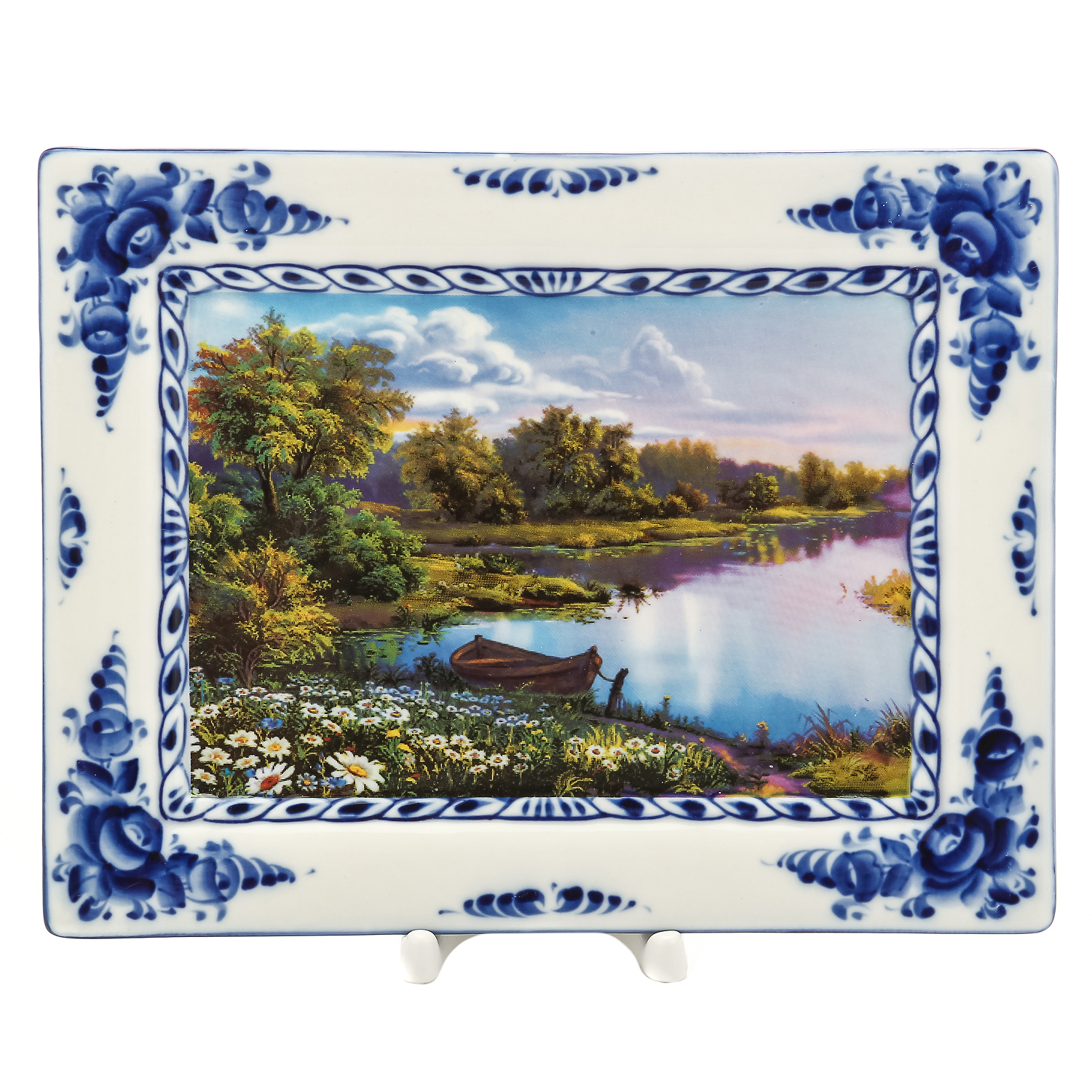 Русские подарки и сувениры → Интерьерные изделия → Панно → Плакетка настенная "Пейзаж в рамке №13". Гжель