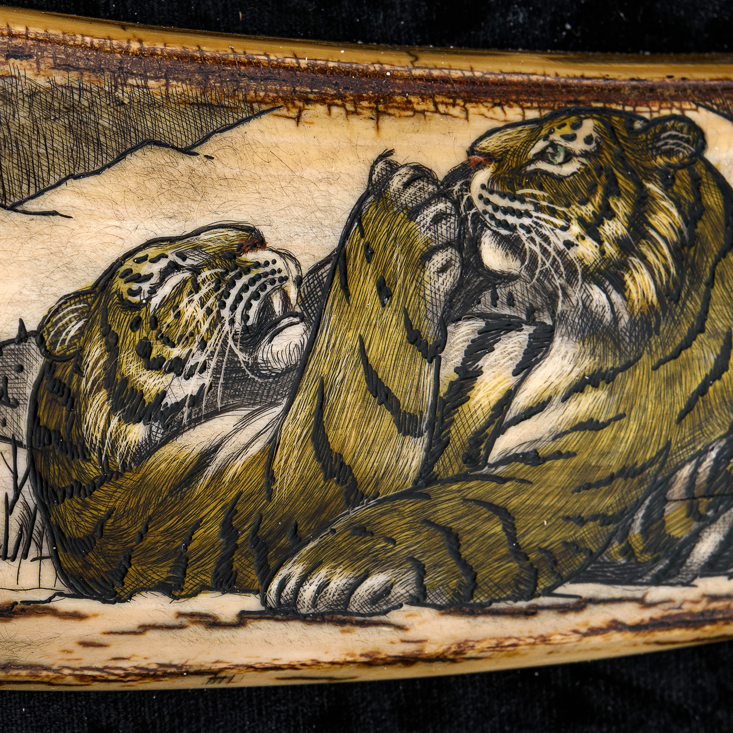 Панно из кости "Тигры" 34 х 25,5 см