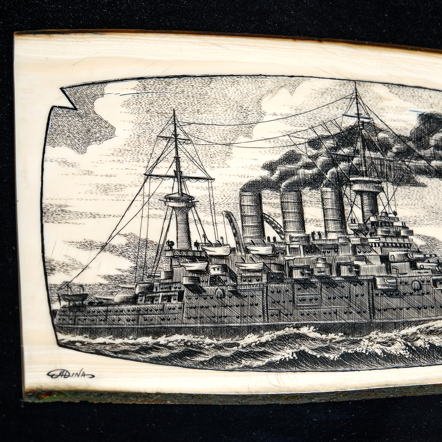 Панно из кости "Крейсер" 36 х 30 см