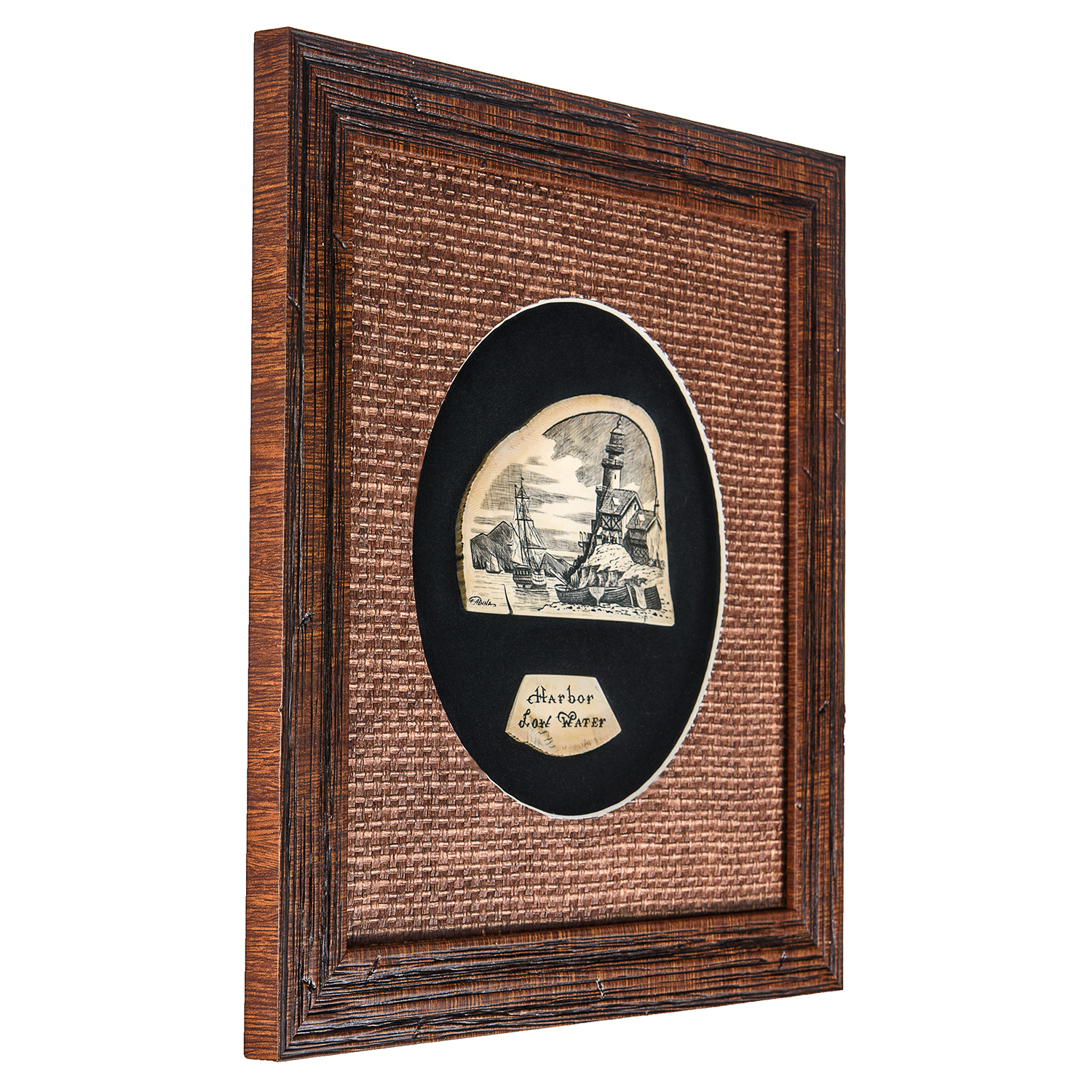 Панно из кости "Маяк".Материалы: кость, паспарту, деревянный багет.