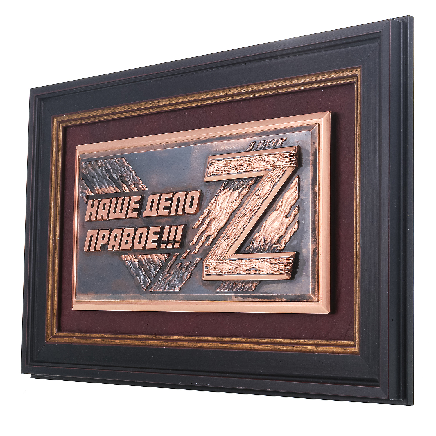 Панно настенное "Наше дело правое".Материалы: металл, гальванопластика, деревянный багет.