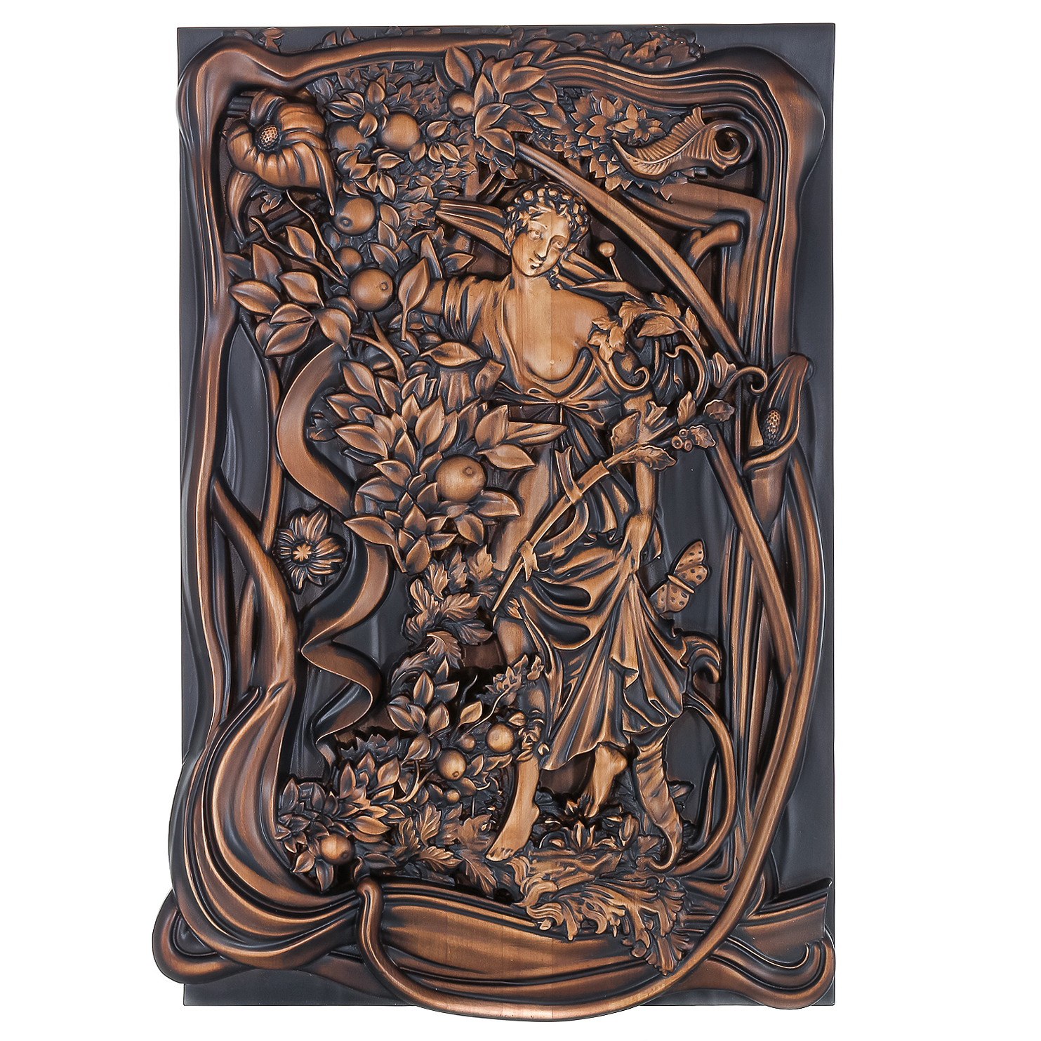 Панно из дерева "Девушка с яблоками" 79 х 52,5 см