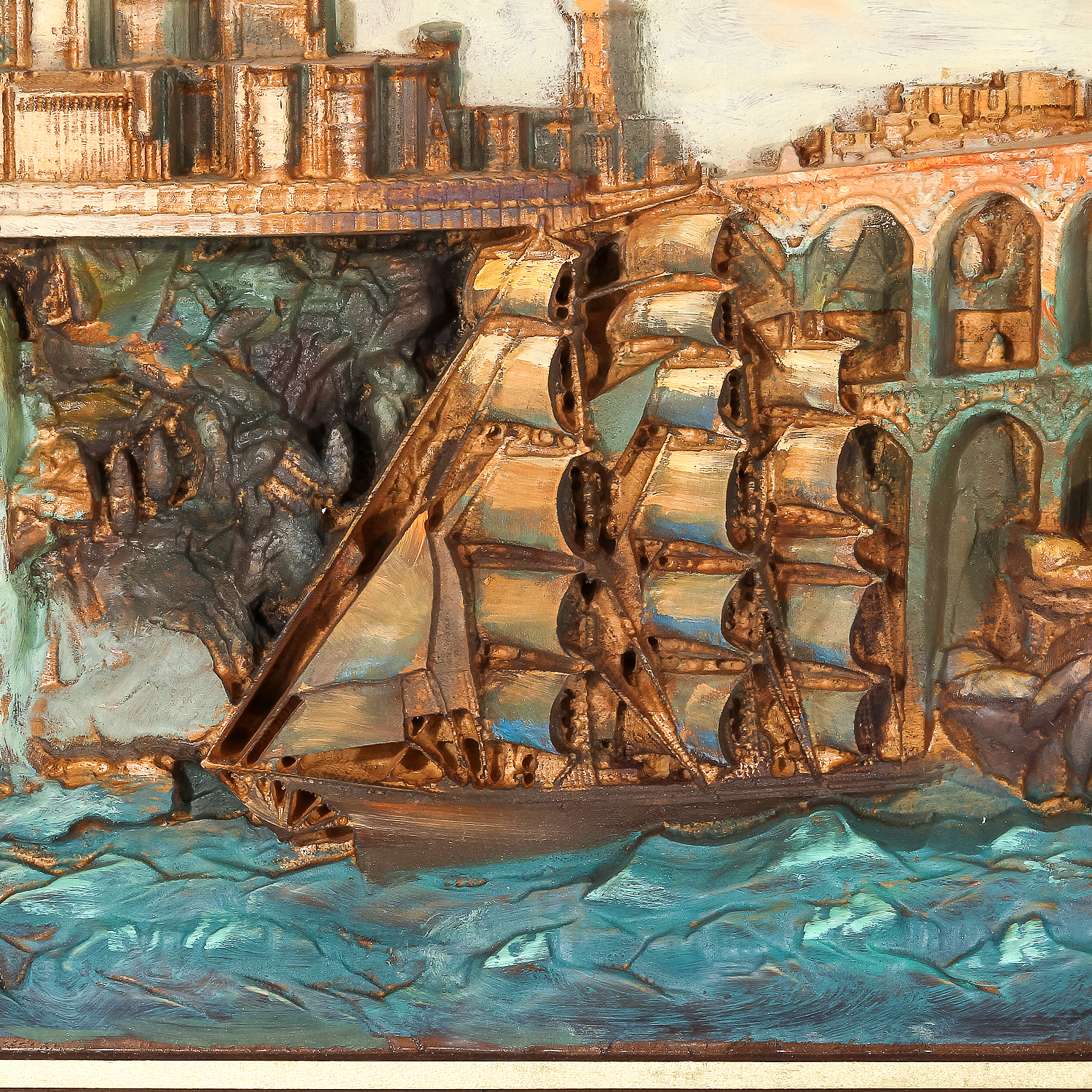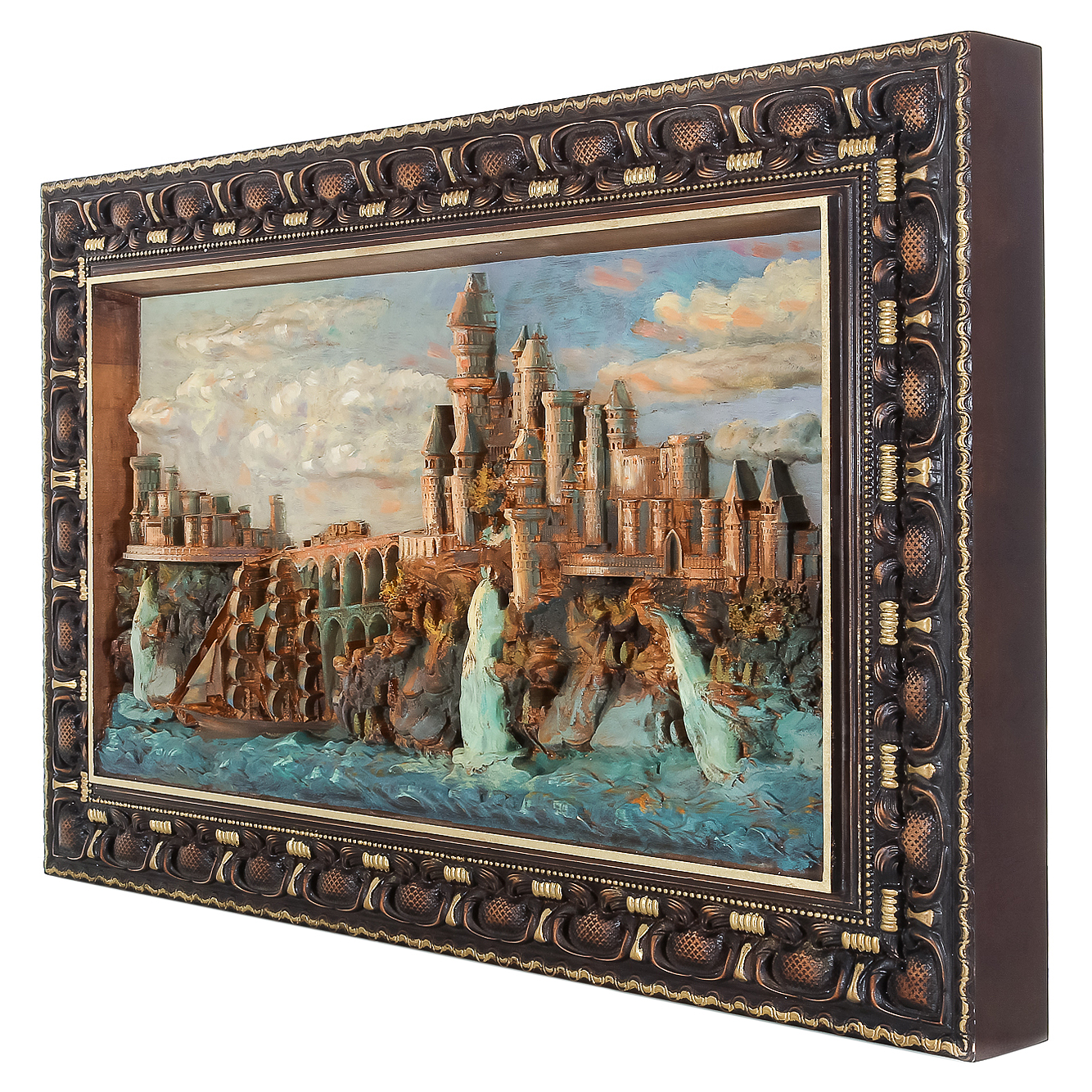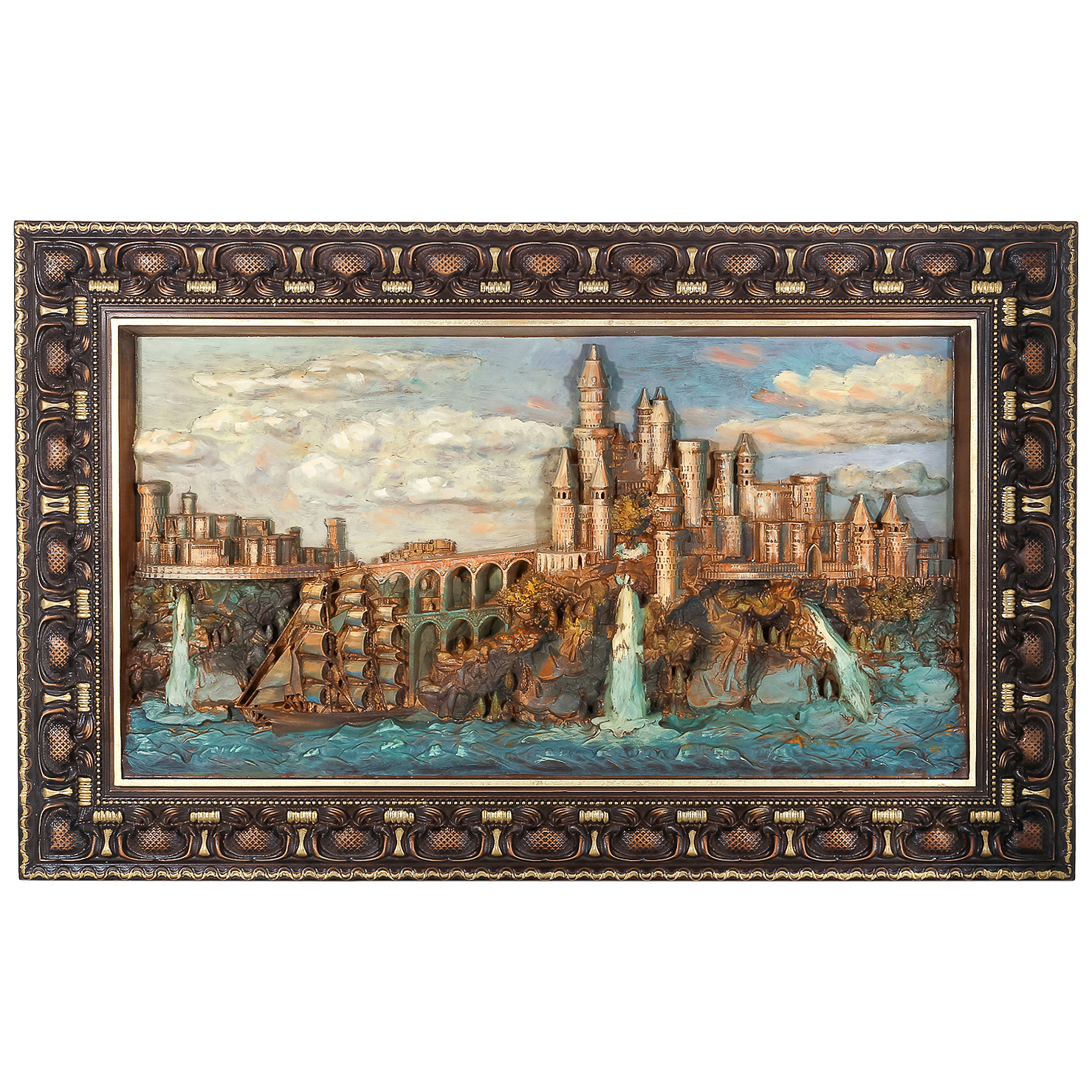 Панно из дерева "Замок с кораблем" 95 х 59,5 см