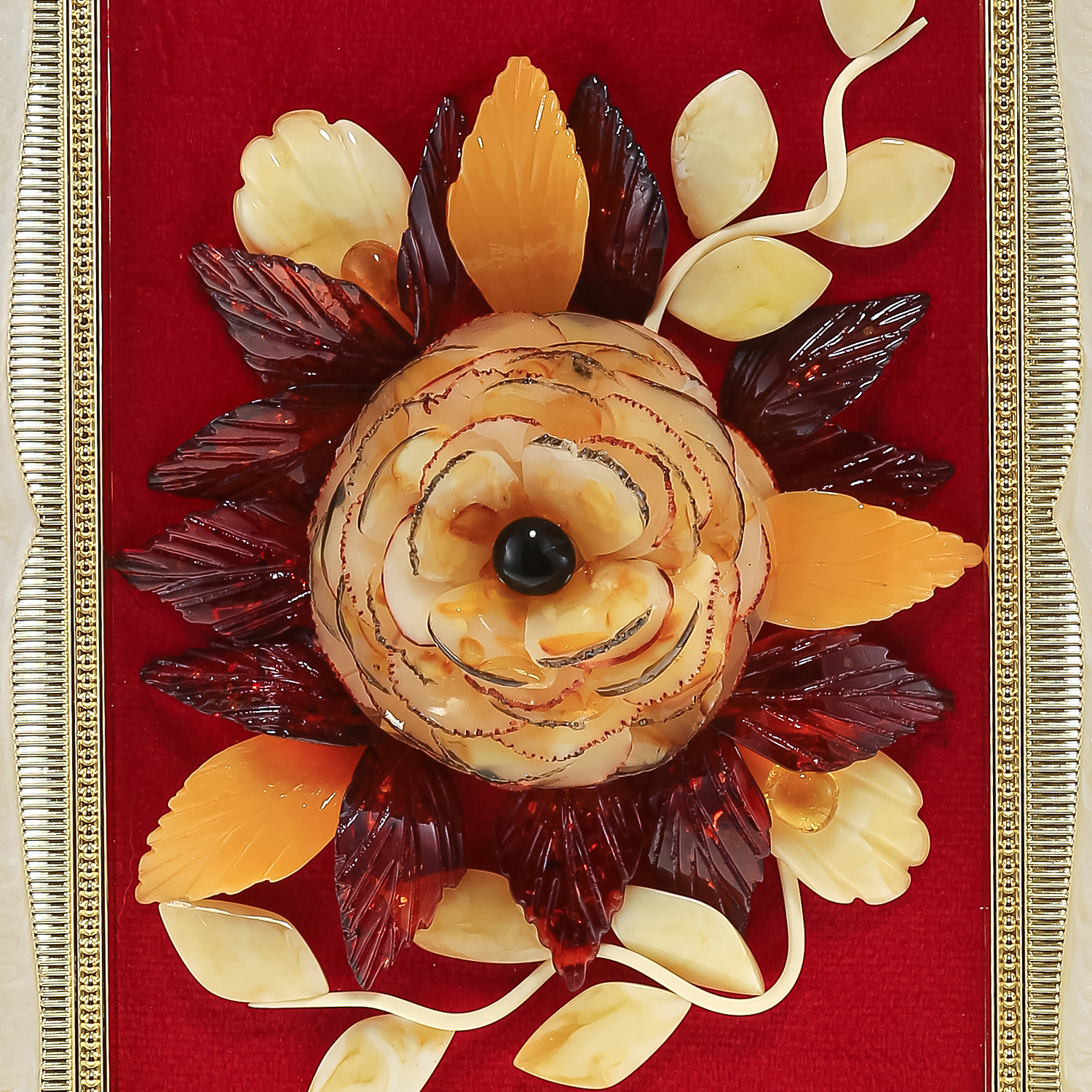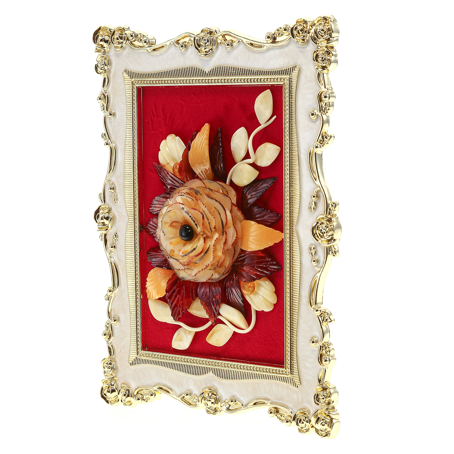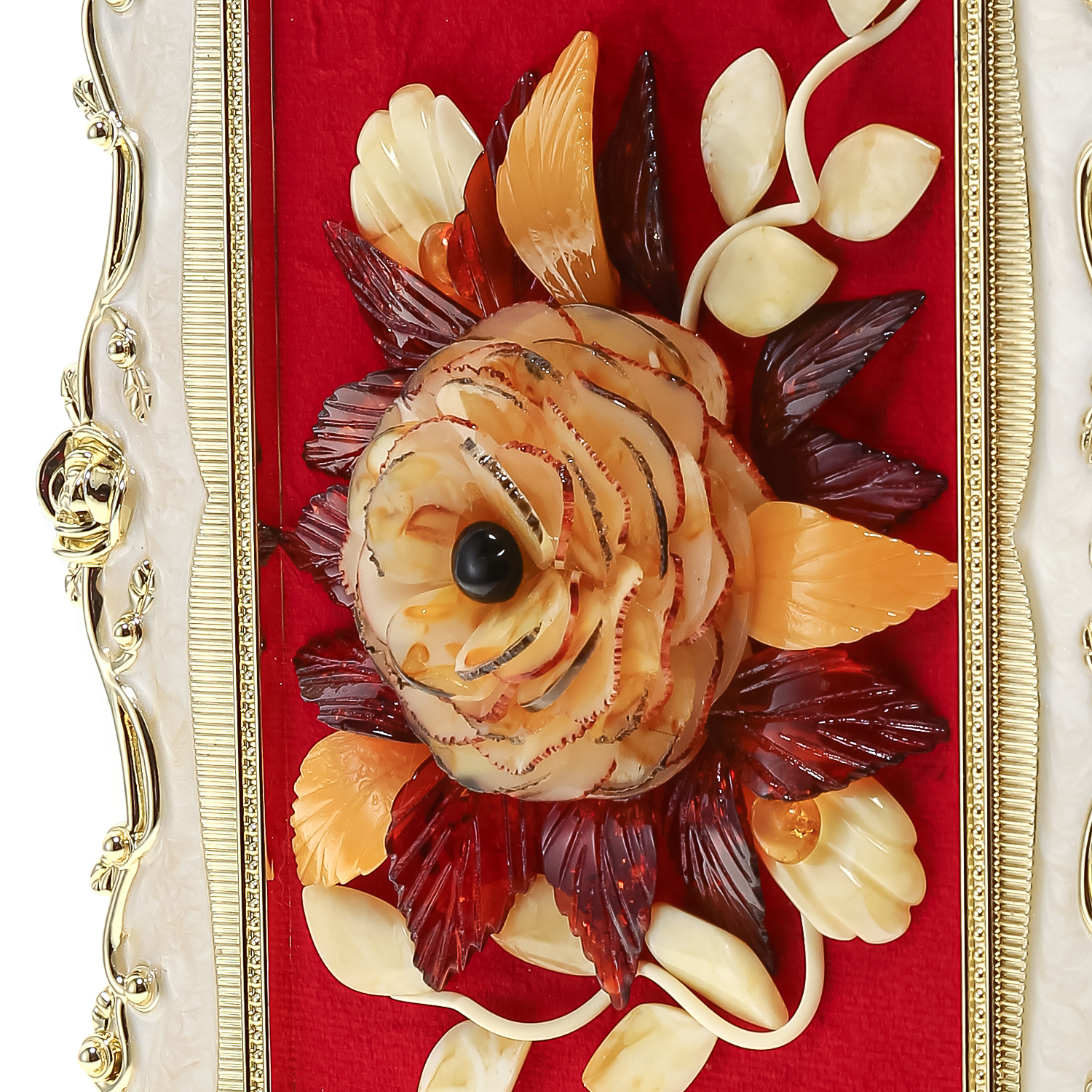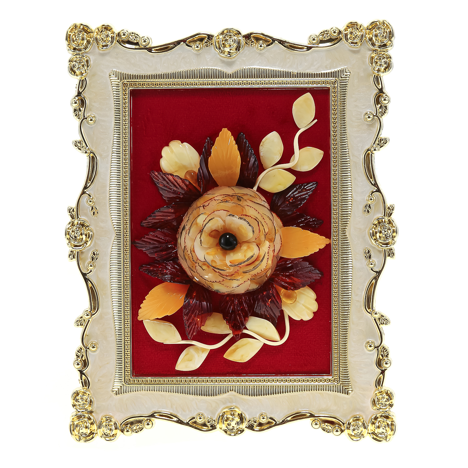 Русские подарки и сувениры → Интерьерные изделия → Панно → Настольное янтарное панно "Открытка с цветами" 24х18 см