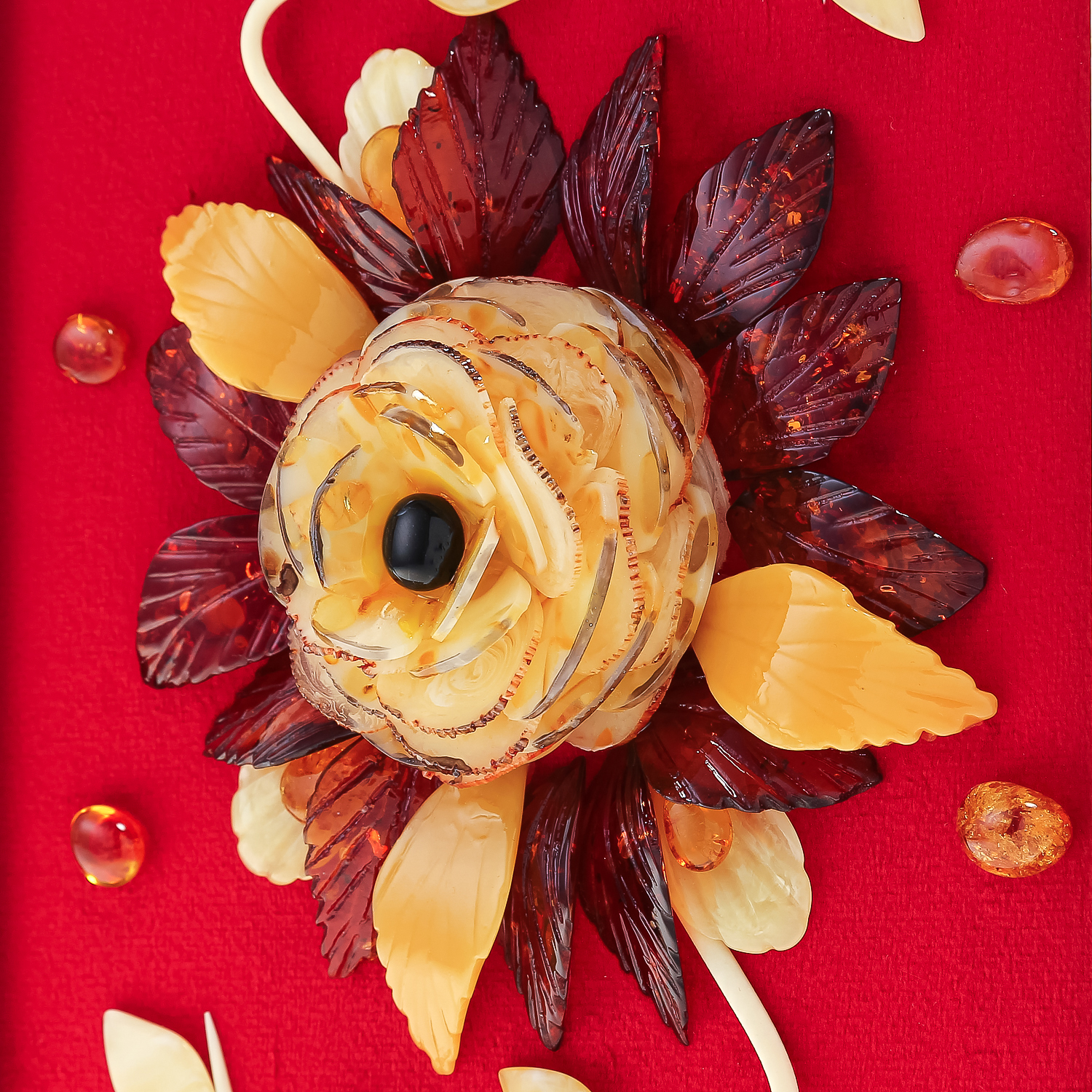 Янтарное панно "Роза".Материалы: янтарь, бархат, пластик.