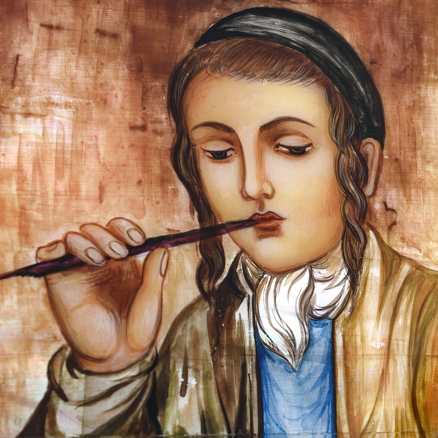 Панно на перламутре "Изучение Торы".Материалы: дерево, перламутр, краски, лак.