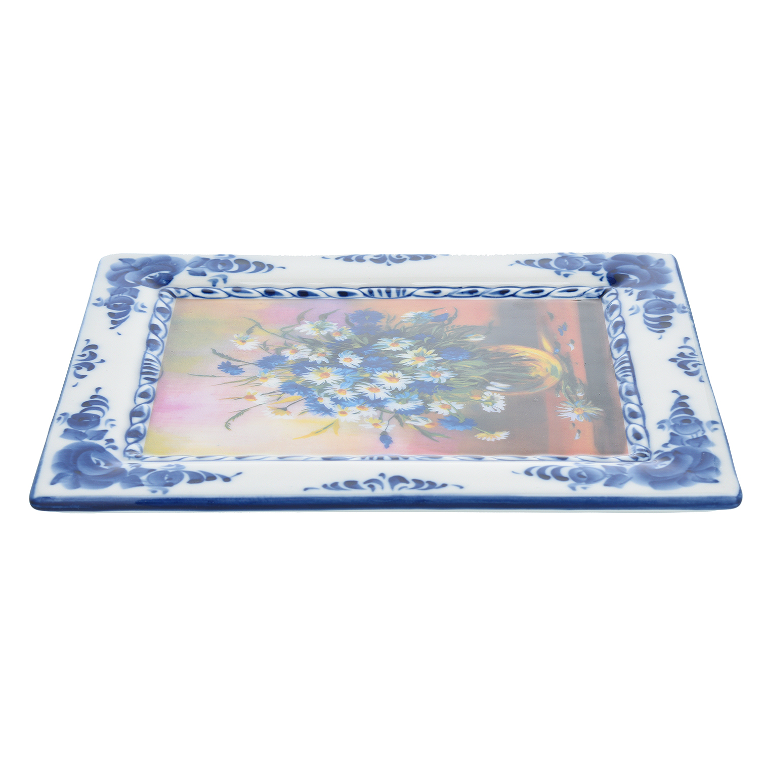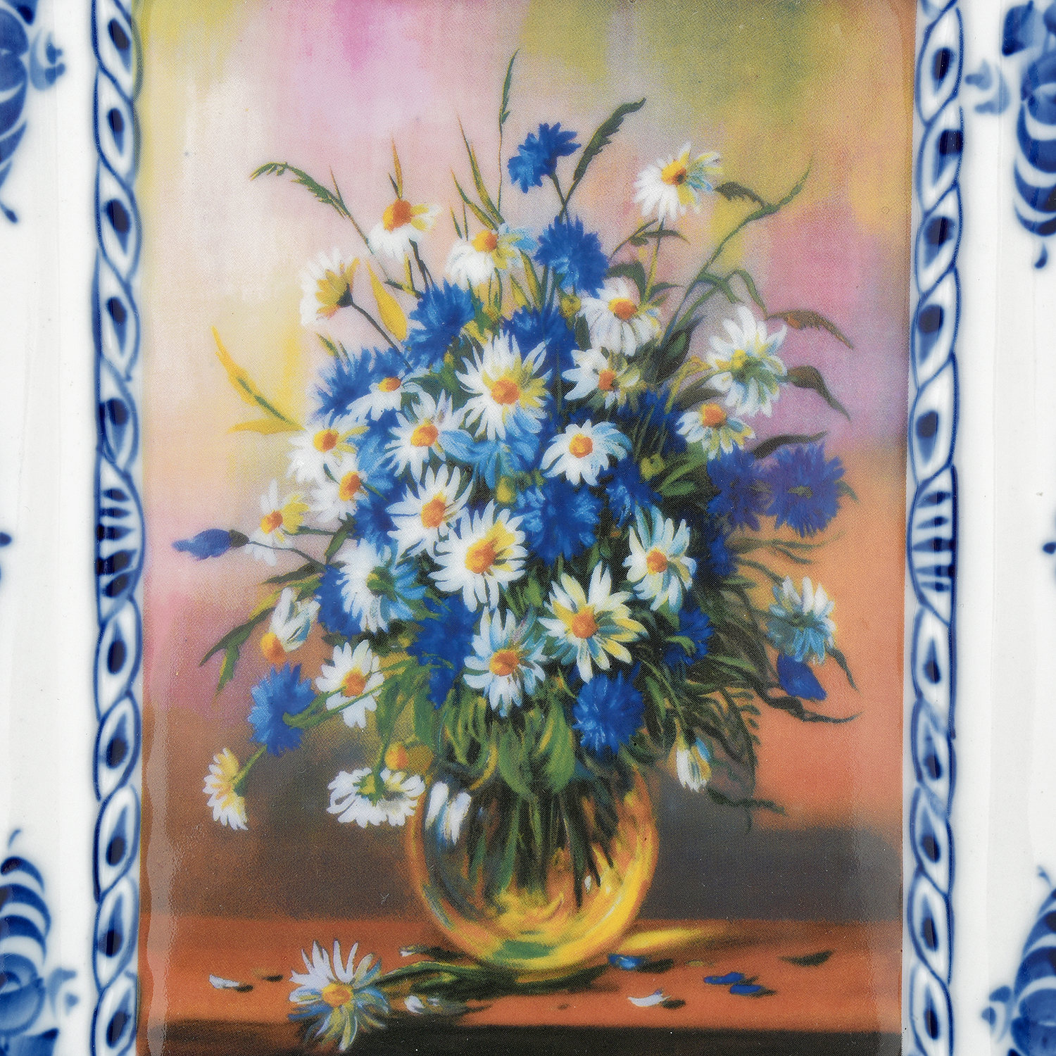 006522 Гжель Плакетка "ПЕЙЗАЖ В РАМКЕ", деколь №9