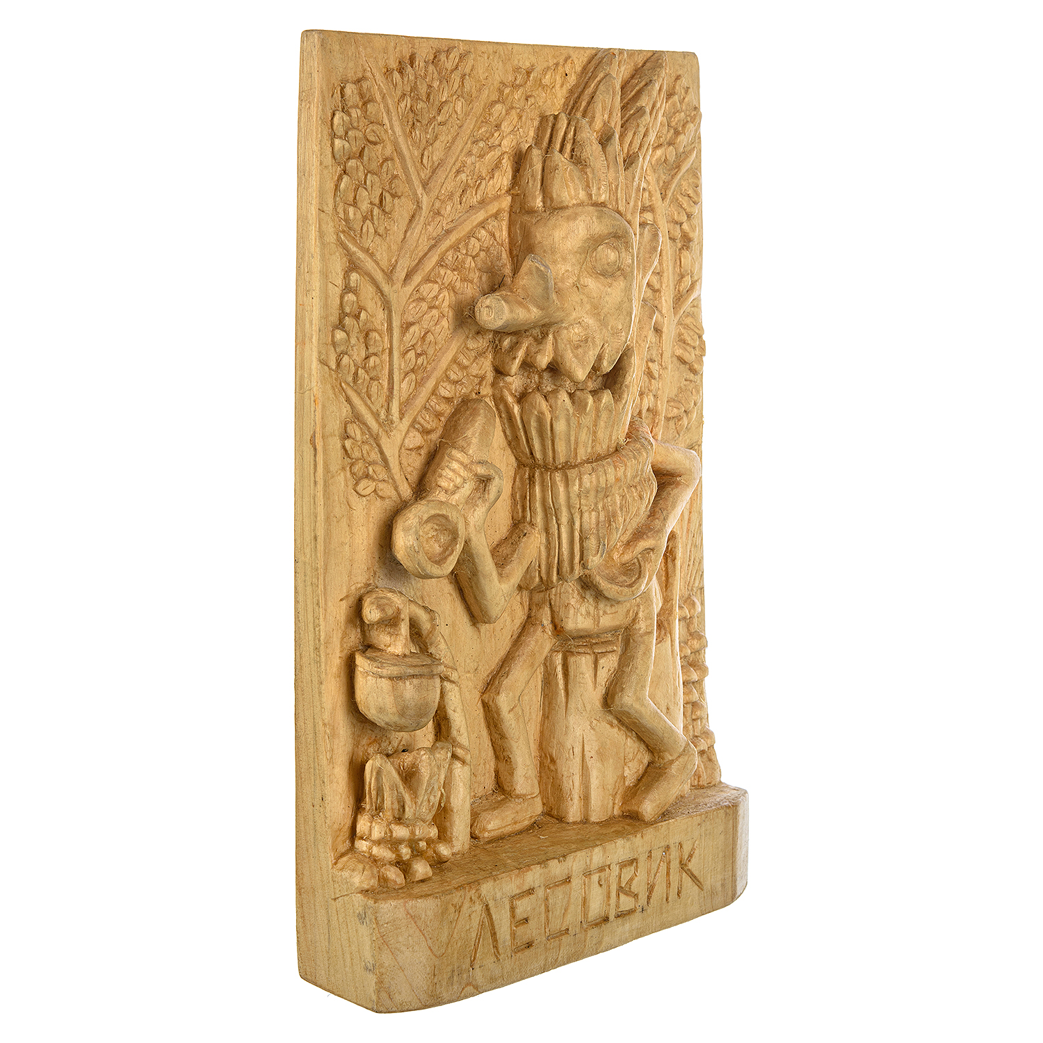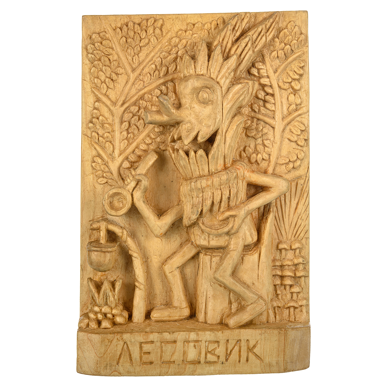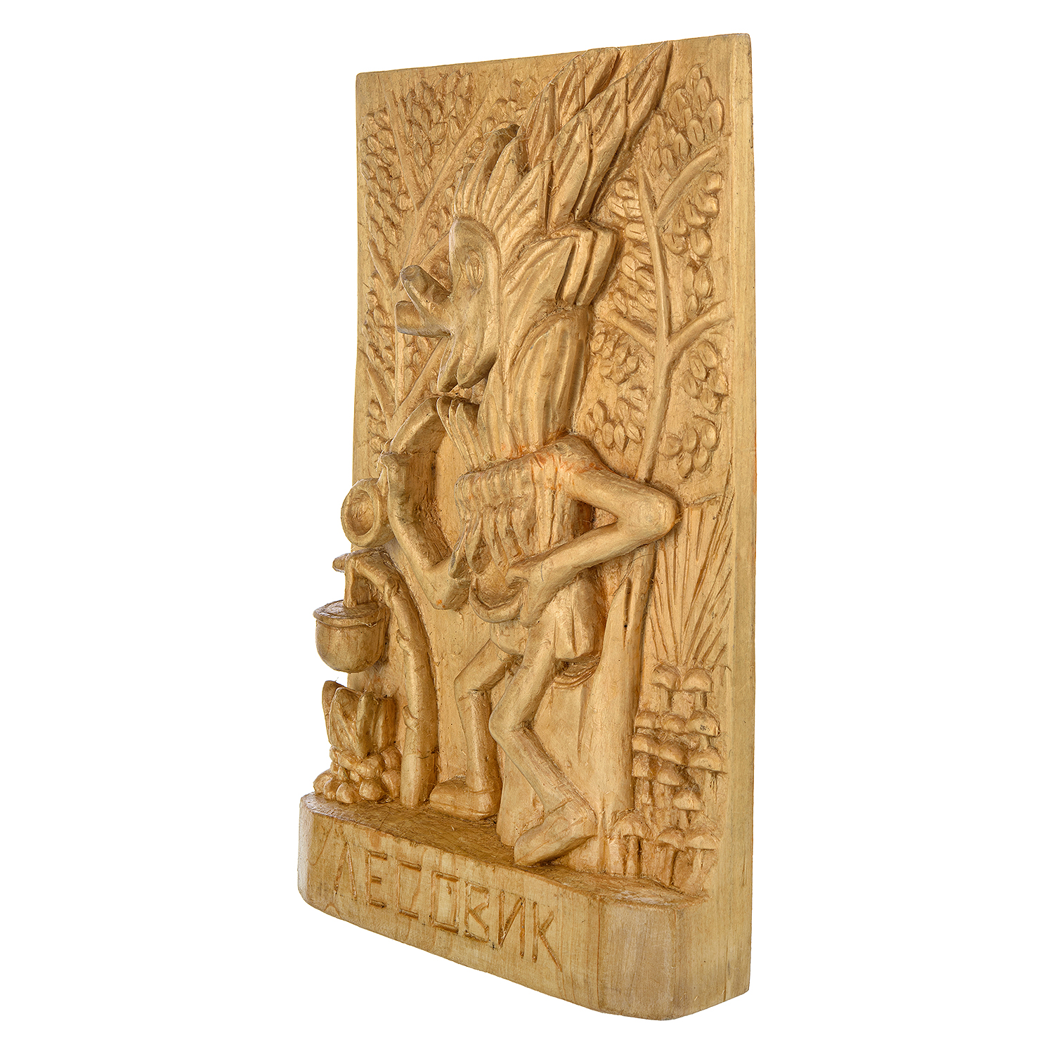 Русские подарки и сувениры → Интерьерные изделия → Панно → Деревянное резное панно "Лесовик" 33х22 см