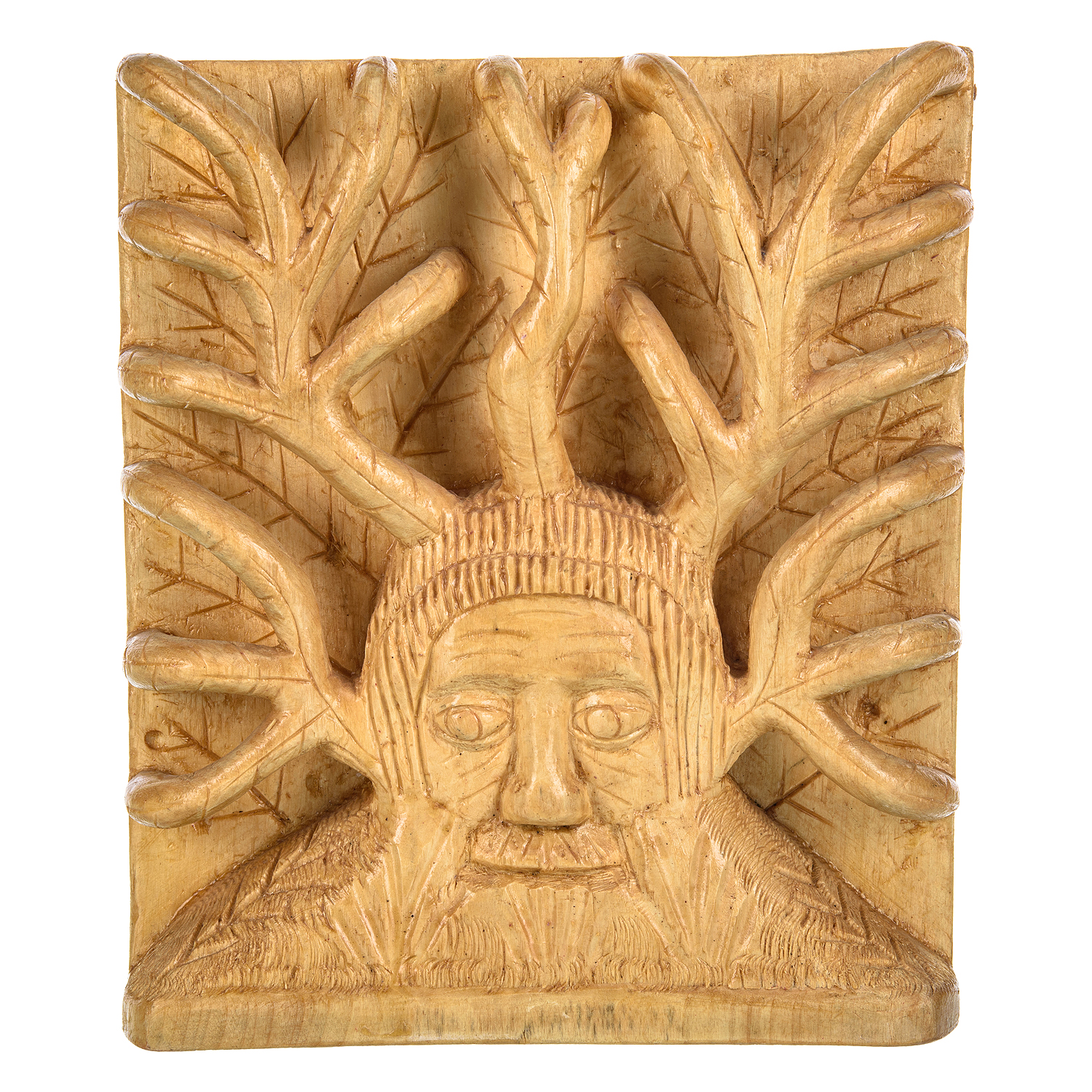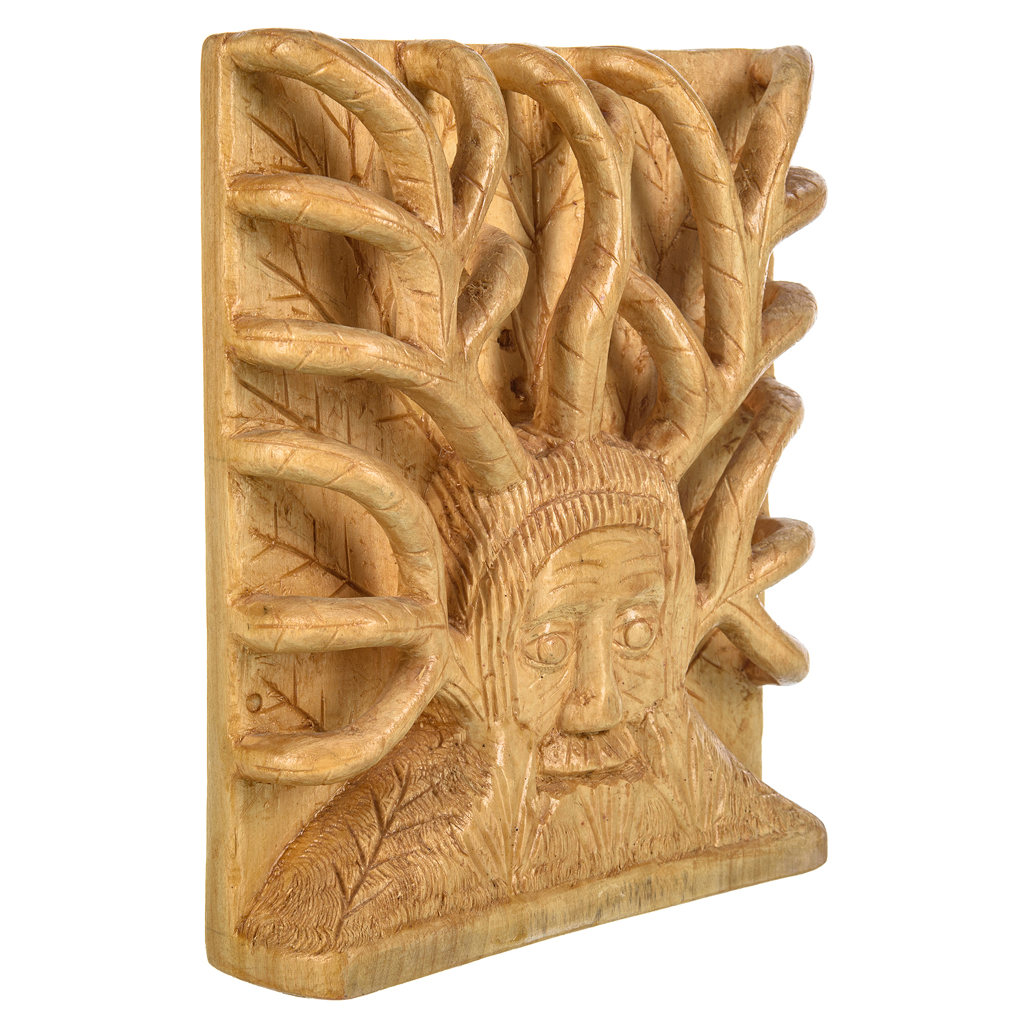 Деревянное резное панно "Леший" 25х21 см