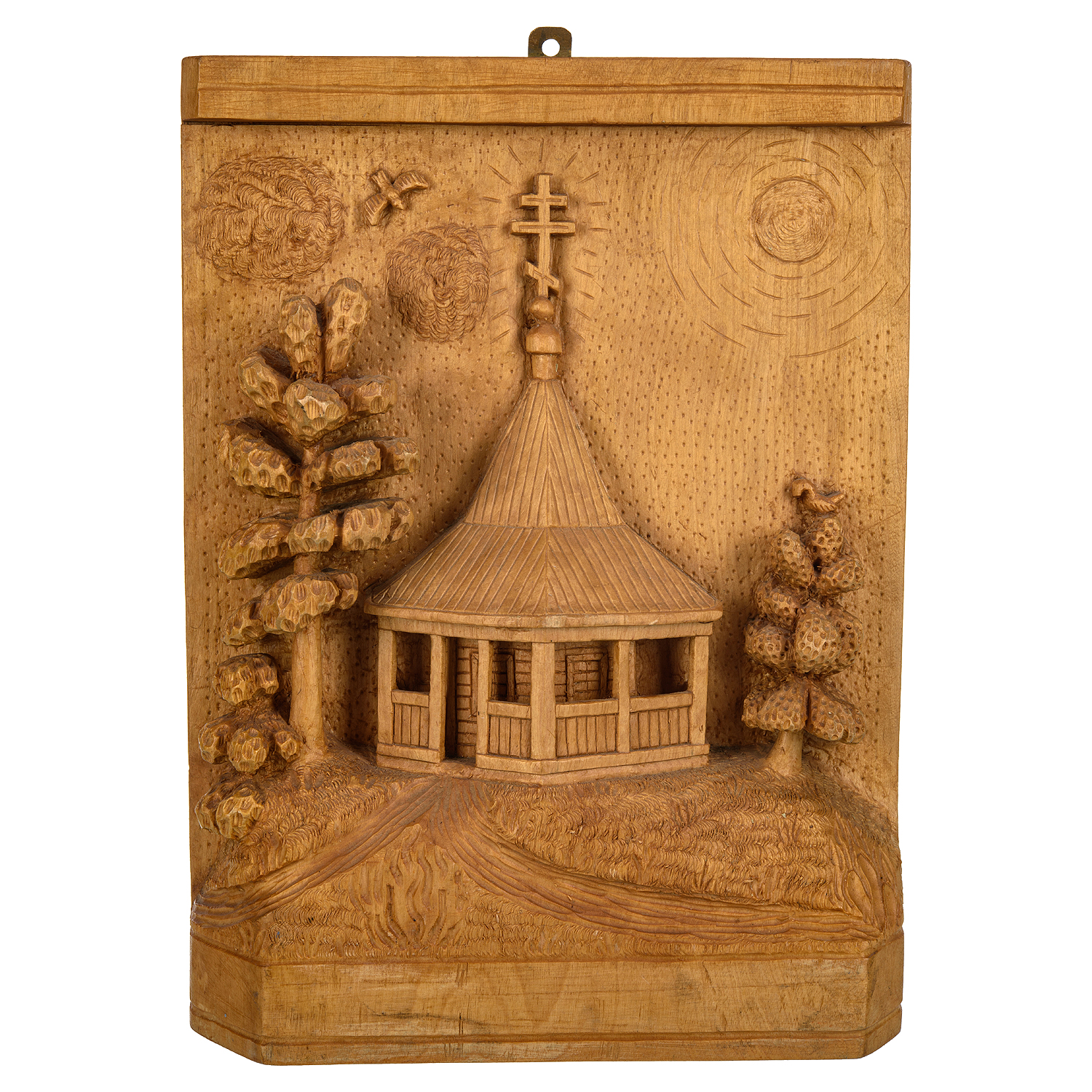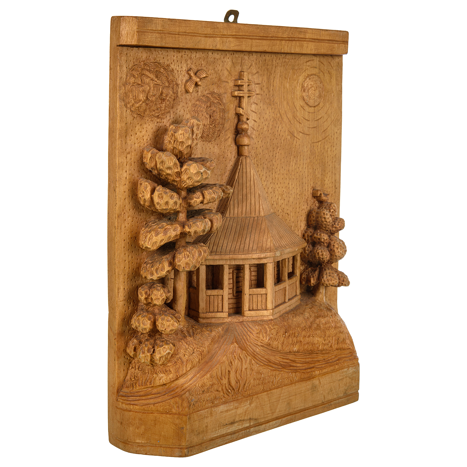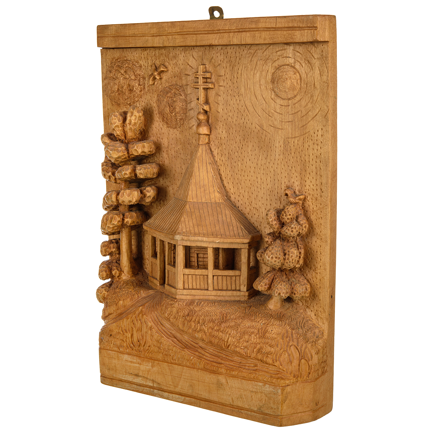 Русские подарки и сувениры → Интерьерные изделия → Панно → Деревянное резное панно "Убогий дом" 38х28 см