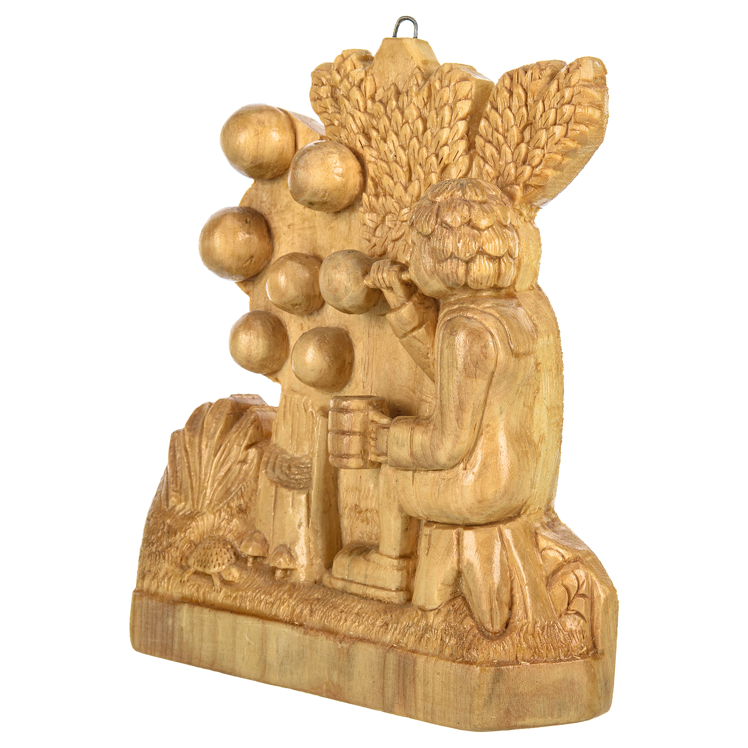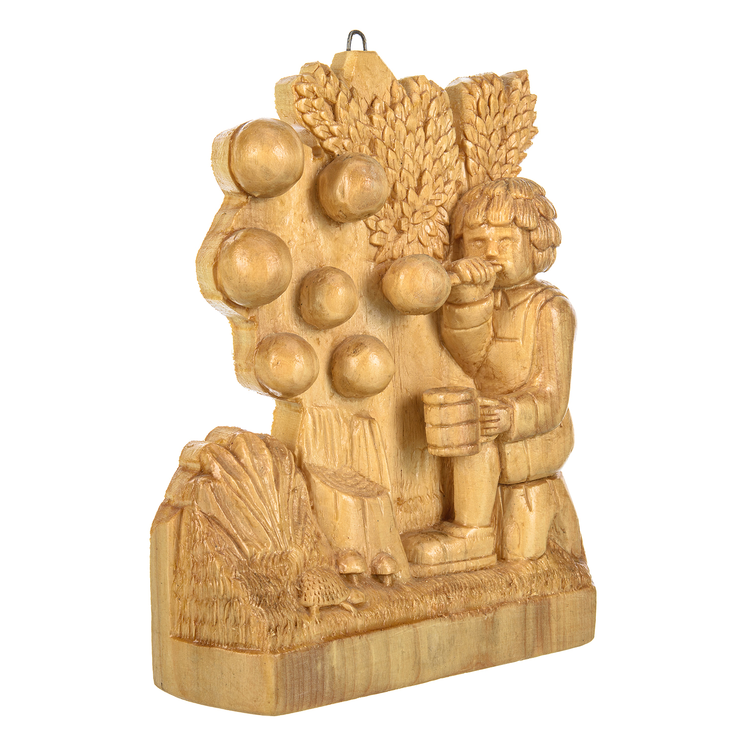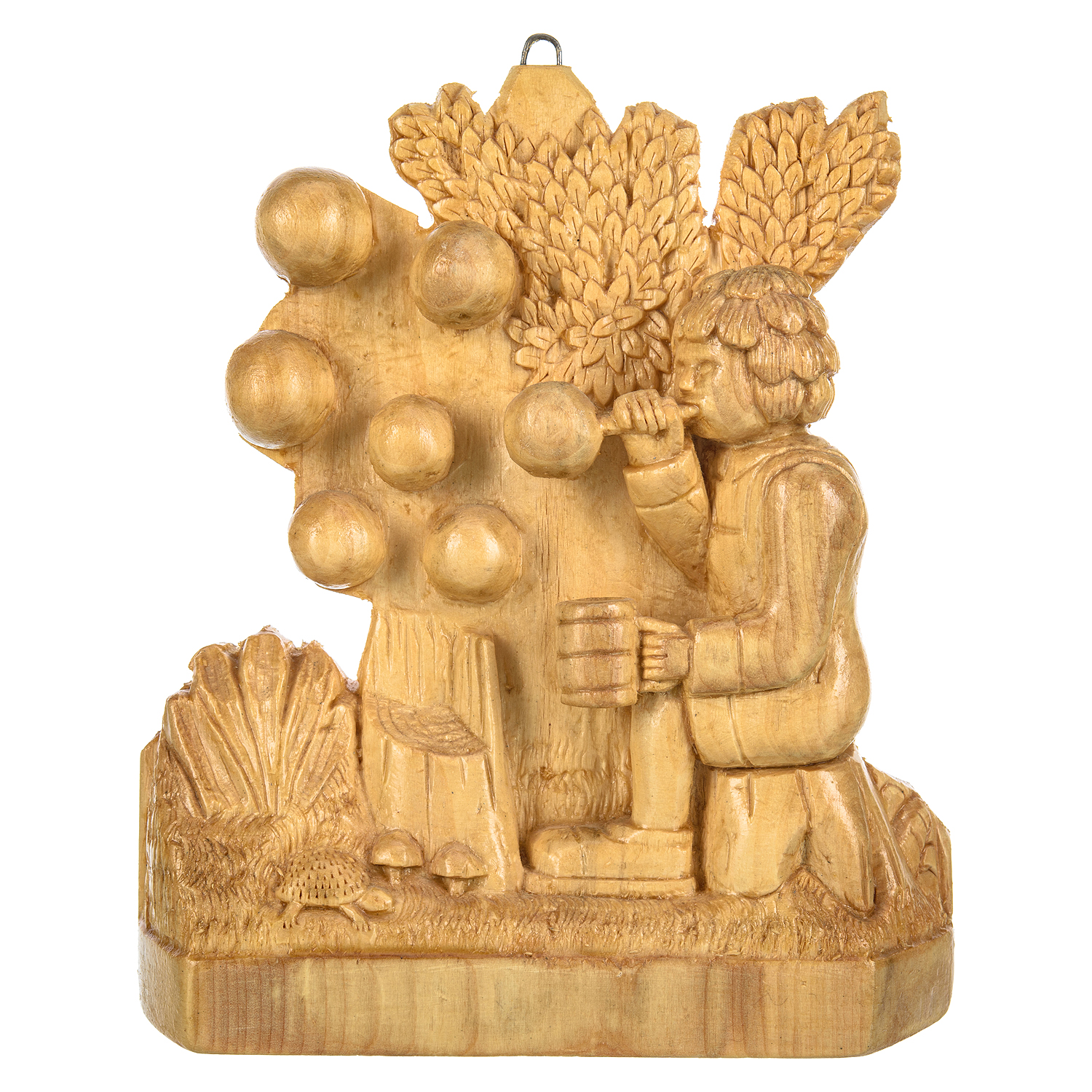 Русские подарки и сувениры → Интерьерные изделия → Панно → Деревянное резное панно "Ребенок и пузыри" 17х22 см