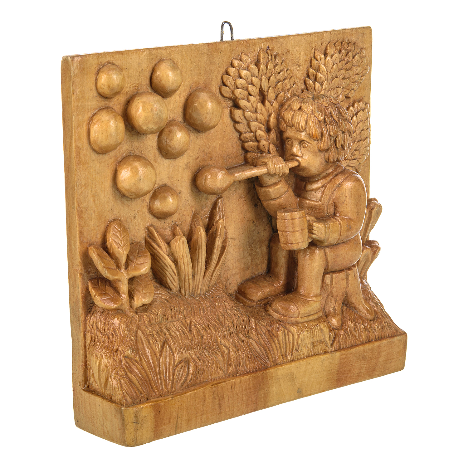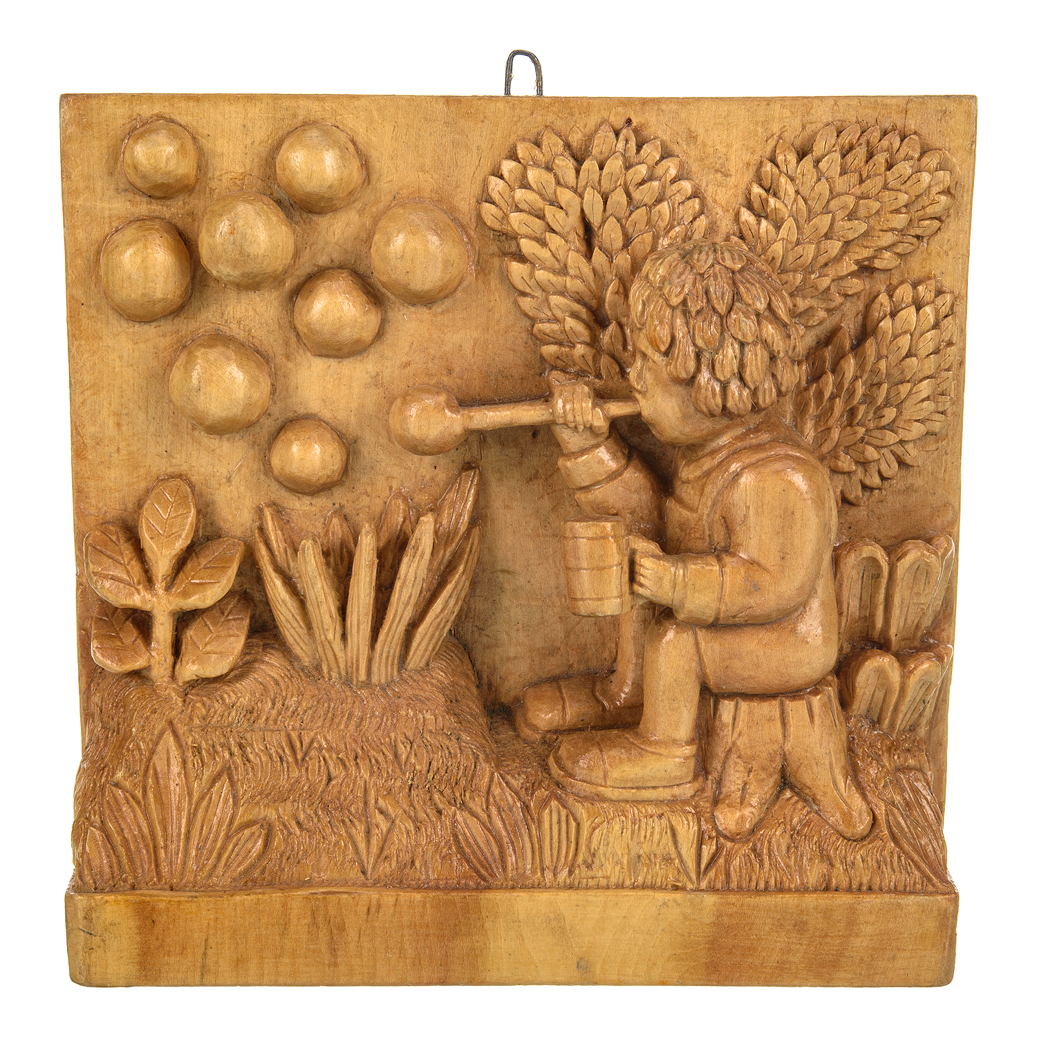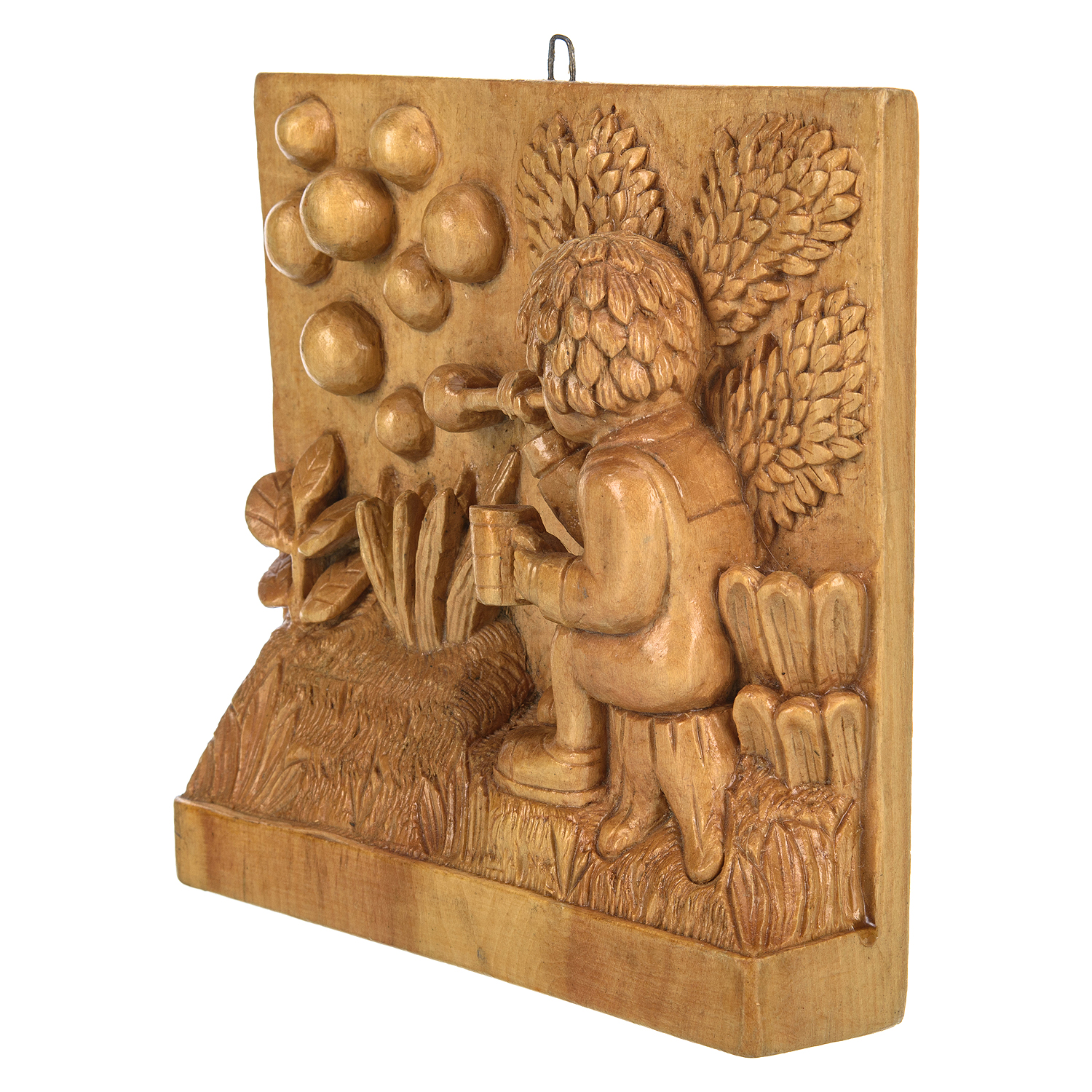 Деревянное резное панно "Ребенок и пузыри" 18,5х18,5 см