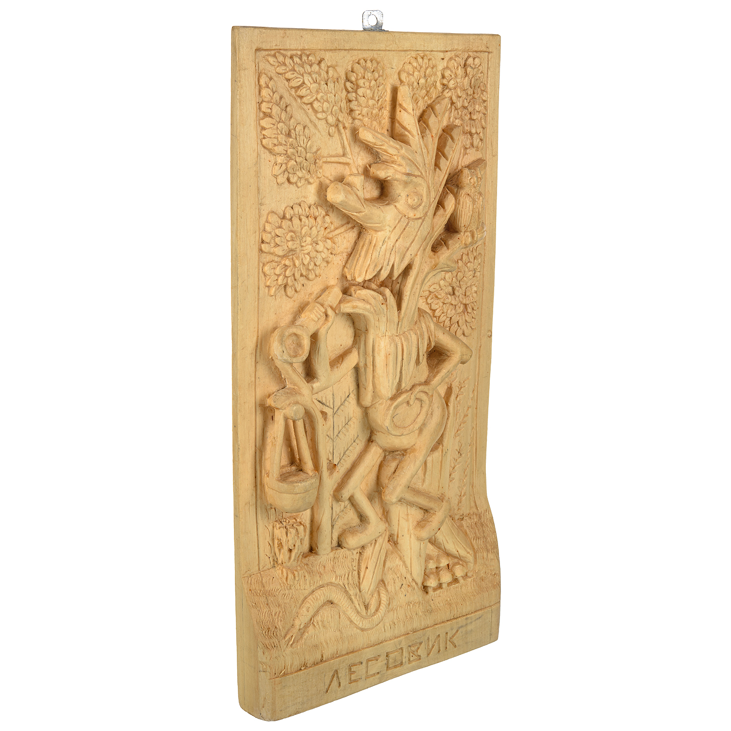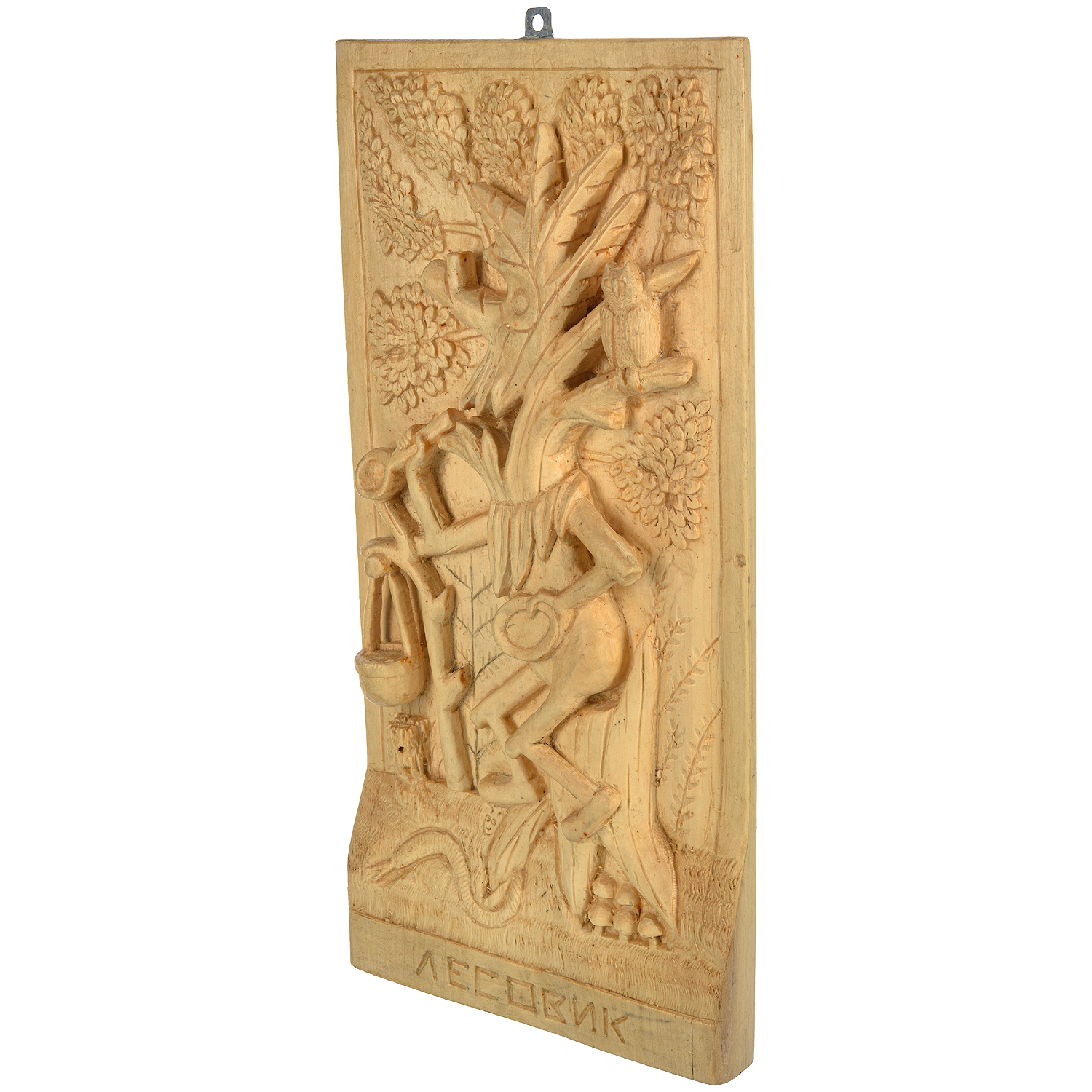 Русские подарки и сувениры → Интерьерные изделия → Панно → Деревянное резное панно "Лесовик" 50х25 см