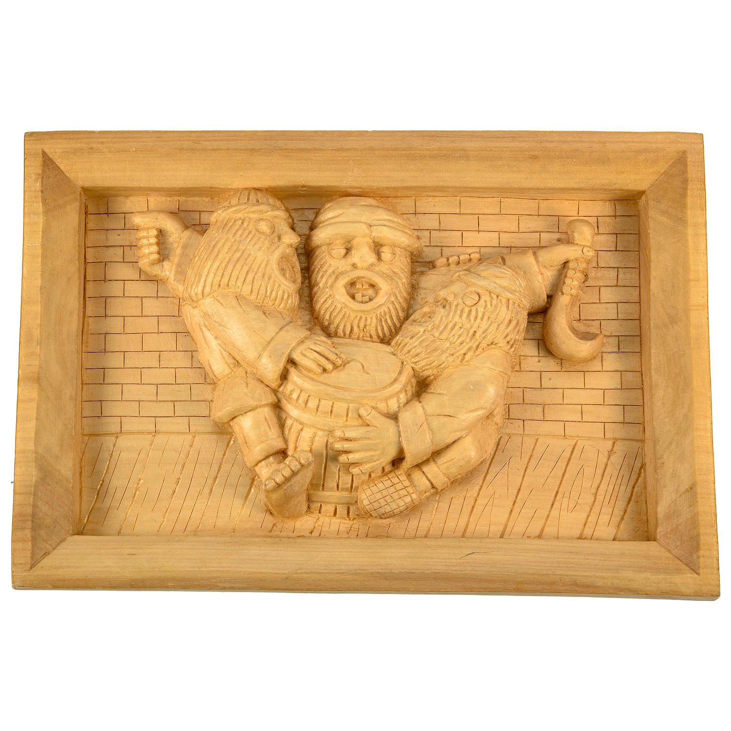 Деревянное резное панно "Трое" 39х26 см