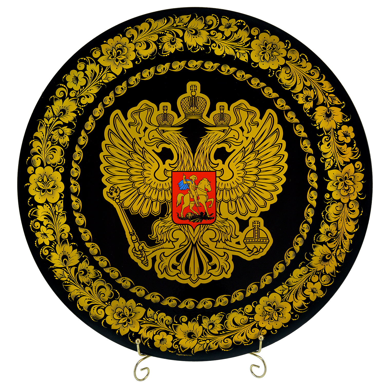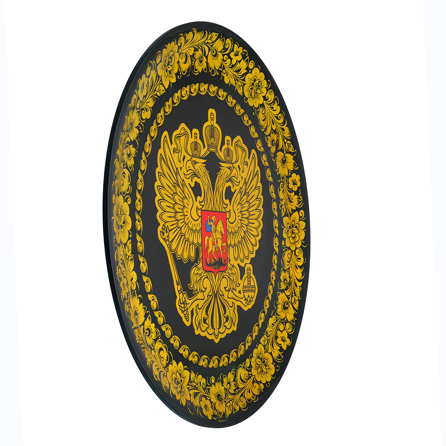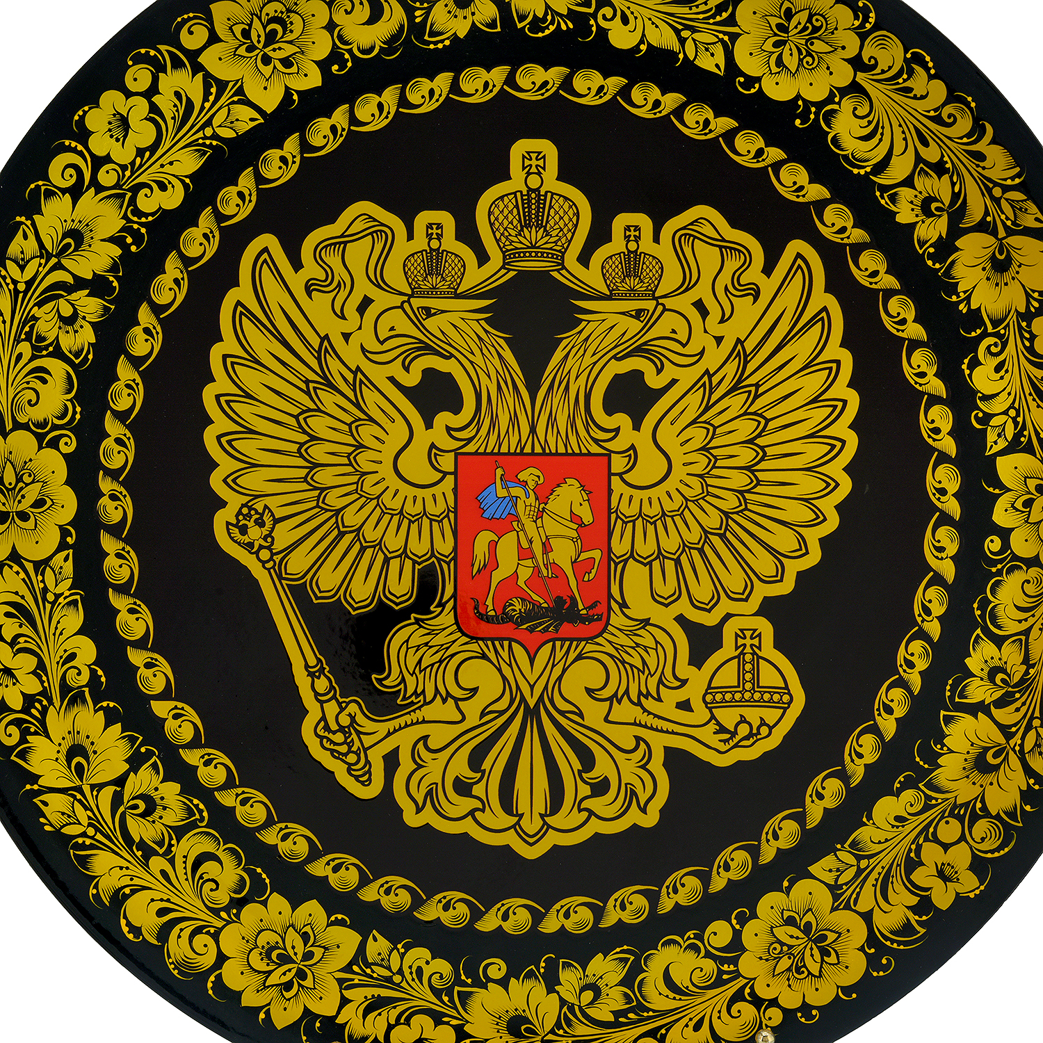 Панно с росписью "Герб РФ". Хохлома.