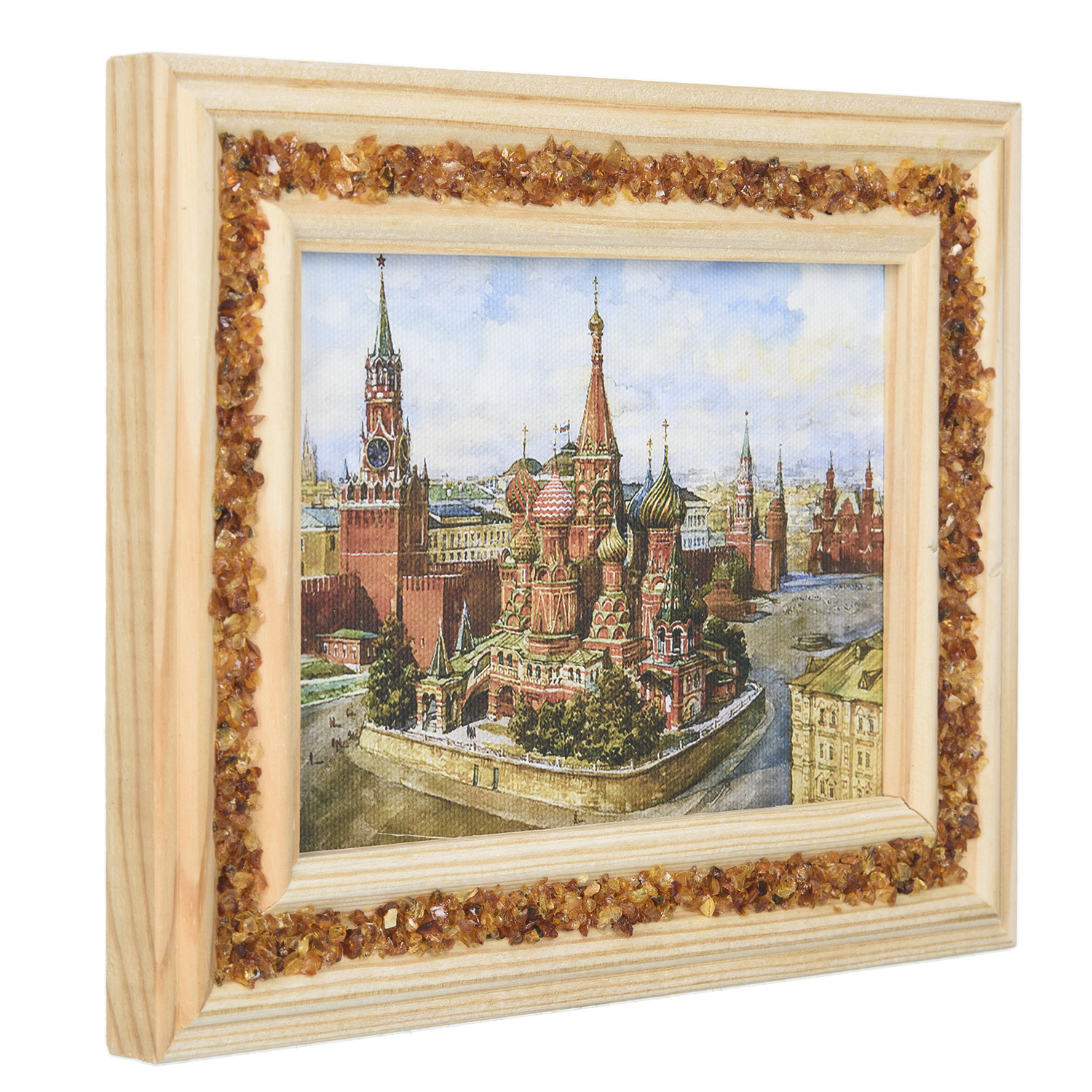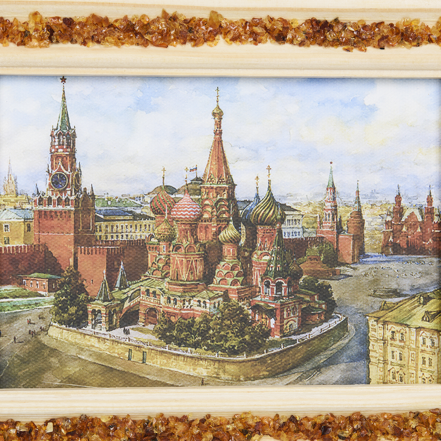 Русские подарки и сувениры → Интерьерные изделия → Панно → Панно янтарное "Московский Кремль летом" 20х16 см