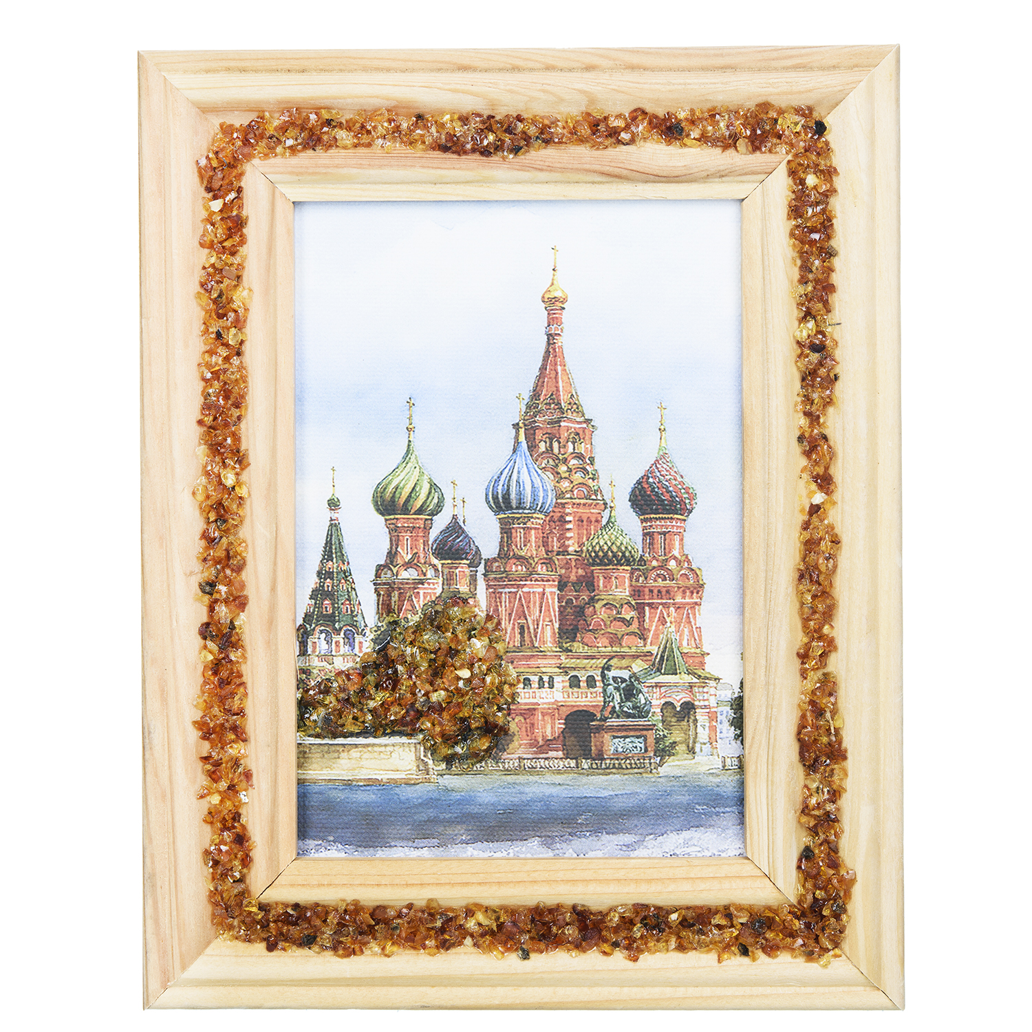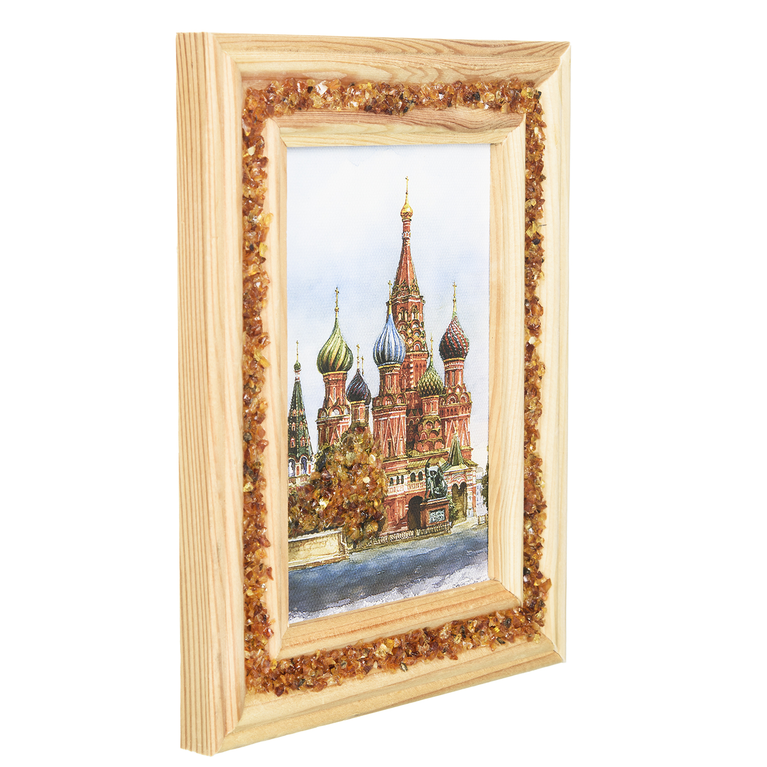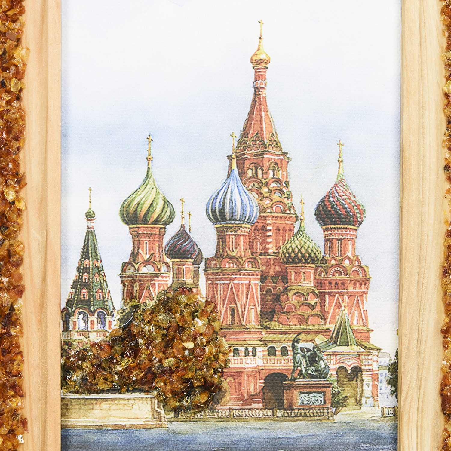 Панно янтарное "Храм Василия Блаженного" 20х16 см