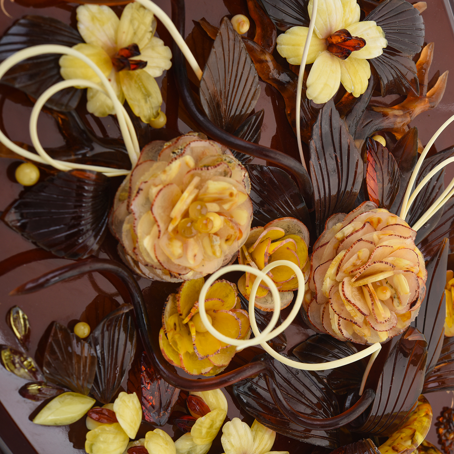 Панно настенное из янтаря "Осенний букет" 60х30 см