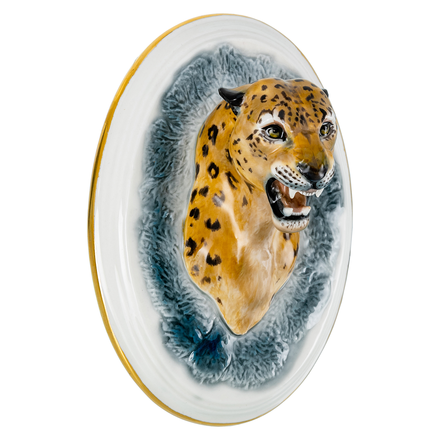 Русские подарки и сувениры → Интерьерные изделия → Панно → Панно фарфоровое "Леопард". Серия "Трофеи" 10х16 см