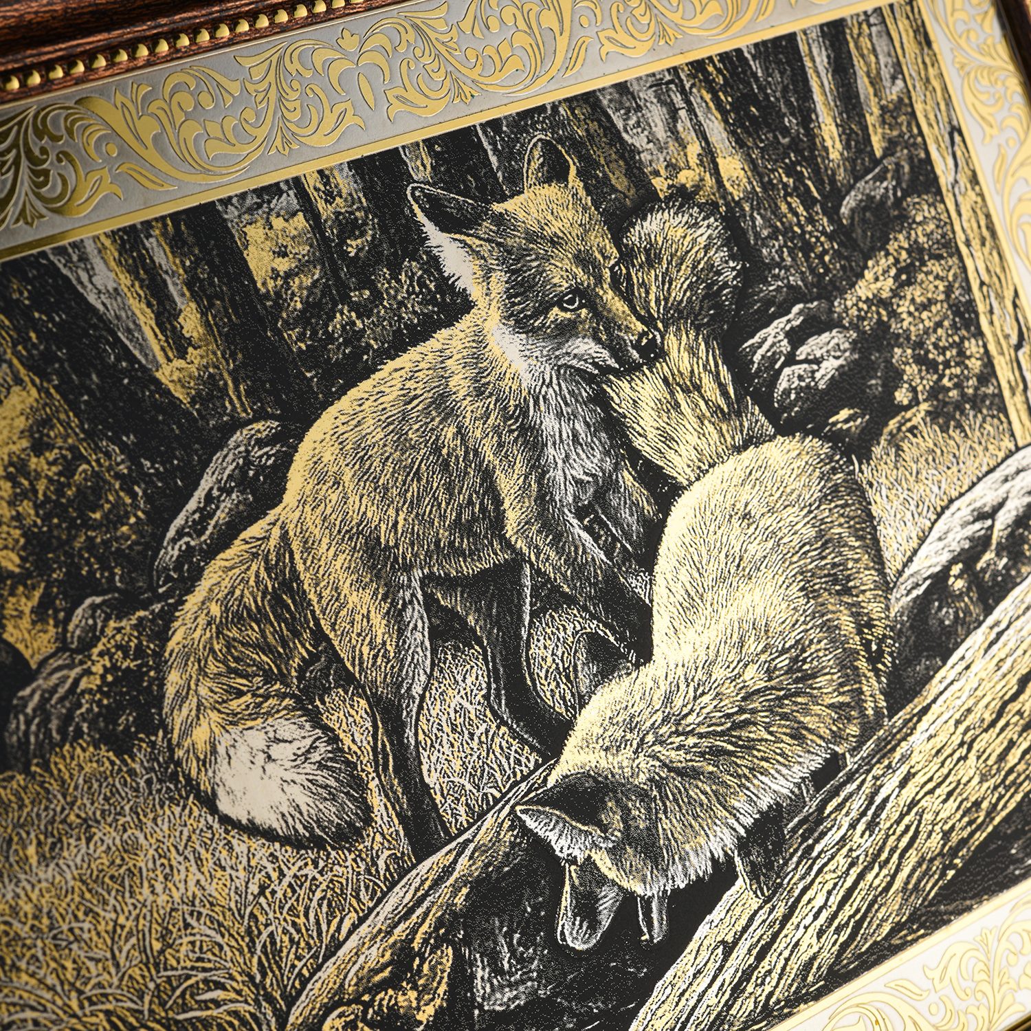 Панно-гравюра "Лиса". Златоуст.Материалы: латунь, никель, золото 999,9*, чернение.