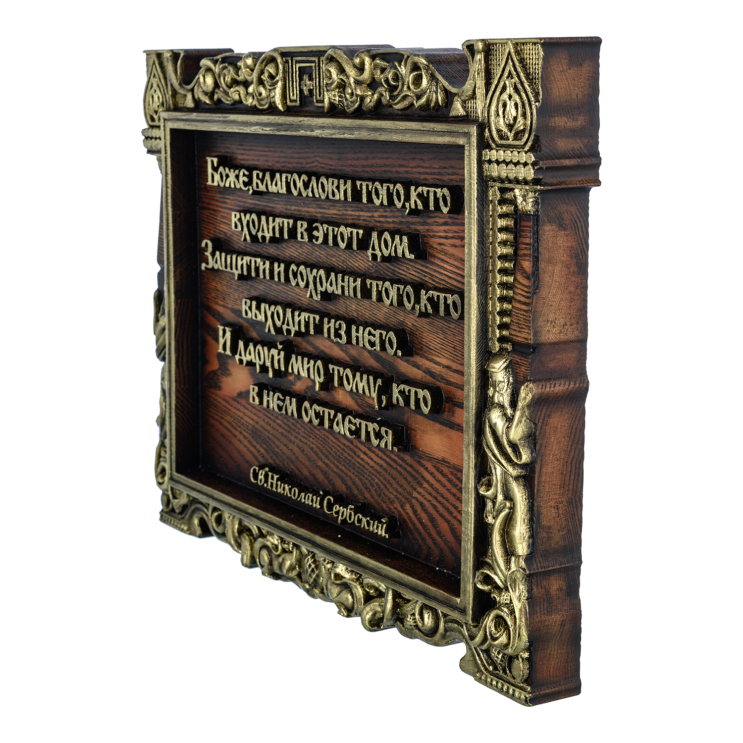 Русские подарки и сувениры → Интерьерные изделия → Панно → Панно деревянное "Святой Николай Сербский" 35х28 см
