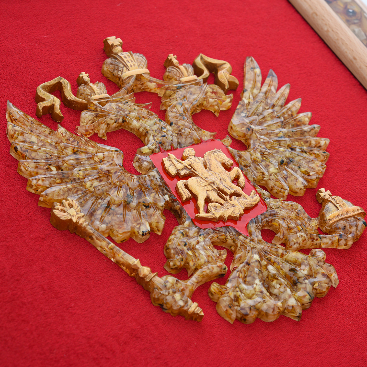 Панно янтарное "Герб РФ" 43х40 см