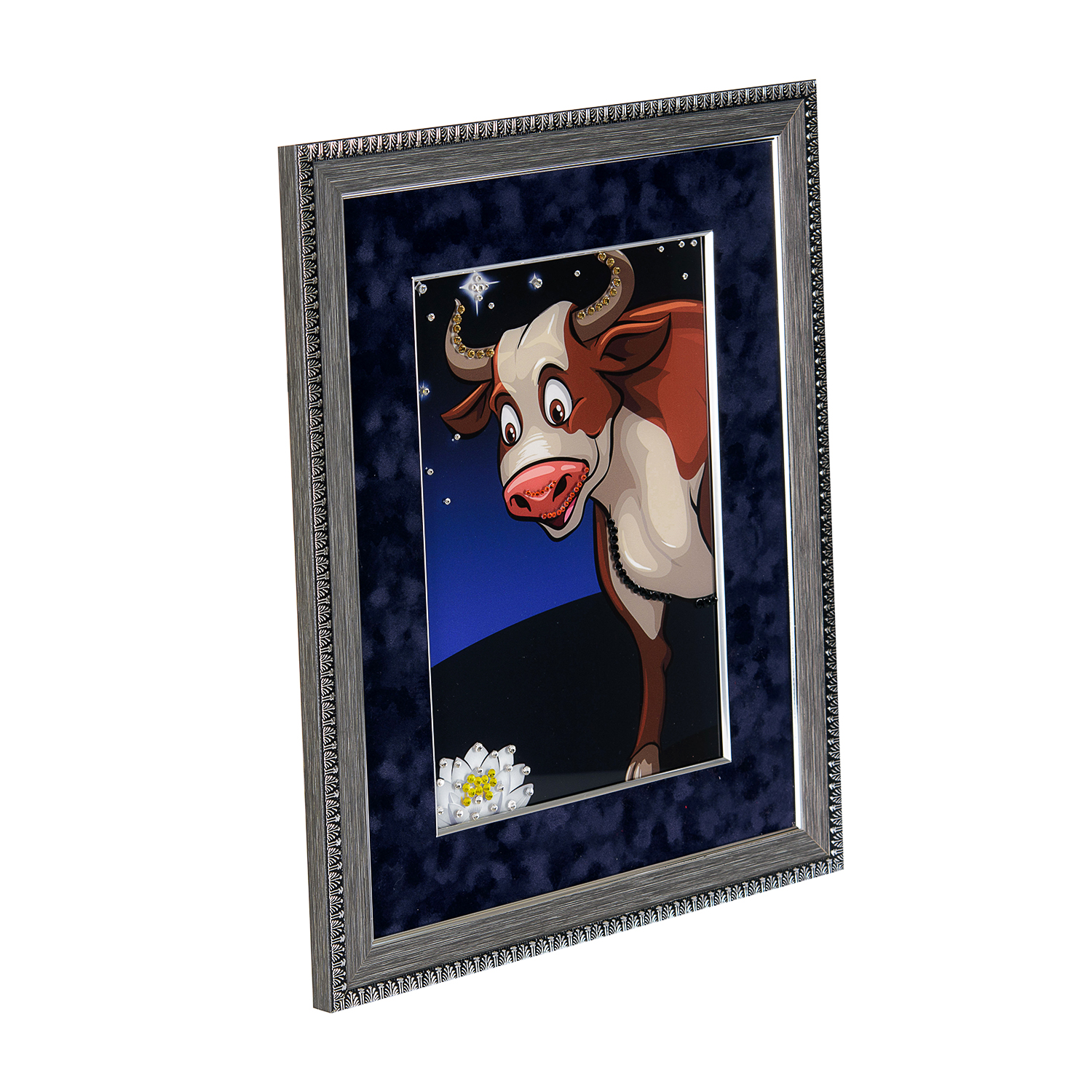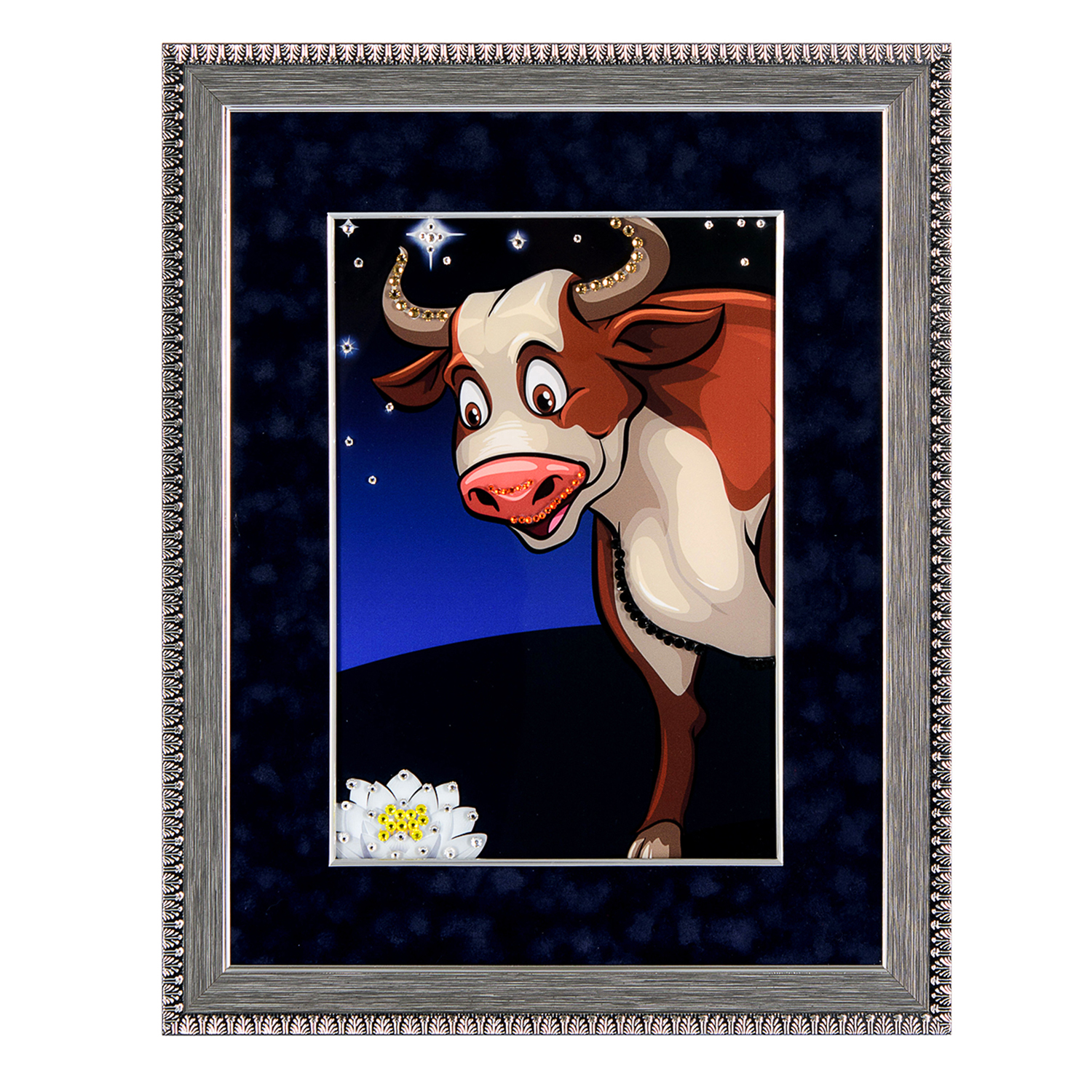 0059219-НП-35*44см ПАННО настенное Китайский гороскоп ГОД БЫКА (паспарту, багет,стразы) .