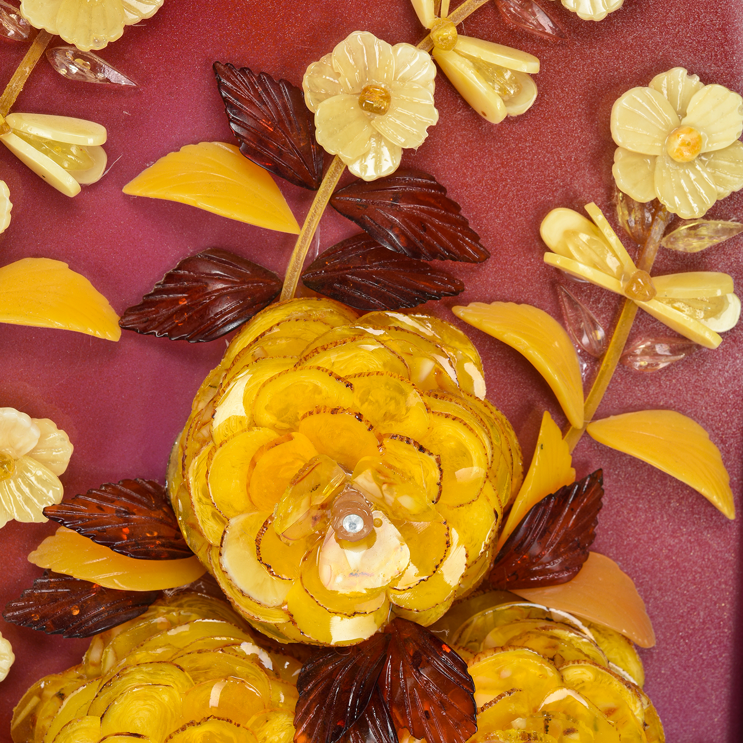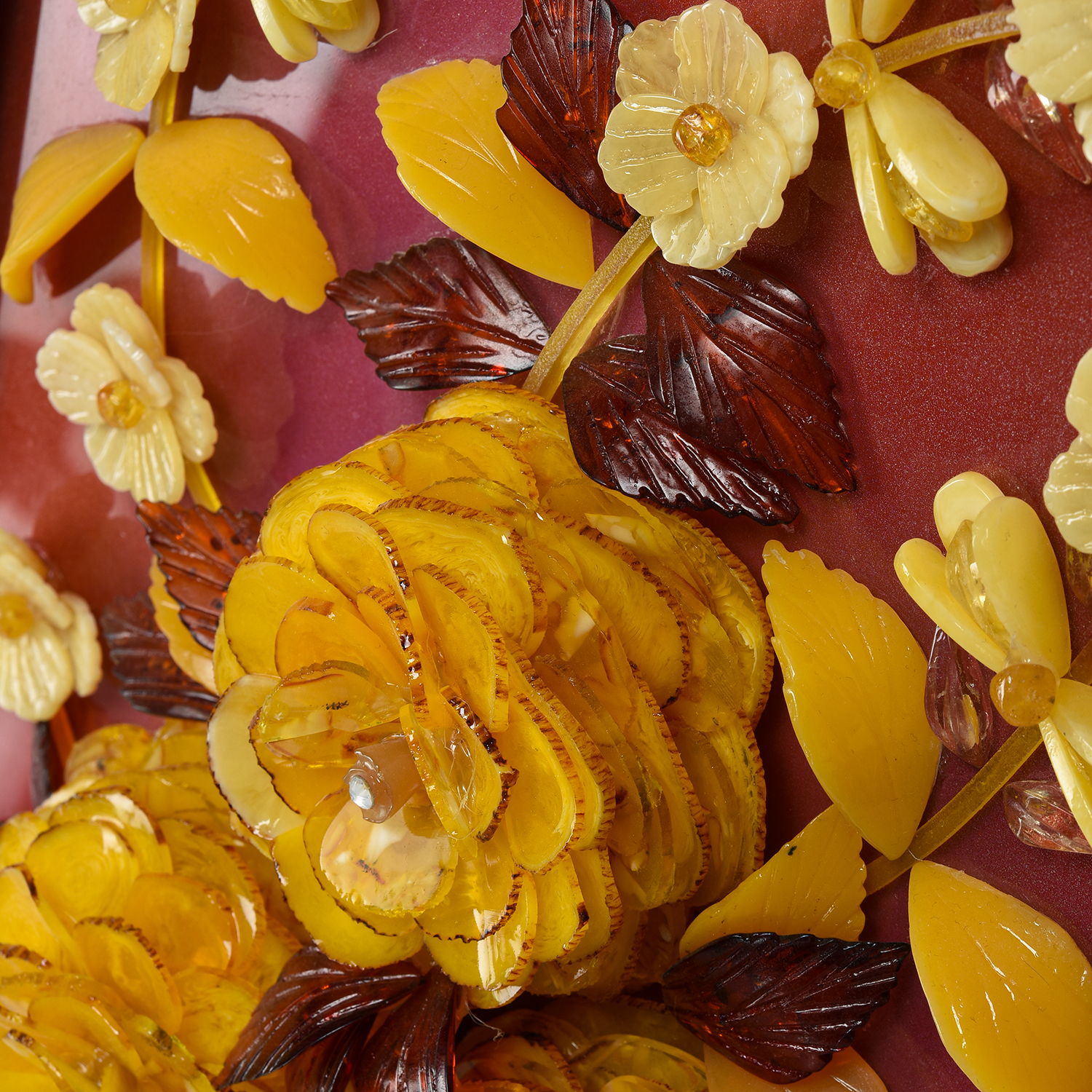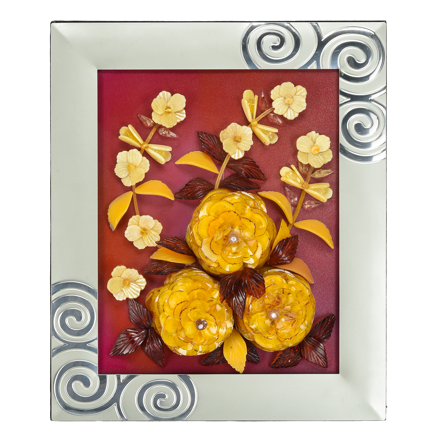 Русские подарки и сувениры → Интерьерные изделия → Панно → Цветочная композиция-панно из янтаря 20х25 см