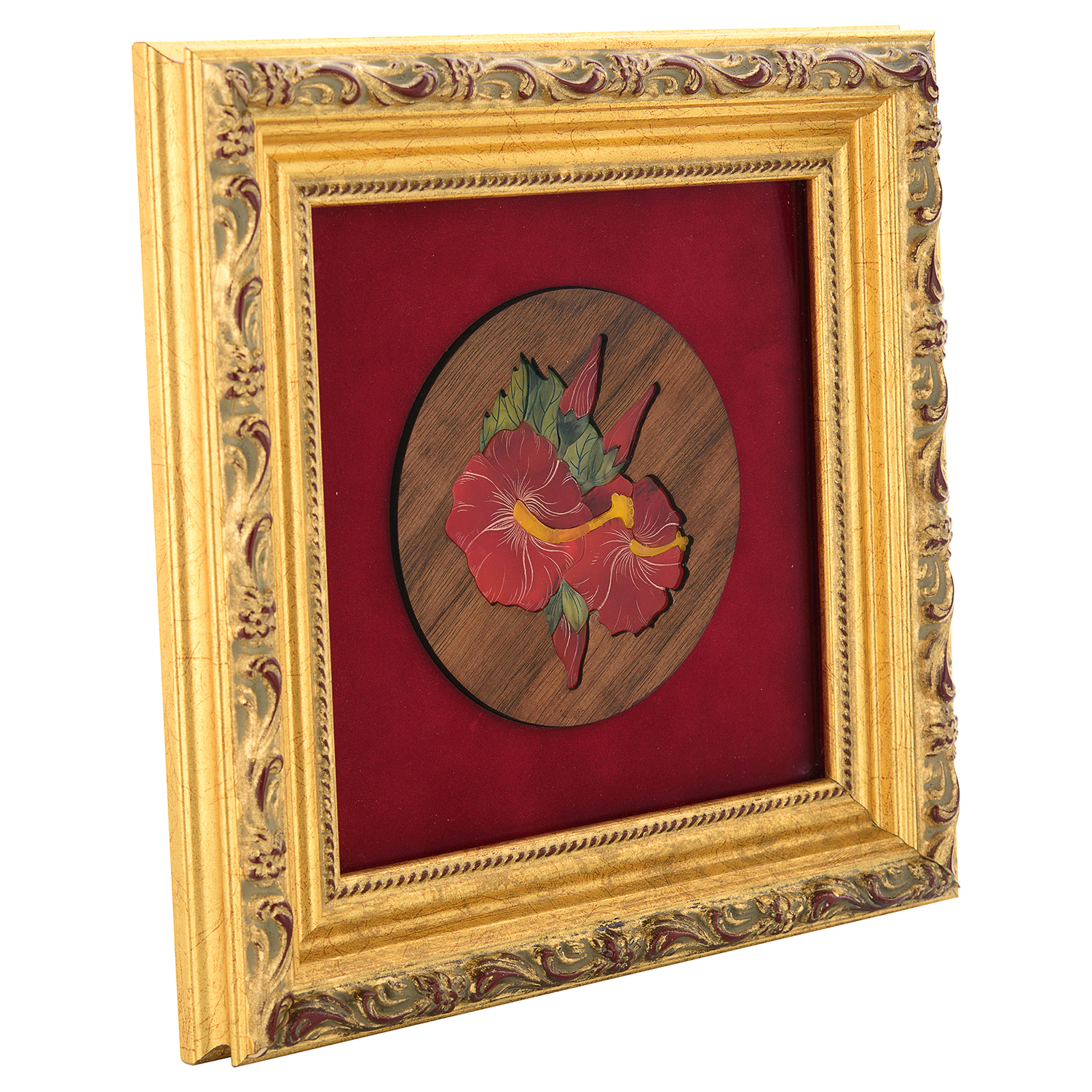 Панно янтарное "Гибискус" 22,5 х 22,5 см
